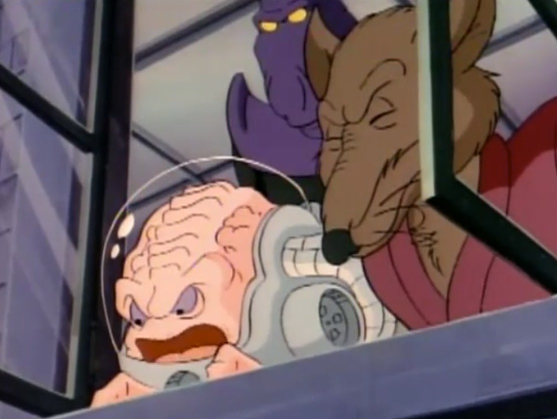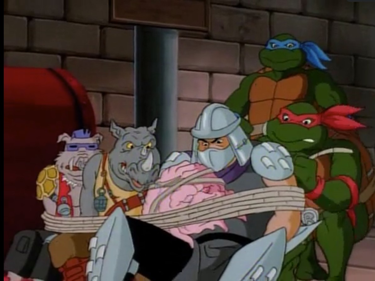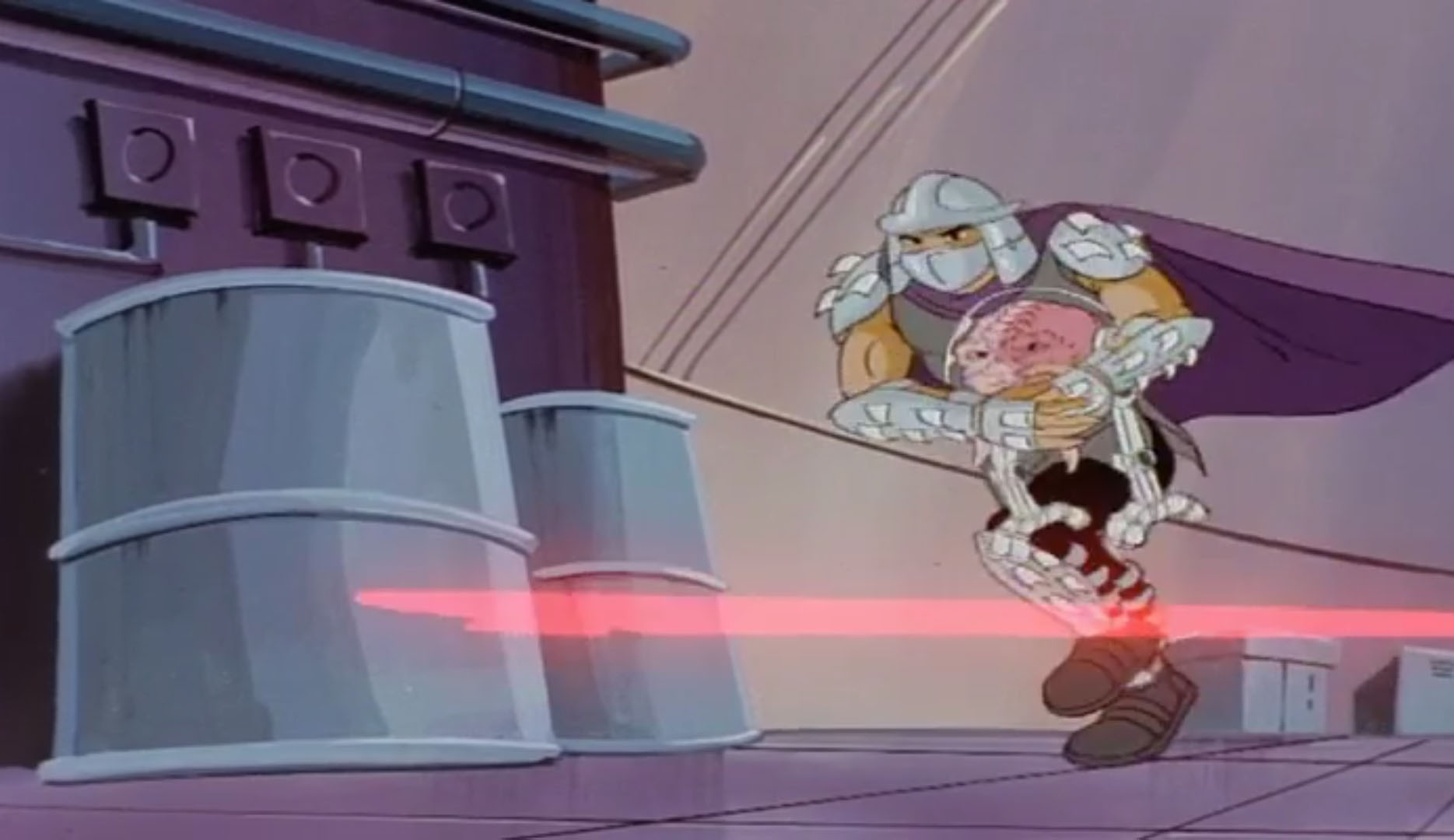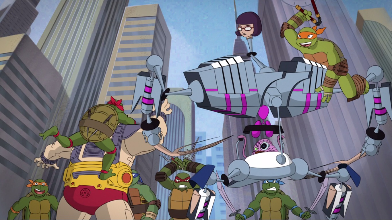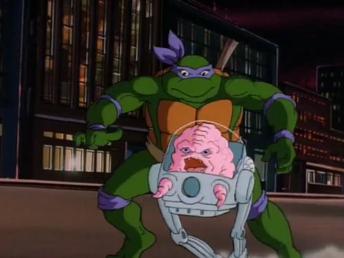 - Les deux autres fois furent dans des épisodes commémoratifs, à savoir le téléfilm Turtles forever, lorsque Krang essaie de vaincre Ch’Rell dans l’univers du comic originel et dans Les tortues transdimensionelles (S4 E10 de la série TV de 2012) lorsque Krang essaie de poser une bombe sur la tour de Channel 6. De simples clins d’œil à la saison la plus connue de la série.