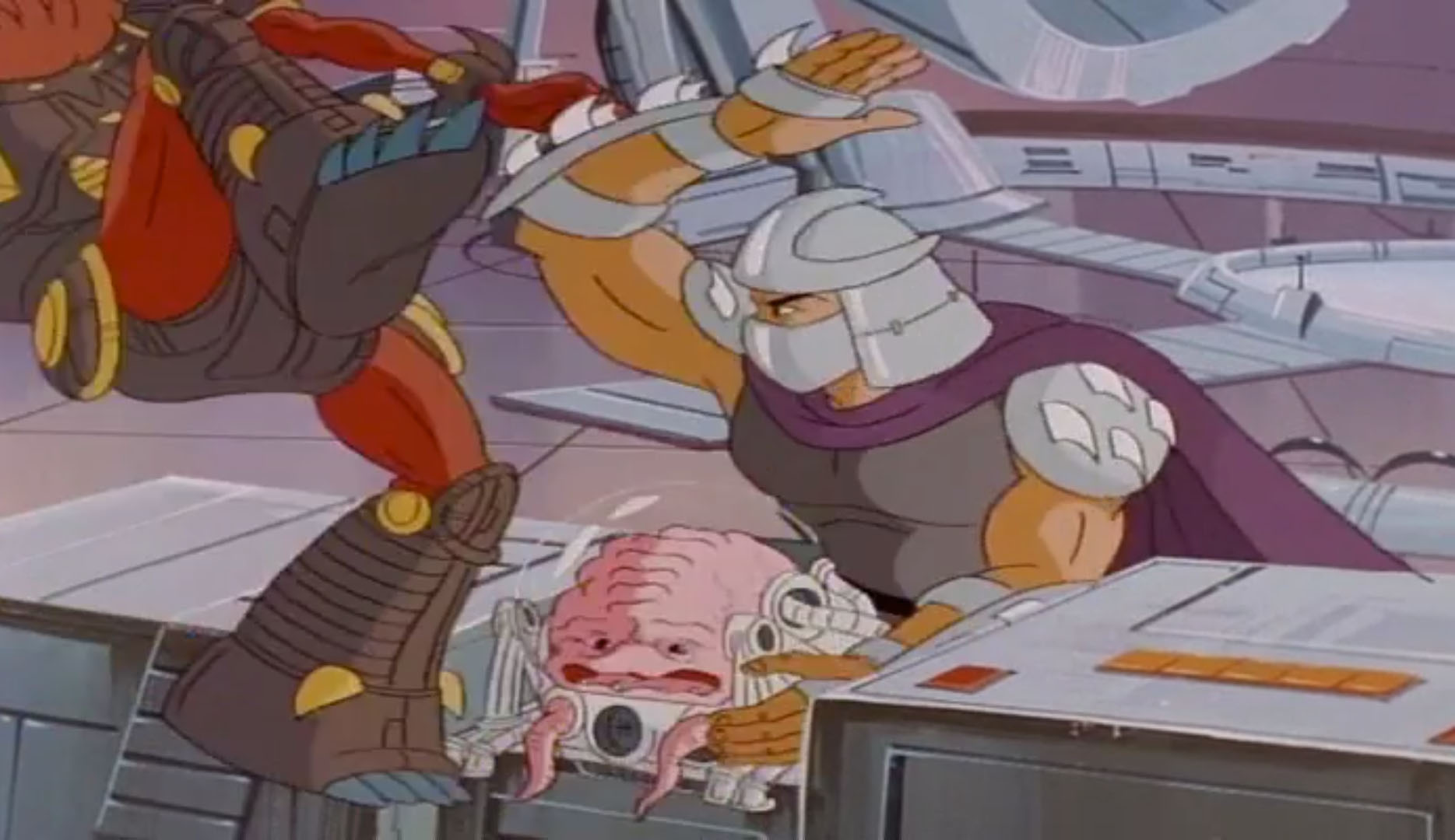Après d’innombrables essais pour faire tomber la Terre à l’aide du Technodrome, Shredder parvint à emprisonner les tortues en Dimension X. Cela lui laissait le champ libre pour sortir la forteresse extraterrestre des eaux et marcher sur New York avec Krang.