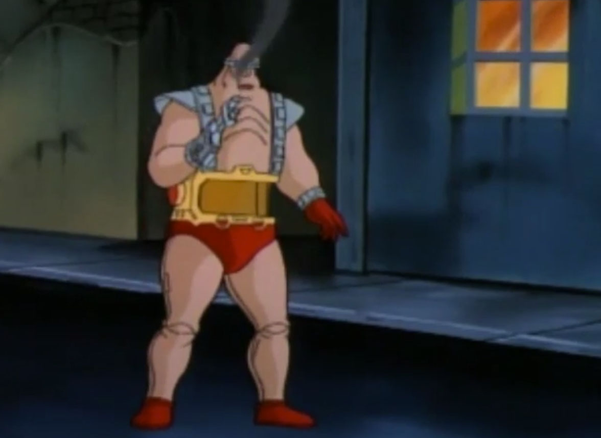 Les Bat-men essayèrent de les retenir, en vain. De retour dans l’entrepôt de Dregg, Shredder s’empara encore d’un composé de la machine de son ennemi avant de s’enfuir pour les rues de la ville. Il comptait rendre son énergie à Krang et s’était réfugié dans un laboratoire. L’homme au masque de fer réussit à rendre son énergie à son acolyte. Mais le bâtiment tout entier tomba en ruines. Dregg avait besoin de métal pour reconstruire un nouveau téléporteur (Les tortues à bout de force, S10 E4).