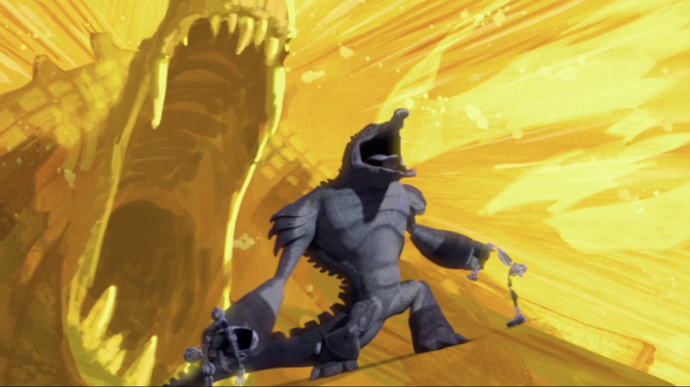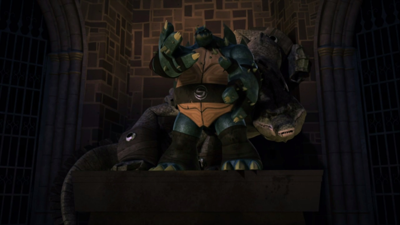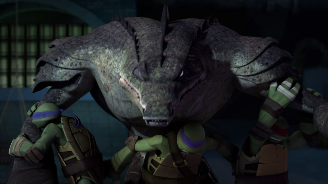 Caractéristiques : Un alligator mutant à la force colossale. Il nourrit une haine collossale contre les kraangs, qui l’ont retenu prisonnier pendant une longue période, le soumettant à la torture et aux expériences génétiques.
