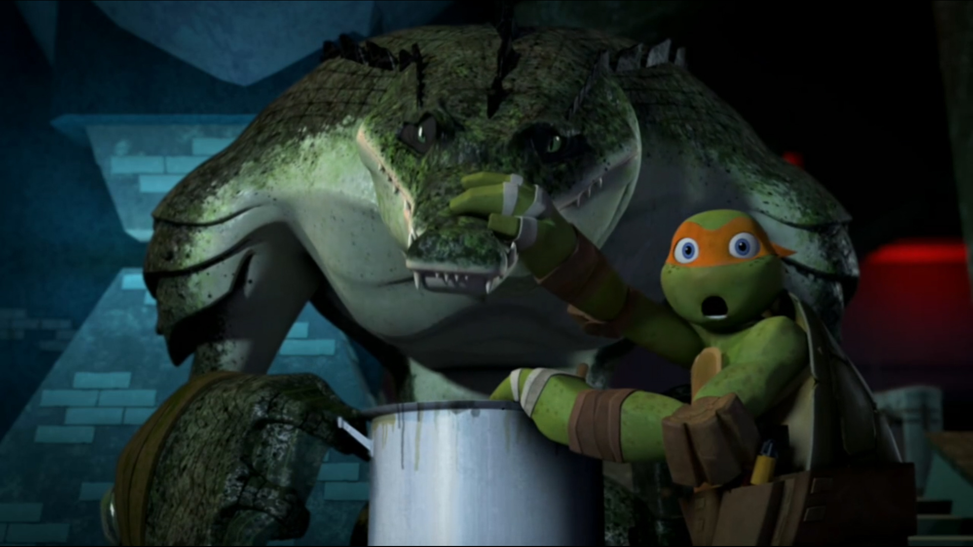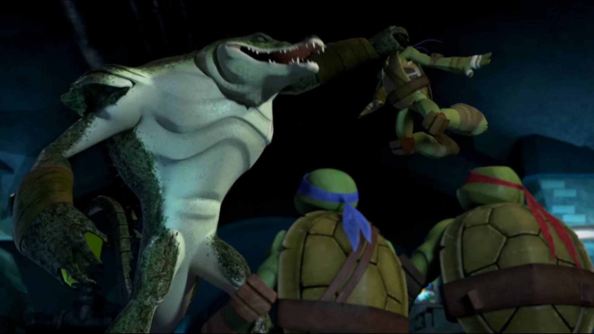 Dans sa fuite, l’alligator avait emporté avec lui un puissant cristal, surnommé la pile à combustible, permettant de générer de l’énergie. Il la cacha dans les fin-fonds des égouts, derrière un long couloir piégé. L’alligator s’était réfugié dans un wagon de métro d’une ligne désaffectée. Les kraangs le débusquèrent et essayèrent de le capturer de nouveau. Leur très grand nombre permit aux extraterrestres de submerger le reptile. Les tortues se trouvaient à proximité et partirent l’aider malgré quelques réticences. Michelangelo ne voulait pas juger la créature sur son apparence effrayante et persuada ses frères de lui venir en aide.