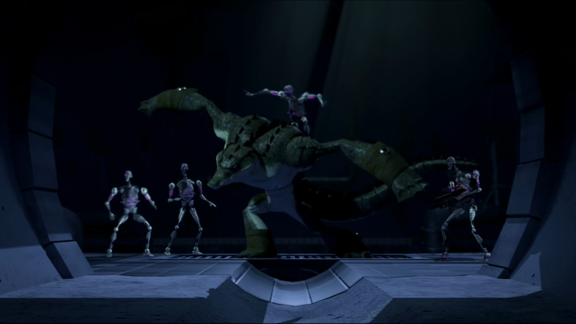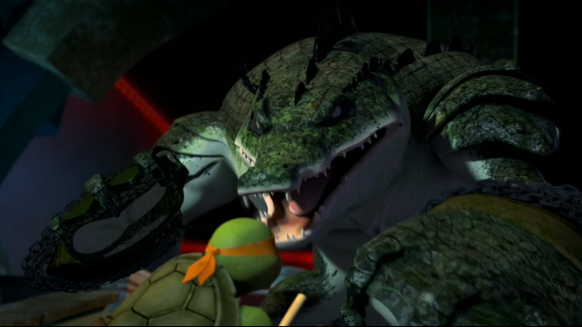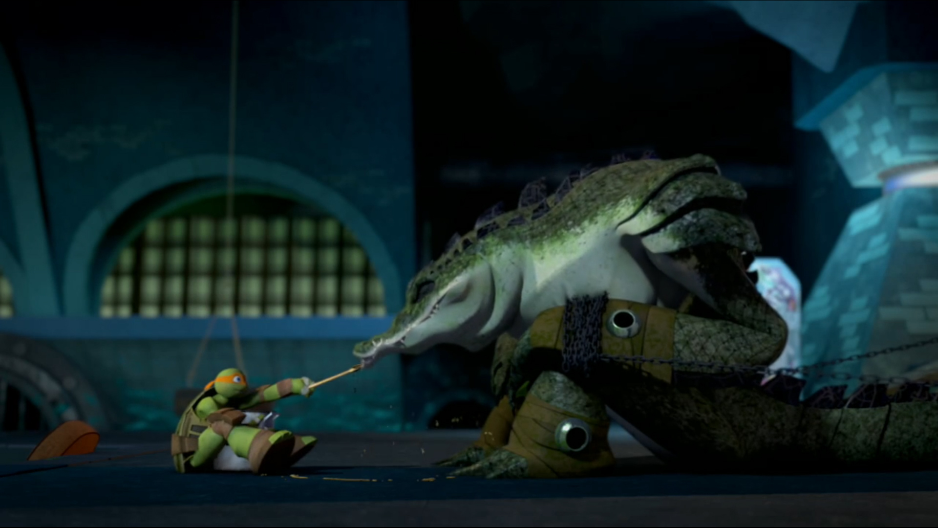 Les kraangs parvinrent finalement à dérober la source d’énergie (Le Pulvériseur, S1 E16). Les tortues demandèrent de l’aide à Leatherhead pour la retrouver et envahir la tour du T.C.R.I. Ensemble, ils envahissent les lieux. L’alligator fut d’une grande aide face au gardien géant Traag et se sacrifia, poussant le soldat de pierre à travers le portail ouvert (Mystères au T.C.R.I., S1 E17).