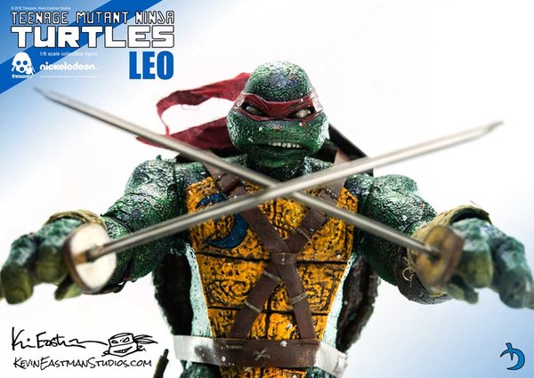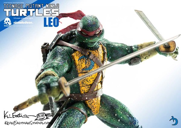 Les précommandes de la figurine de Leonardo ont été ouvertes, comme Michelangelo le 2 juin 2016. Vendu à 210$ pièce, ThreeZero proposait une vente groupée avec Michelangelo (210$ également) pour 355$, frais de ports internationaux compris. En adhérant à cette offre relativement avantageuse, les fans obtenaient des accessoires exclusifs. Leonardo était accompagné d’un gantelet de Shredder exclusif. La gamme a été annulée en août 2016.