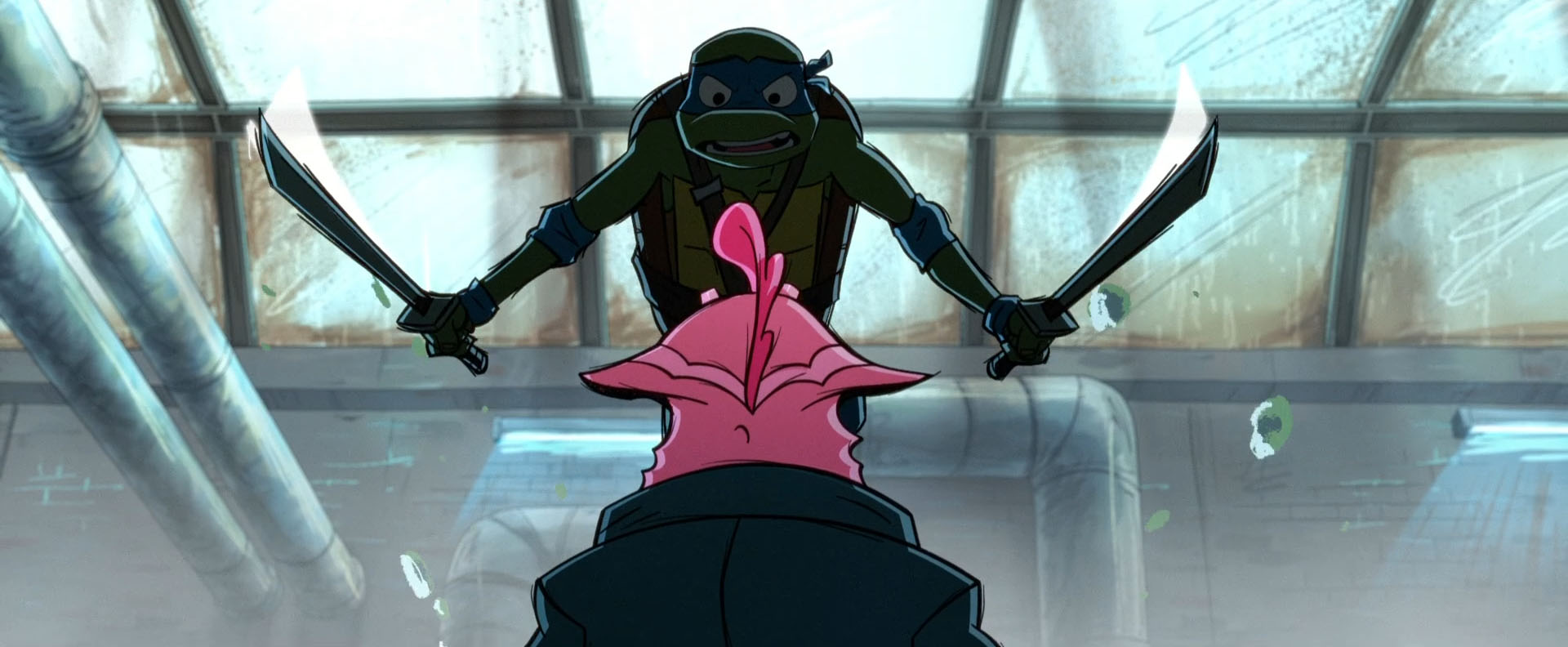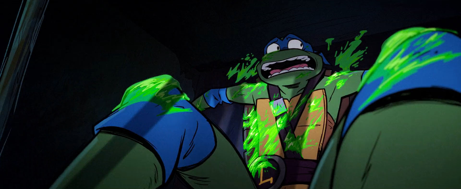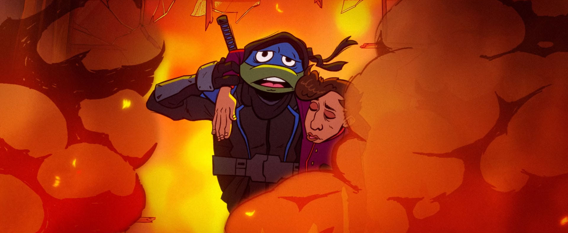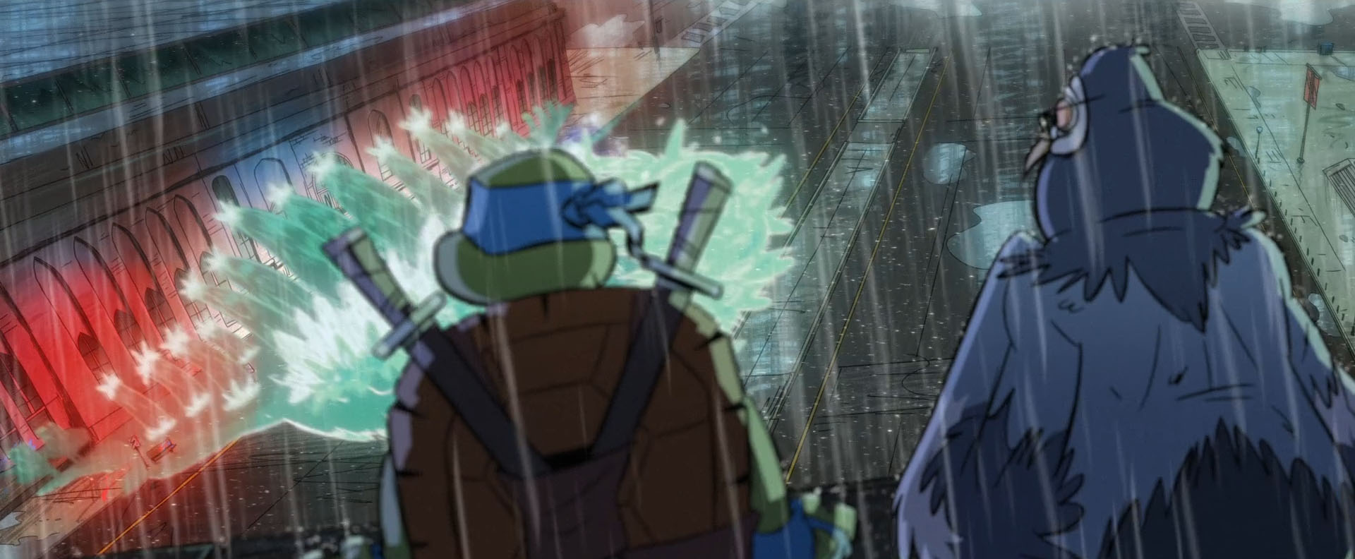 Cynthia Utrom, à la tête de l’entreprise, voulait drainer leur sang pour prélever du mutagène afin de terminer un projet de super-mutants. Leonardo et ses frères furent traits jusqu’à l’arrivée de Splinter, prévenu par April de la capture de ses nouveaux amis. Le rat neutralisa tous les soldats puis libéra ses fils. Ils partaient à la recherche de Superfly, caché dans son repaire. Une fois leur erreur réparée, le rongeur tenait à ce que ses fils ne sortent plus jamais des égouts. La famille partit retrouver Superfly dans l’épave d’un bateau échoué au large de la ville. Les tortues parvenaient à convaincre les autres mutants que les humains n’étaient pas aussi mauvais que ce qu’ils pensaient. Et qu’ils pouvaient se joindre à eux. Tous essayèrent d’empêcher Superfly d’enclencher sa machine. Le mutant tomba dans l’eau et se transforma en monstre gigantesque. Il partit s’attaquer à New York. Les tortues le suivirent et menèrent l’assaut dans les rues. Leonardo parvint à prendre une capsule d’anti-mutagène qu’il lança dans le dos du monstre, qui fut neutralisé.
