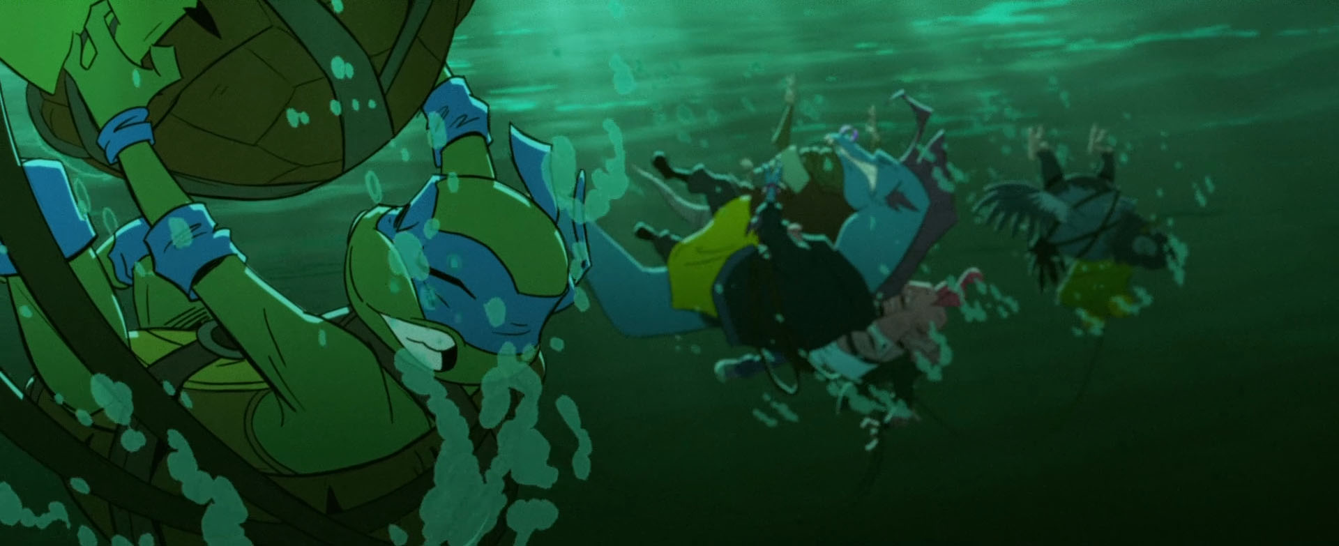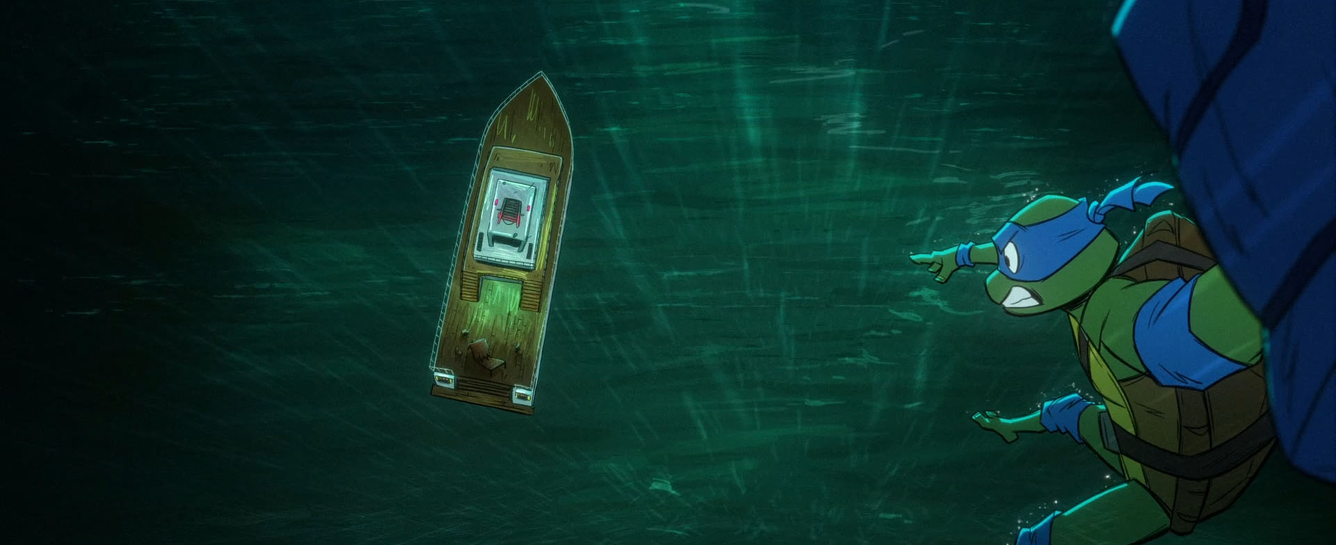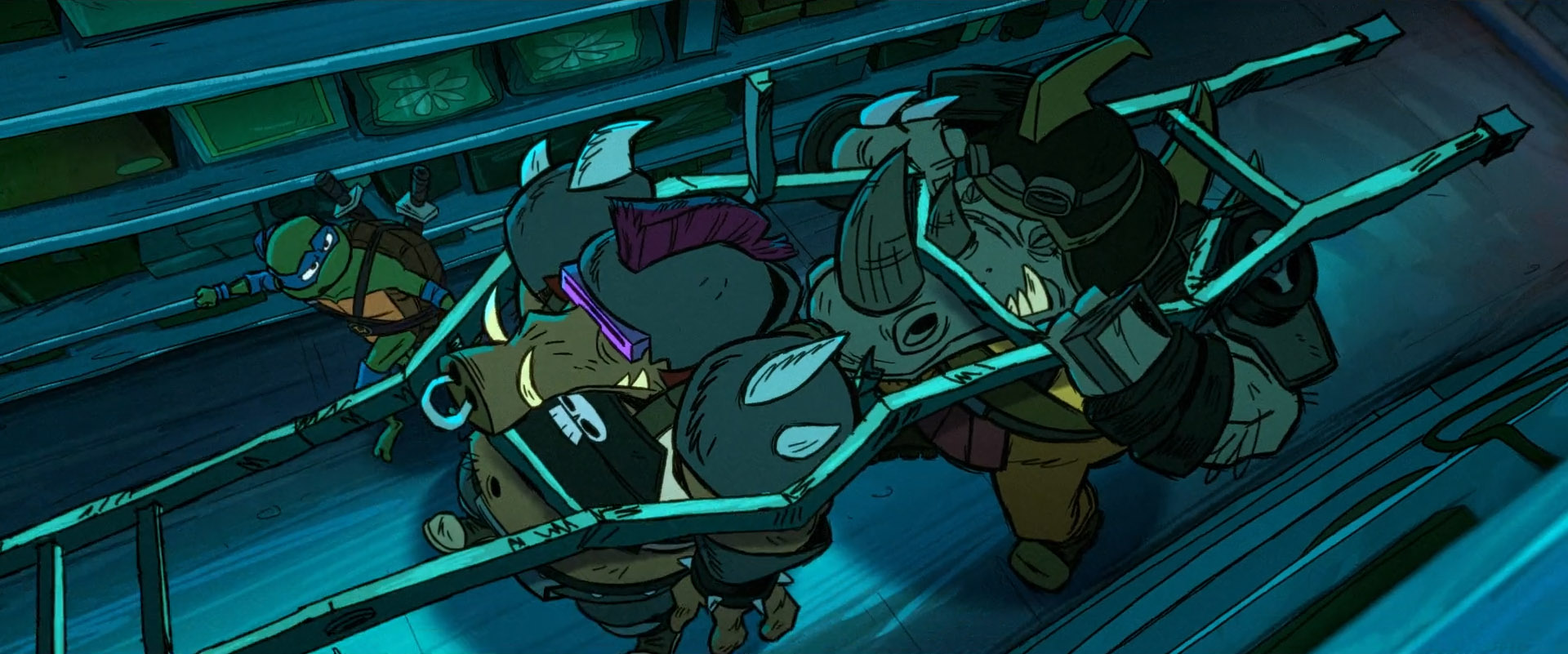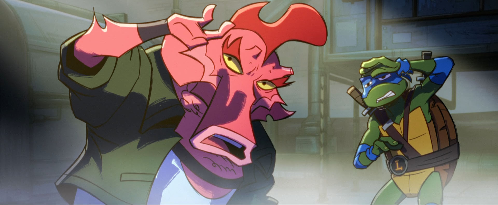 Cynthia Utrom, à la tête de l’entreprise, voulait drainer leur sang pour prélever du mutagène afin de terminer un projet de super-mutants. Leonardo et ses frères furent traits jusqu’à l’arrivée de Splinter, prévenu par April de la capture de ses nouveaux amis. Le rat neutralisa tous les soldats puis libéra ses fils. Ils partaient à la recherche de Superfly, caché dans son repaire. Une fois leur erreur réparée, le rongeur tenait à ce que ses fils ne sortent plus jamais des égouts. La famille partit retrouver Superfly dans l’épave d’un bateau échoué au large de la ville. Les tortues parvenaient à convaincre les autres mutants que les humains n’étaient pas aussi mauvais que ce qu’ils pensaient. Et qu’ils pouvaient se joindre à eux. Tous essayèrent d’empêcher Superfly d’enclencher sa machine. Le mutant tomba dans l’eau et se transforma en monstre gigantesque. Il partit s’attaquer à New York. Les tortues le suivirent et menèrent l’assaut dans les rues. Leonardo parvint à prendre une capsule d’anti-mutagène qu’il lança dans le dos du monstre, qui fut neutralisé.