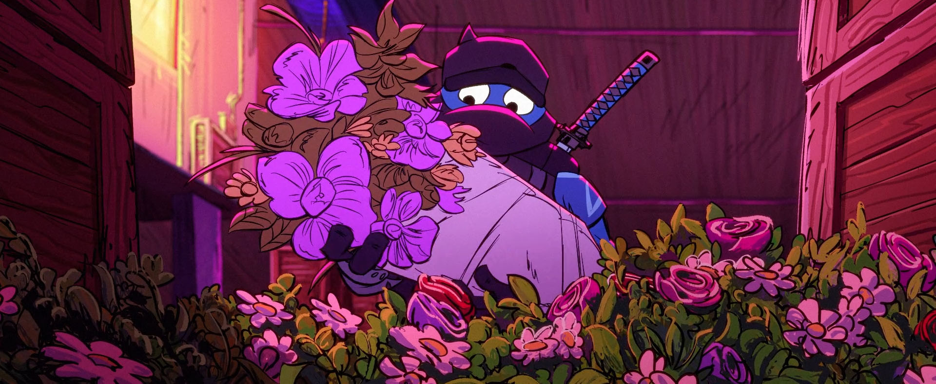 Pour remotiver les troupes, April leur suggéra de s’attaquer à des voleurs de chiens. Mais cette piste les mena à La Fleur et son trafic d’armes cachées dans des bouquets. L’affaire était bien plus grosse que les frères ne l’imaginaient. Ils la suivirent dans un hôtel de luxe pour chiens et l’empêchèrent de s’emparer dans canidés. Mais le bâtiment fut ravagé par les flammes. Leonardo se demandait s’il était réellement la bonne personne pour ce travail (Le ninja de la nuit, S2 E7).