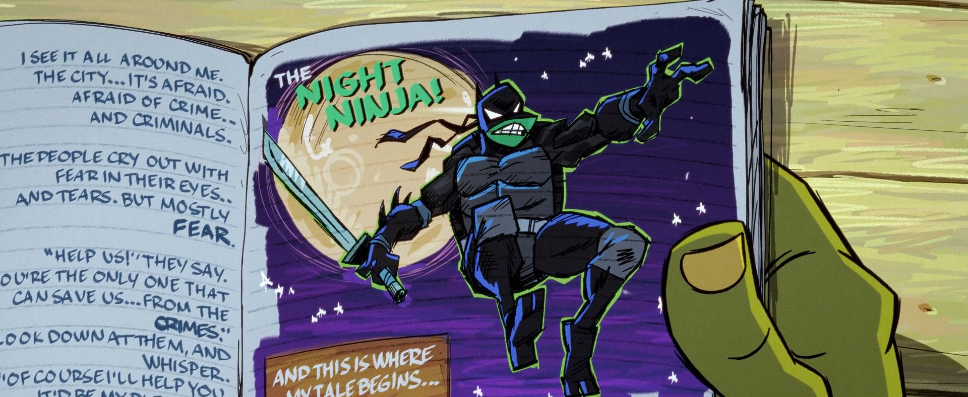 Depuis toujours, Leonardo rêvait d’être un super-héros. Après avoir sauvé des personnes dans le métro il fut applaudi par la foule. Son heure de gloire était peut-être arrivée ? Il se conçut un costume et partit dans les rues affronter le crime en tant que Ninja de la nuit (Night ninjaVO) et s’attaqua dans un premier temps aux Purple Dragons, mais une caméra filma son combat et les médias s’emparèrent de l’évènement. Ses frères et April le reconnurent immédiatement et la jeune femme voyait là un excellent moyen de faire valoir son travail. Elle n’aurait qu’à être présente lors des combats pour avoir de superbes photos et couvrir les évènements. Les trois autres frères firent leurs costumes et partirent également affronter le crime pendant une semaine. Après cela, Donatello commençait déjà à en avoir assez. Mais pas Leonardo, qui en redemandait sans cesse.