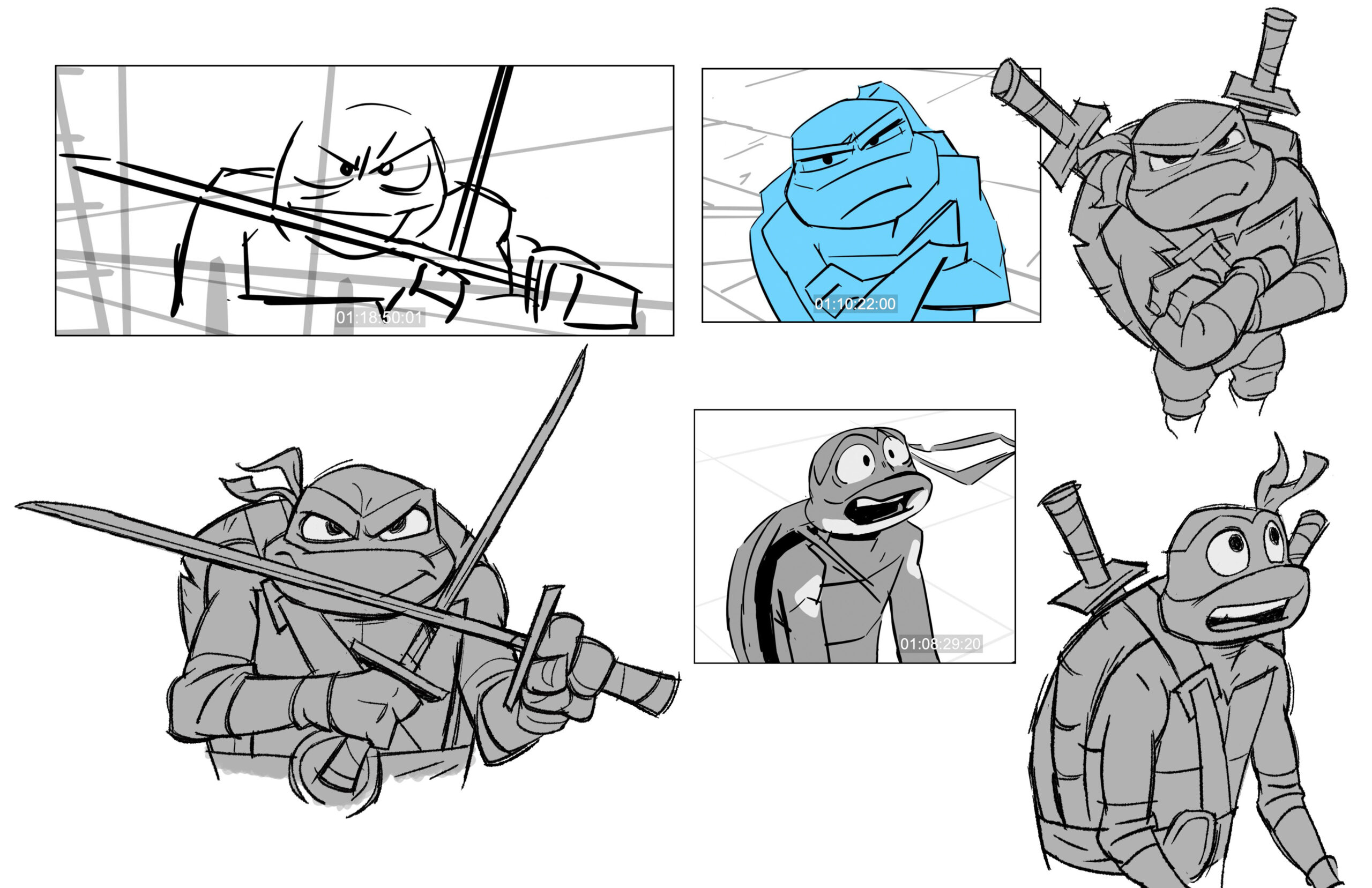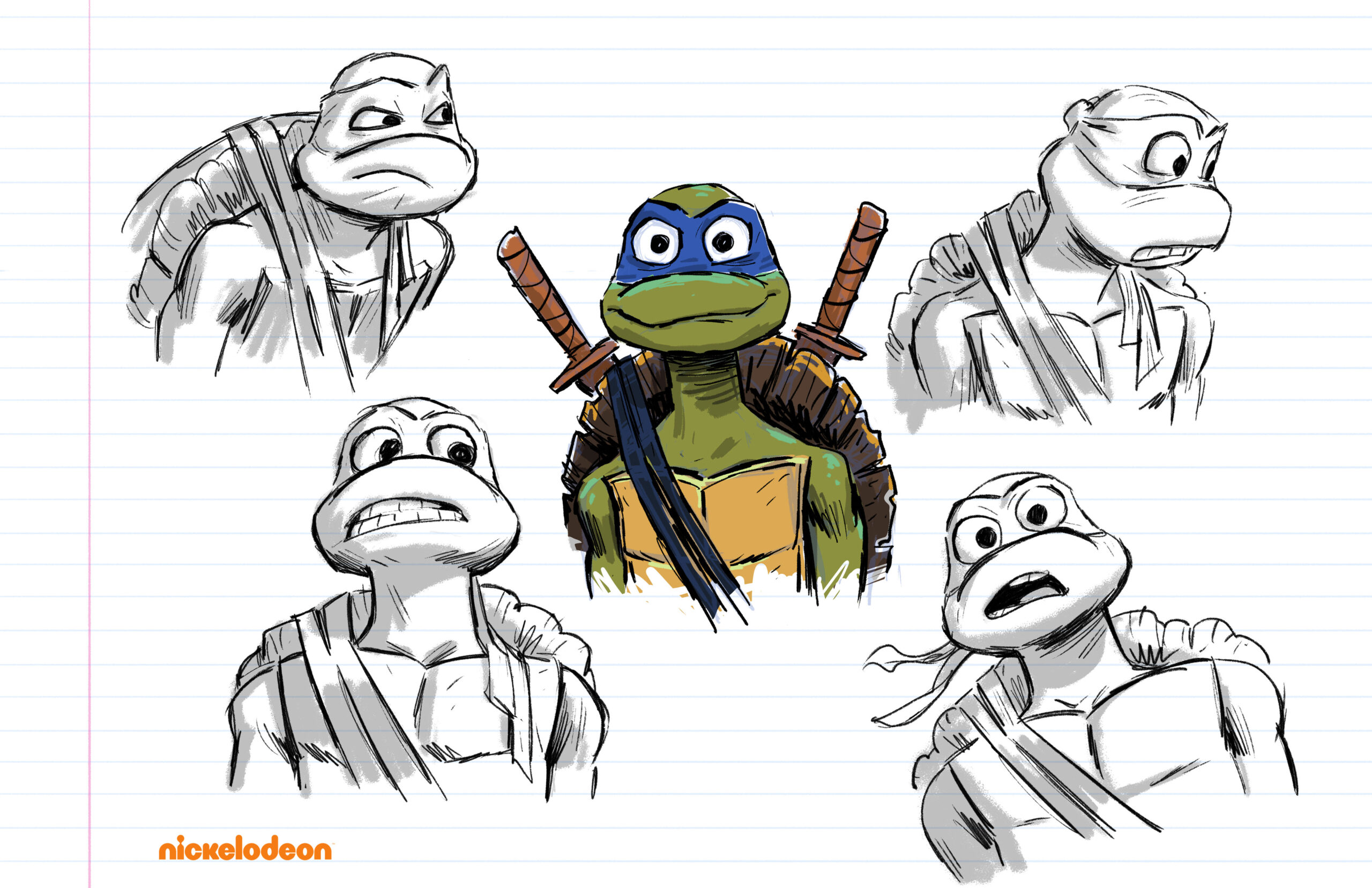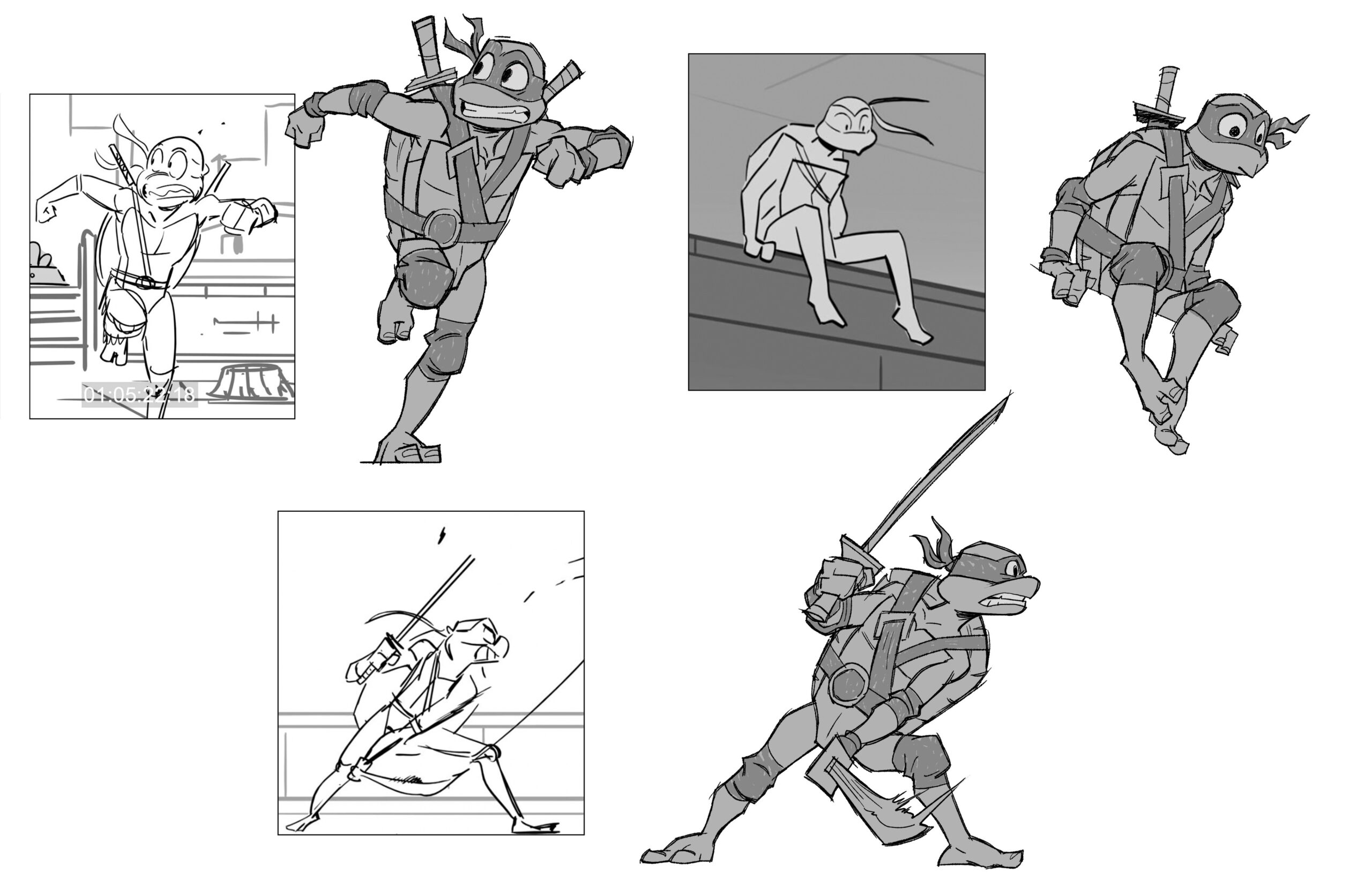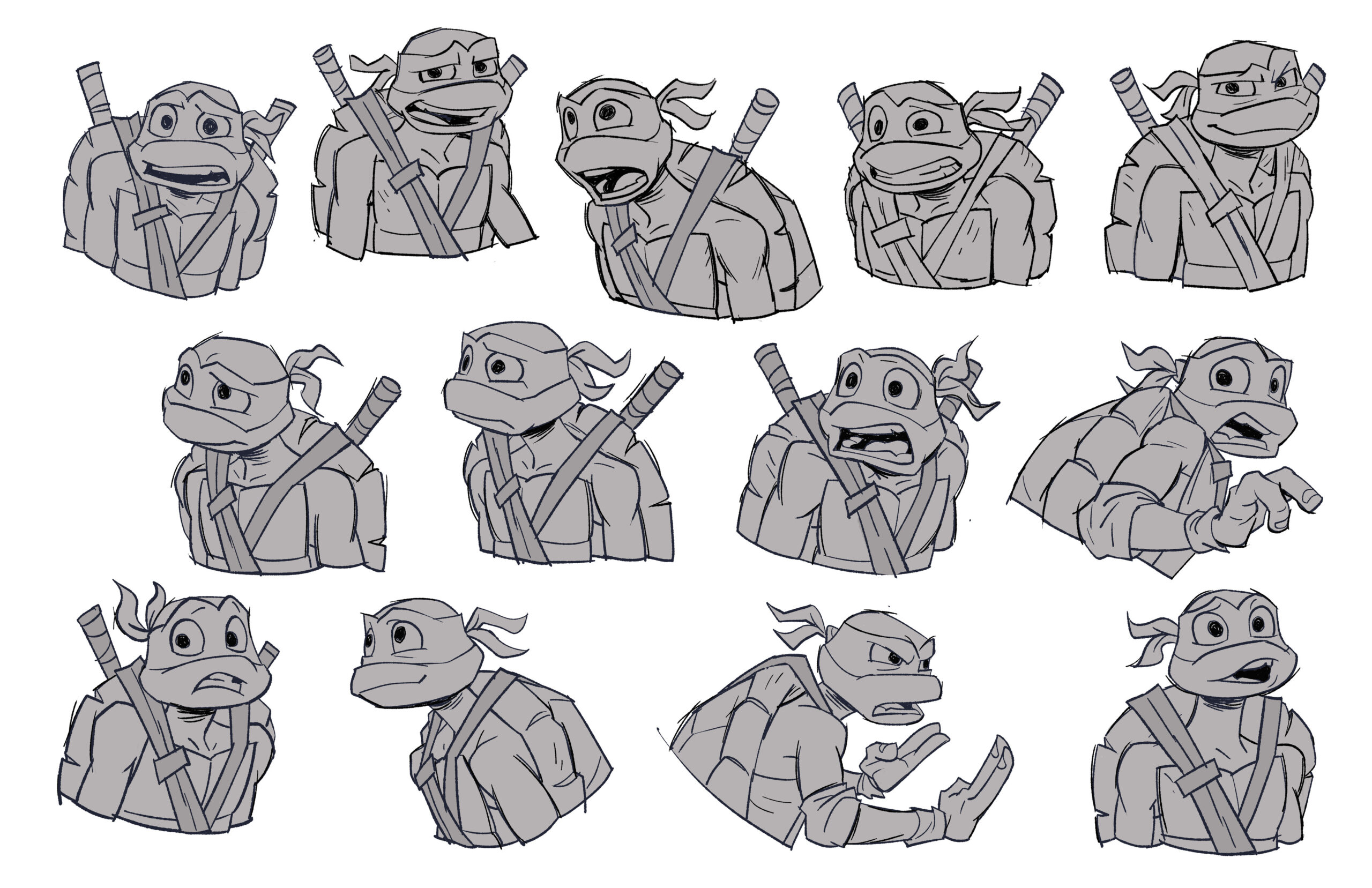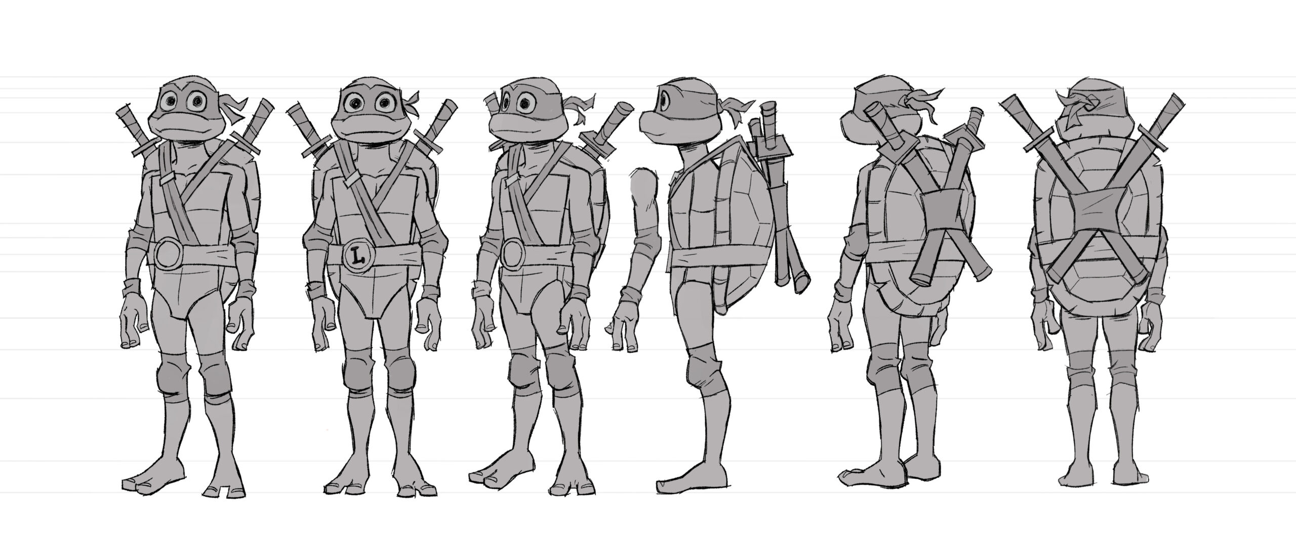 Ces images proviennent de l’Instagram de Maxime Mary. Les premières images sont les tous premiers travaux sur la production de la série et les recherches de designs pour établir des attitudes propres à chaque tortue.