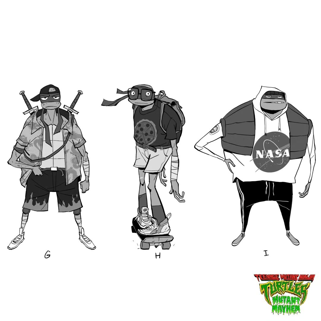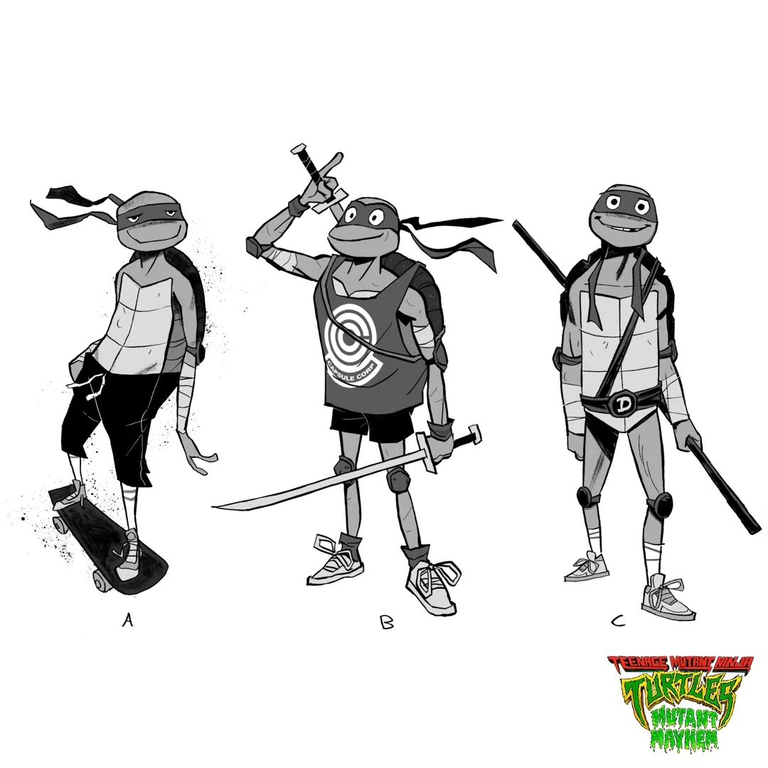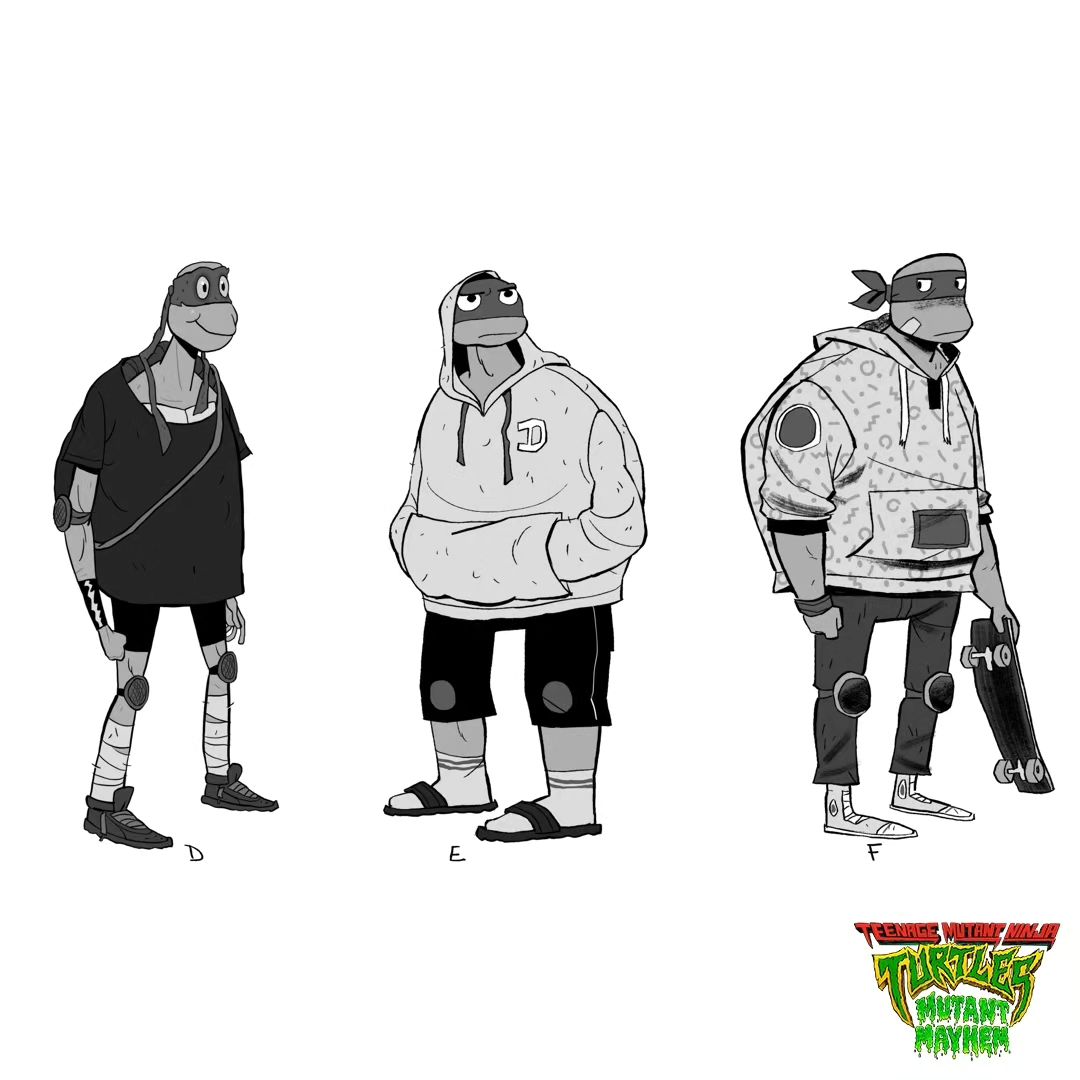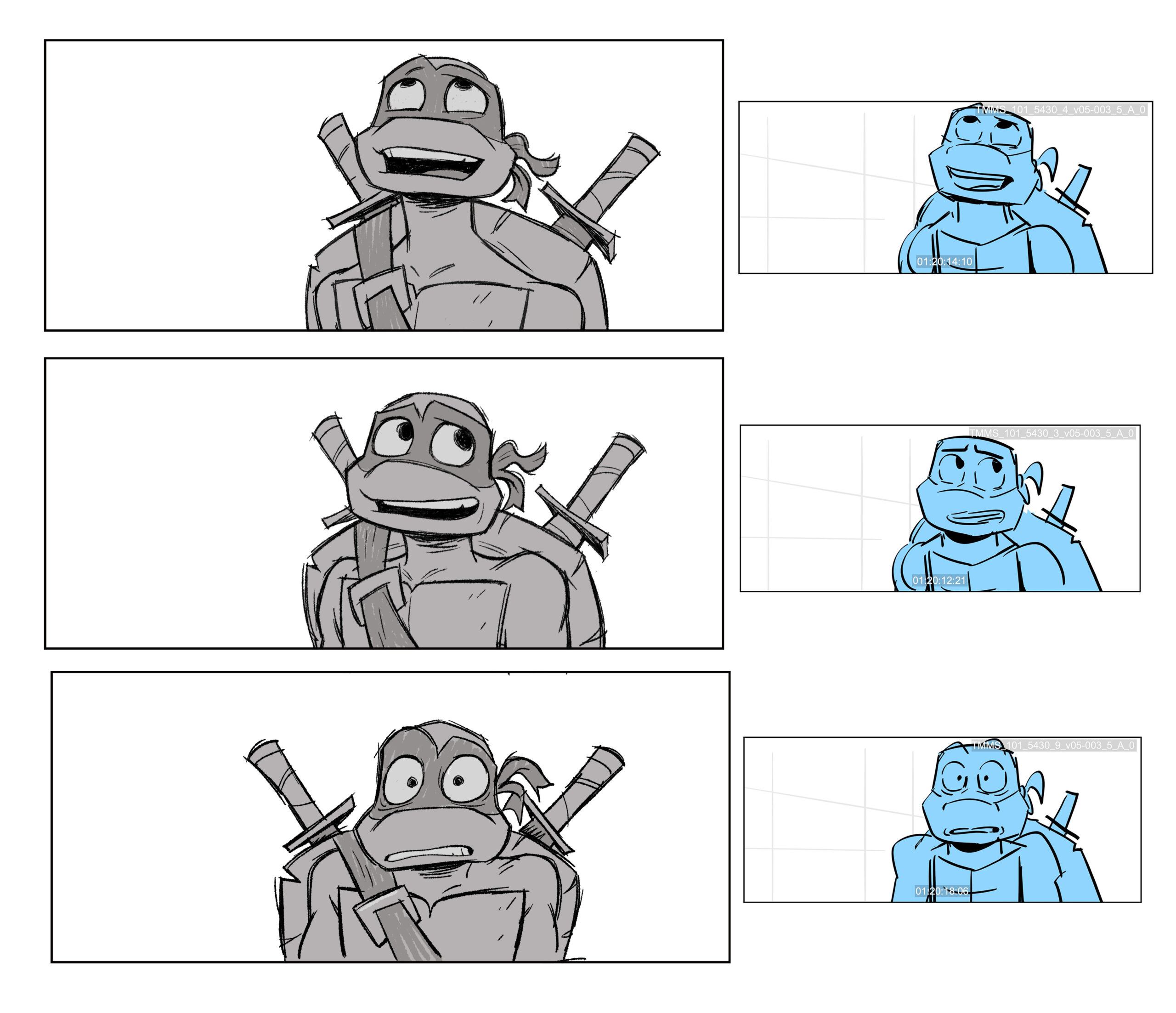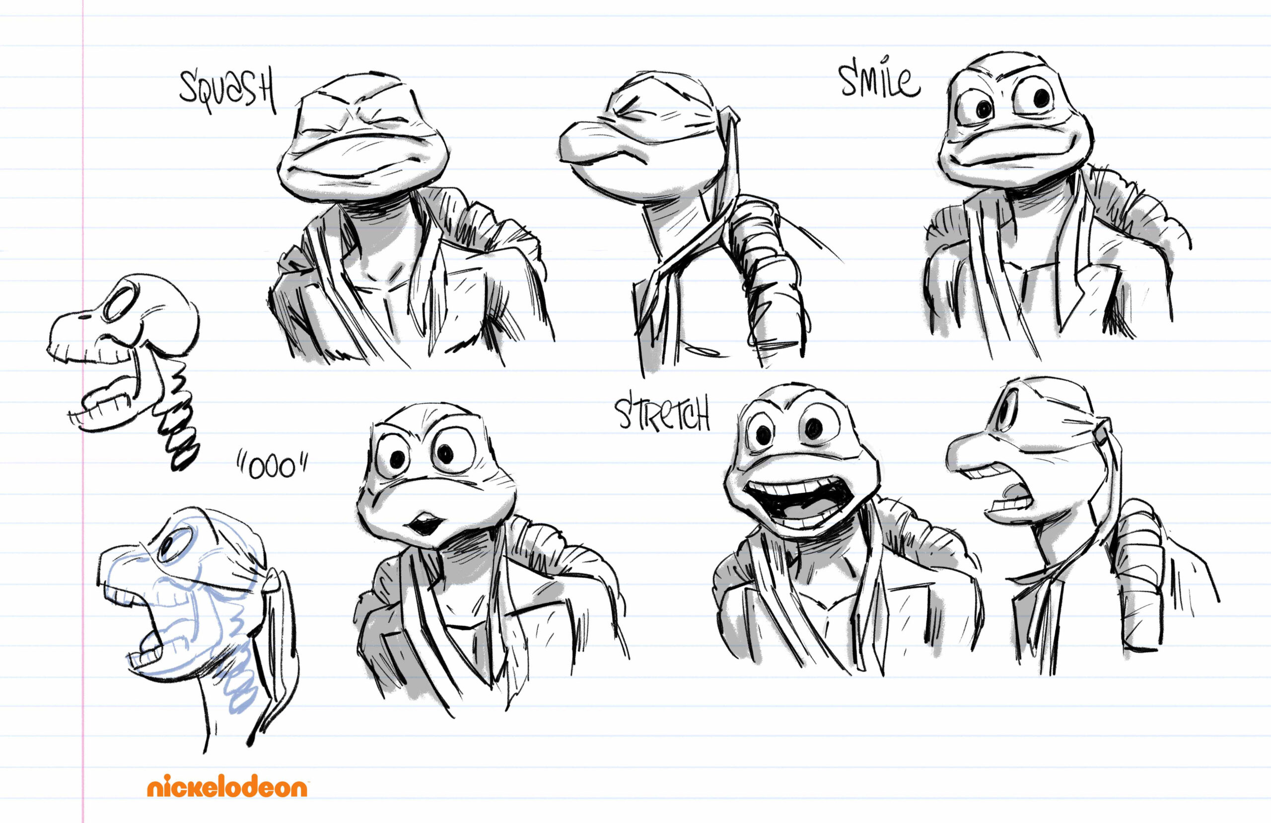 Ces images proviennent de l’Instagram de Maxime Mary. Les premières images sont les tous premiers travaux sur la production de la série et les recherches de designs pour établir des attitudes propres à chaque tortue.