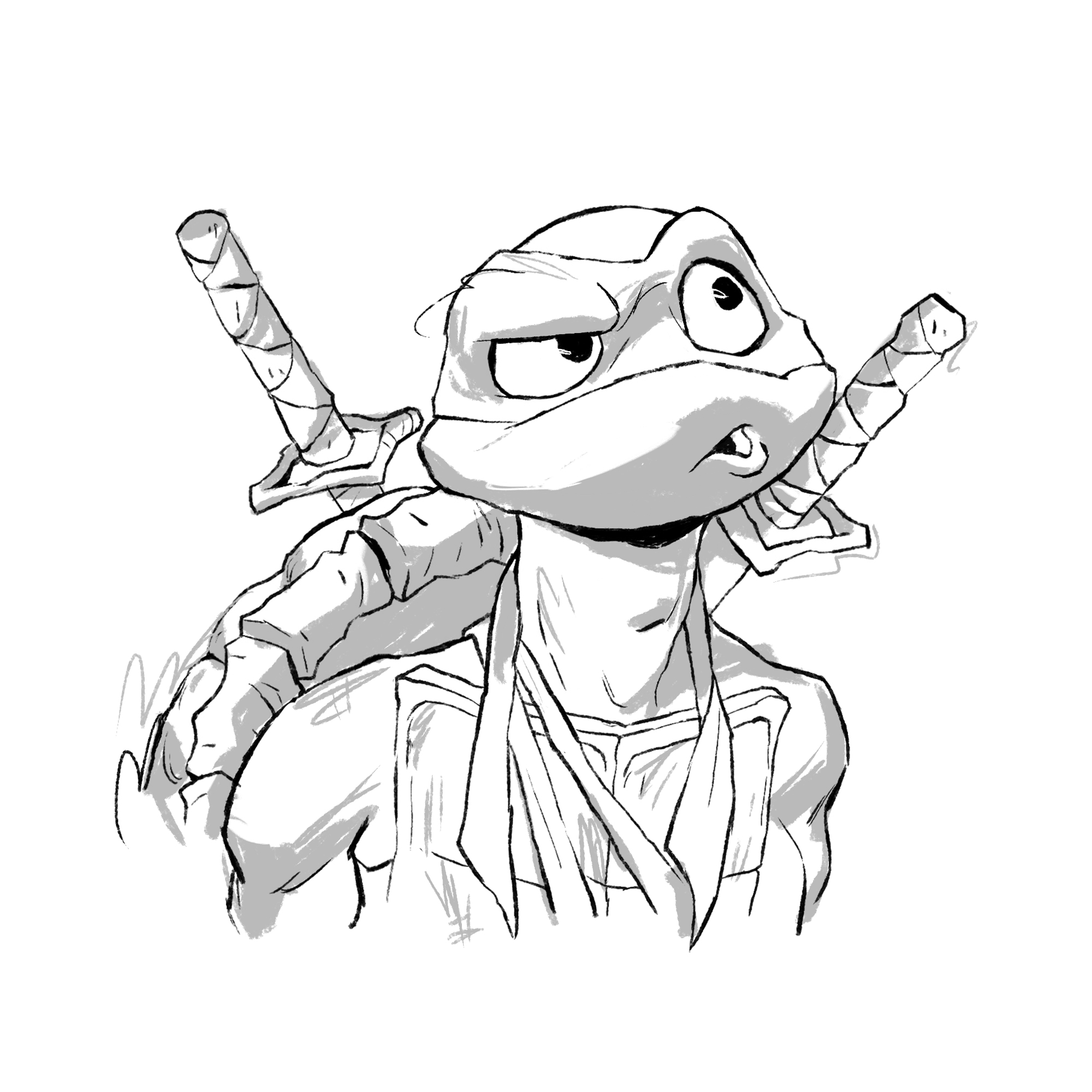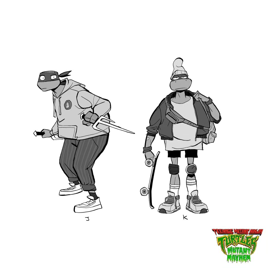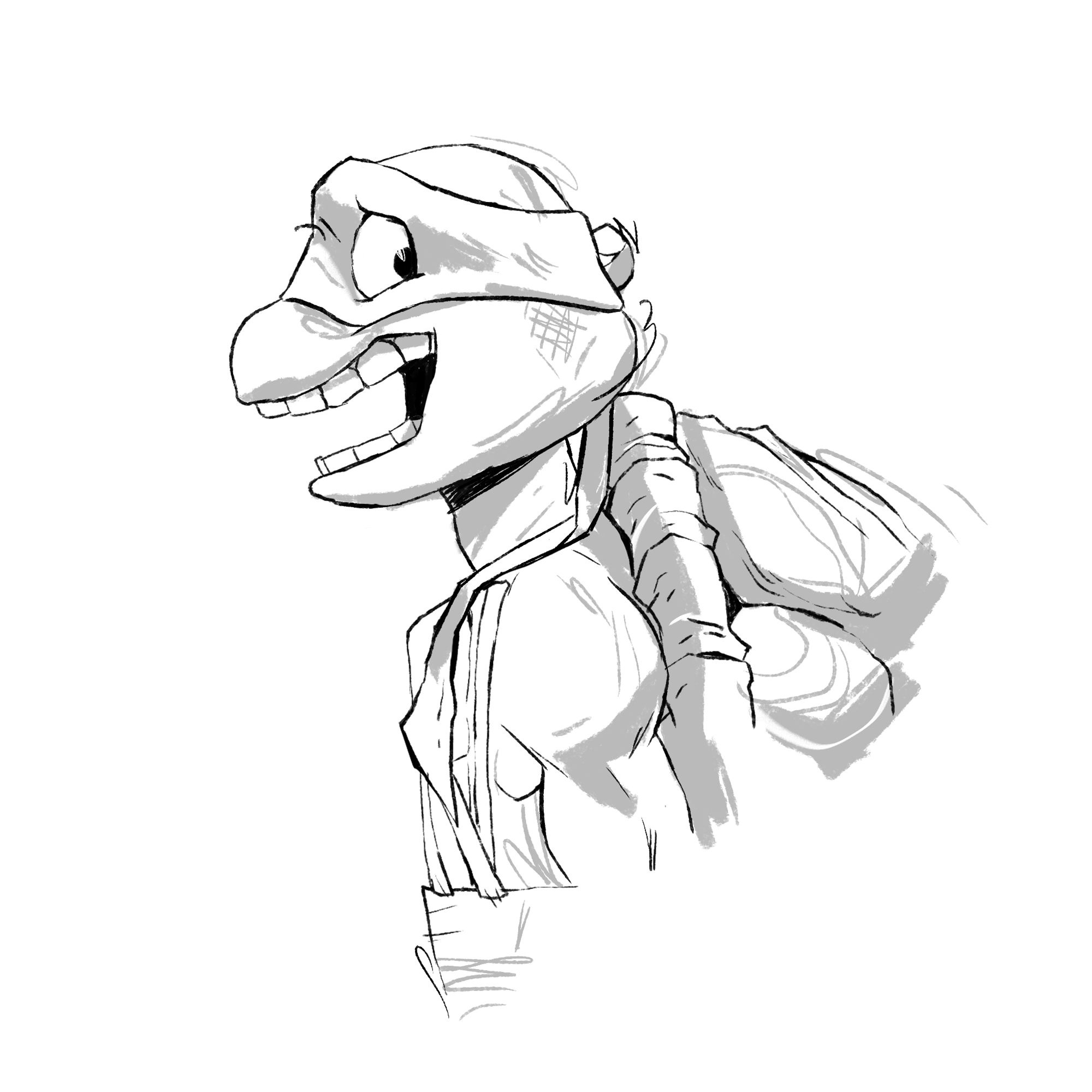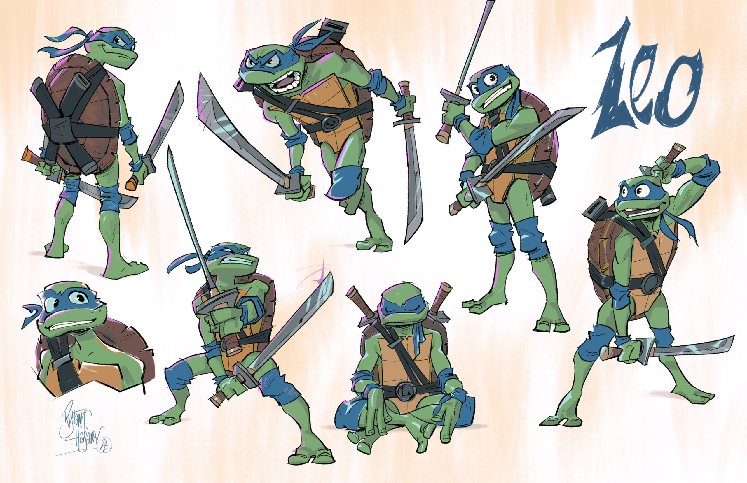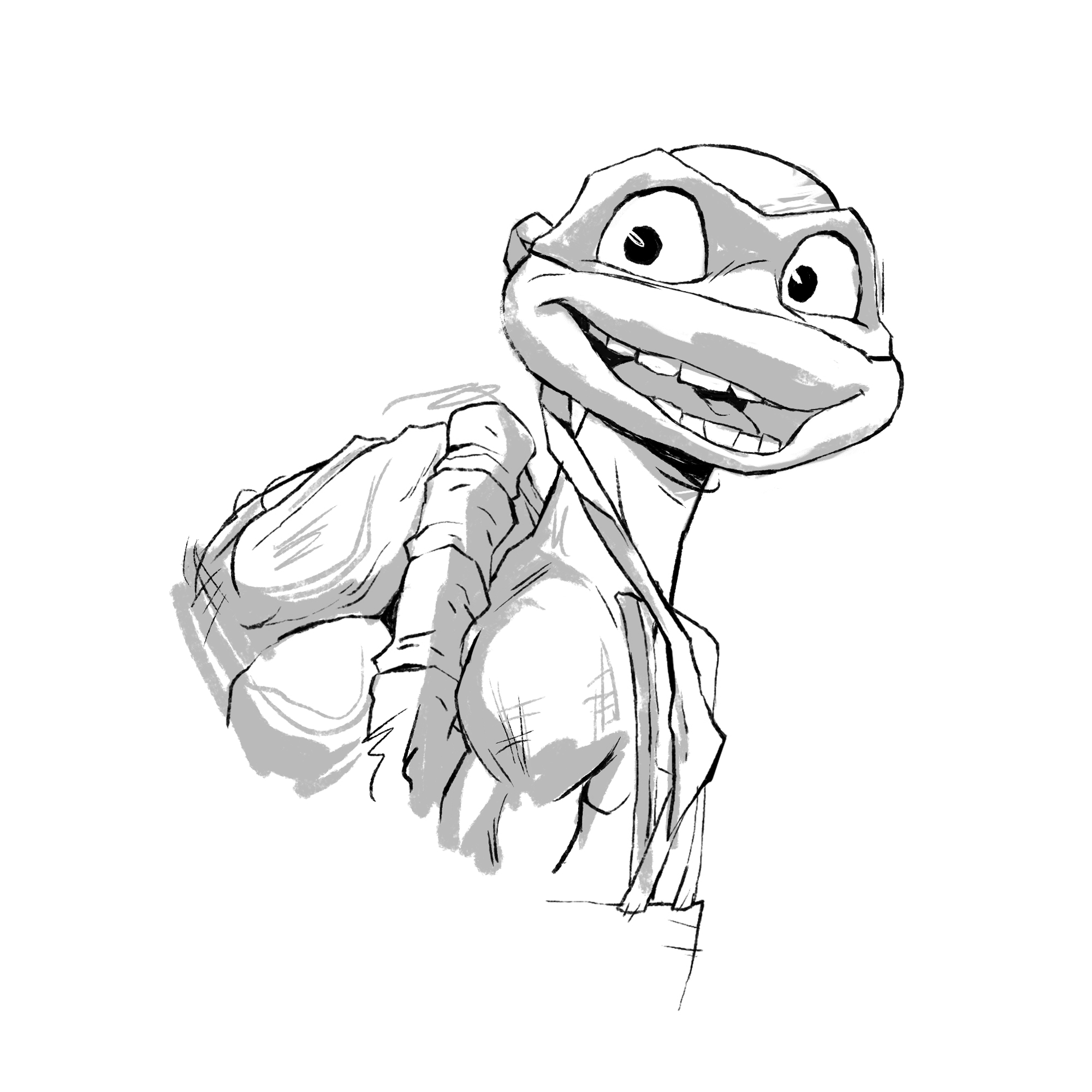 Ces images proviennent de l’Instagram de Maxime Mary. Les premières images sont les tous premiers travaux sur la production de la série et les recherches de designs pour établir des attitudes propres à chaque tortue.