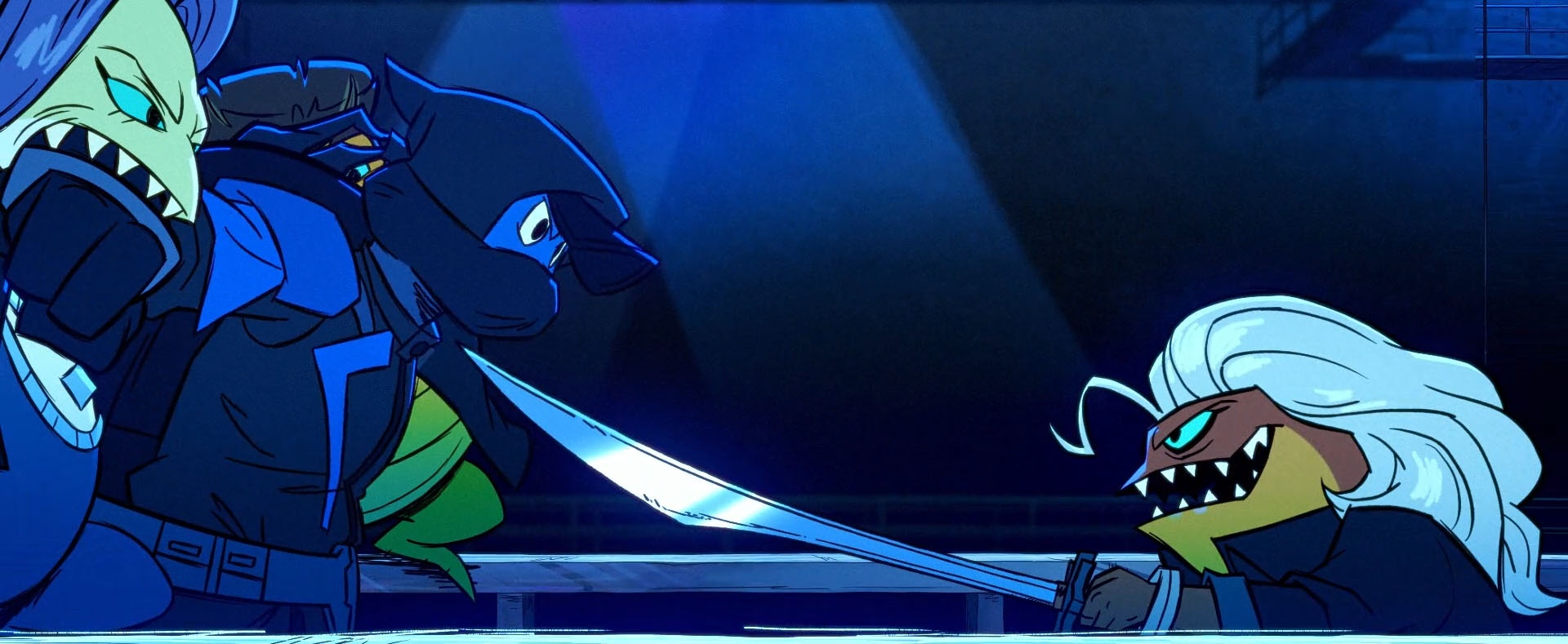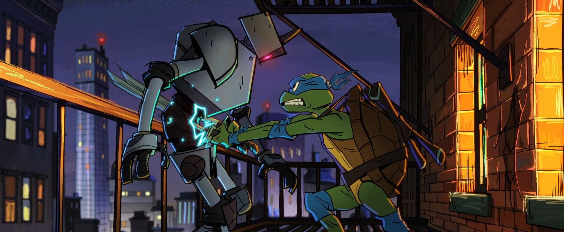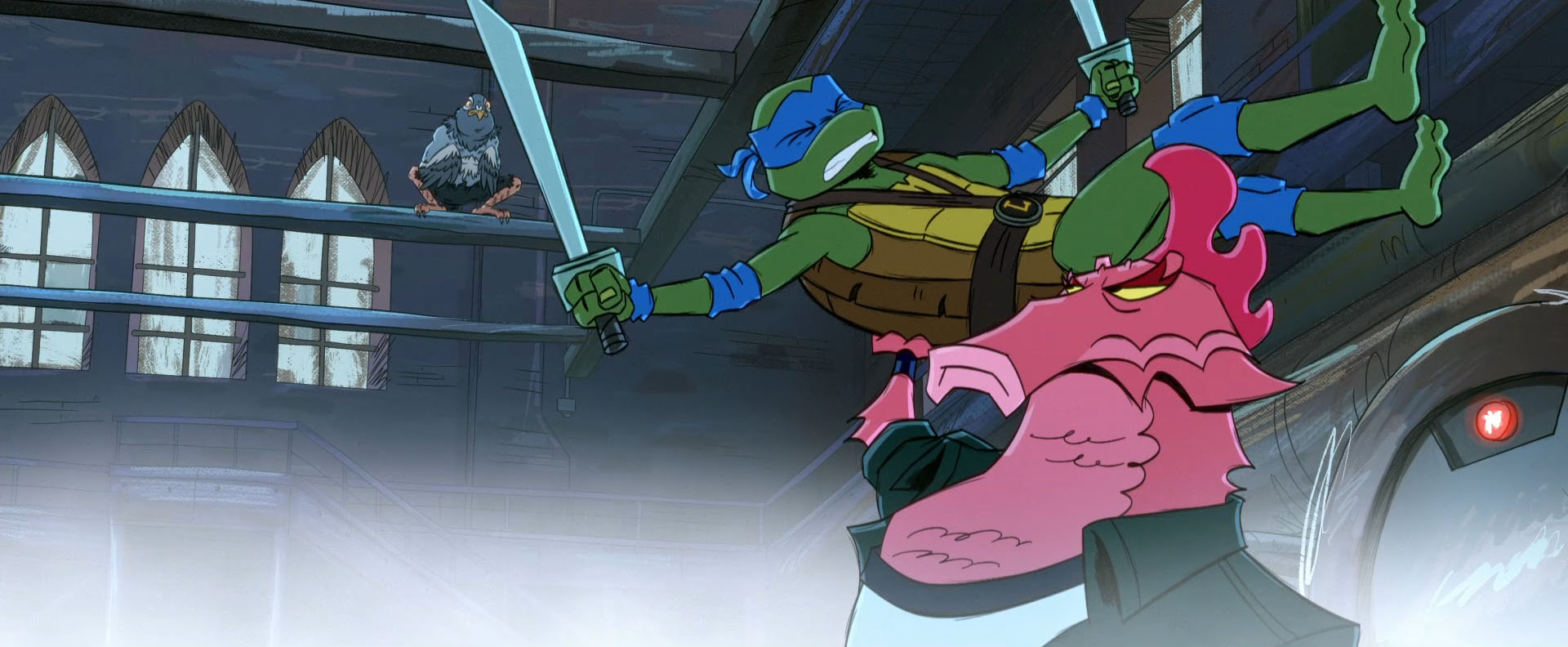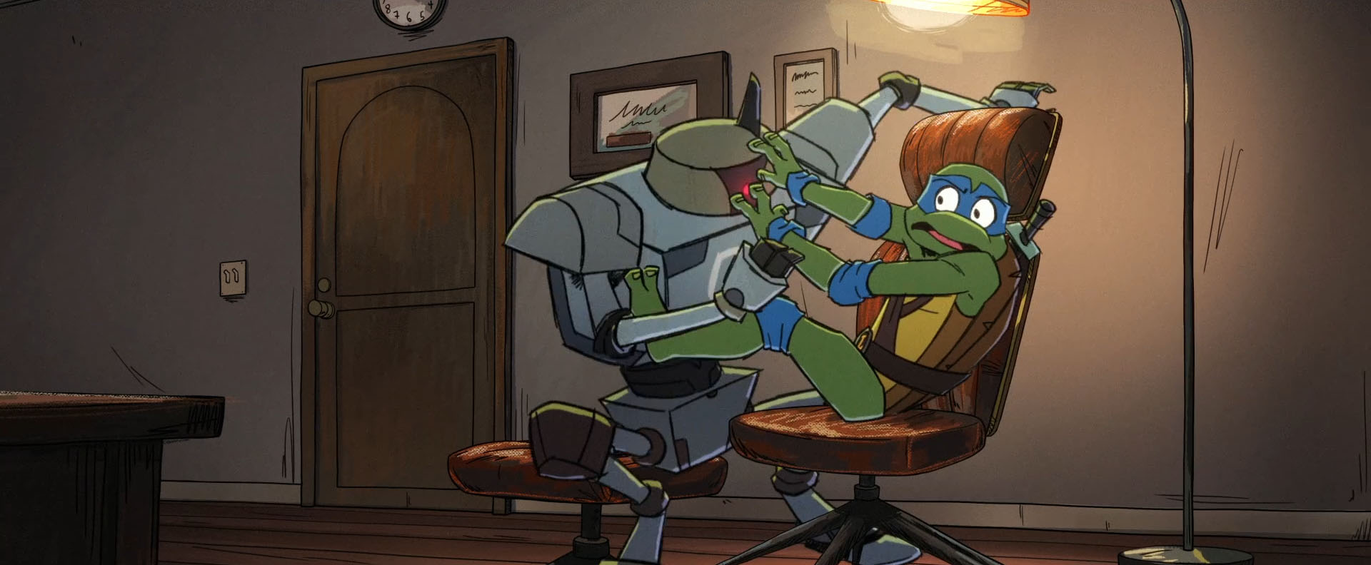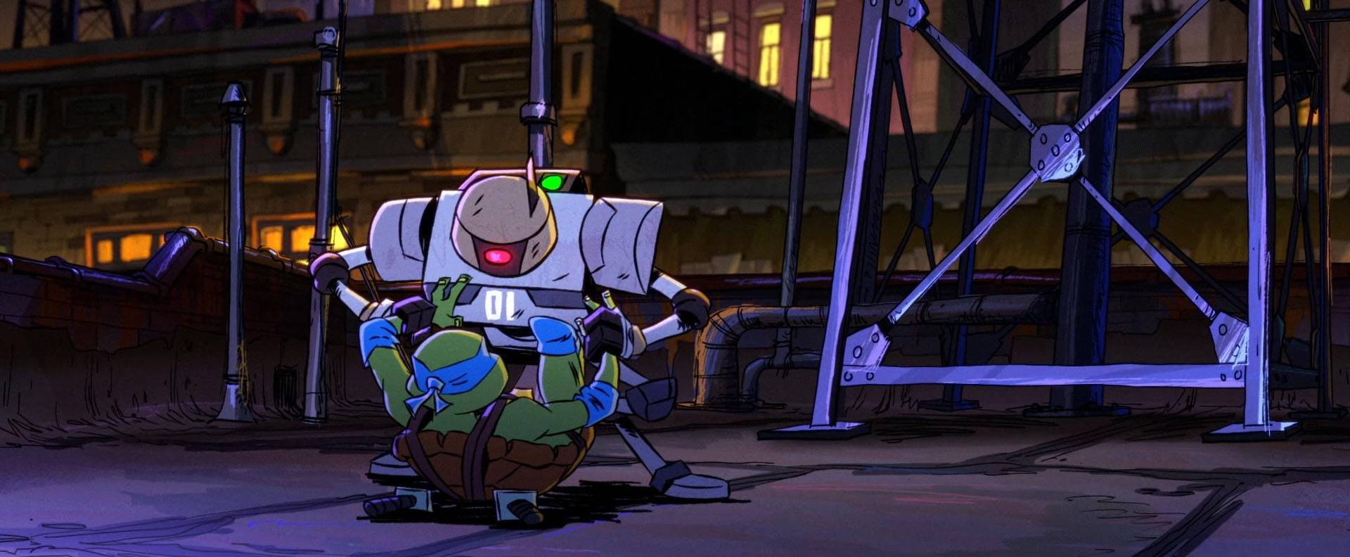 Un jour, April invita les tortues à participer à une fête costumée chez un de leurs amis de lycée. Leonardo s’était déguisé en samurai à cette occasion. Mais les tortues reçurent des notifications d’alerte. Ils partirent pour les docks voir de quoi il en retournait. Ils tombèrent dans un piège de Bishop, qui lança des Mechazoids sur les tortues.