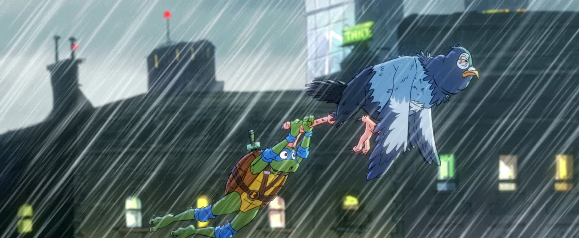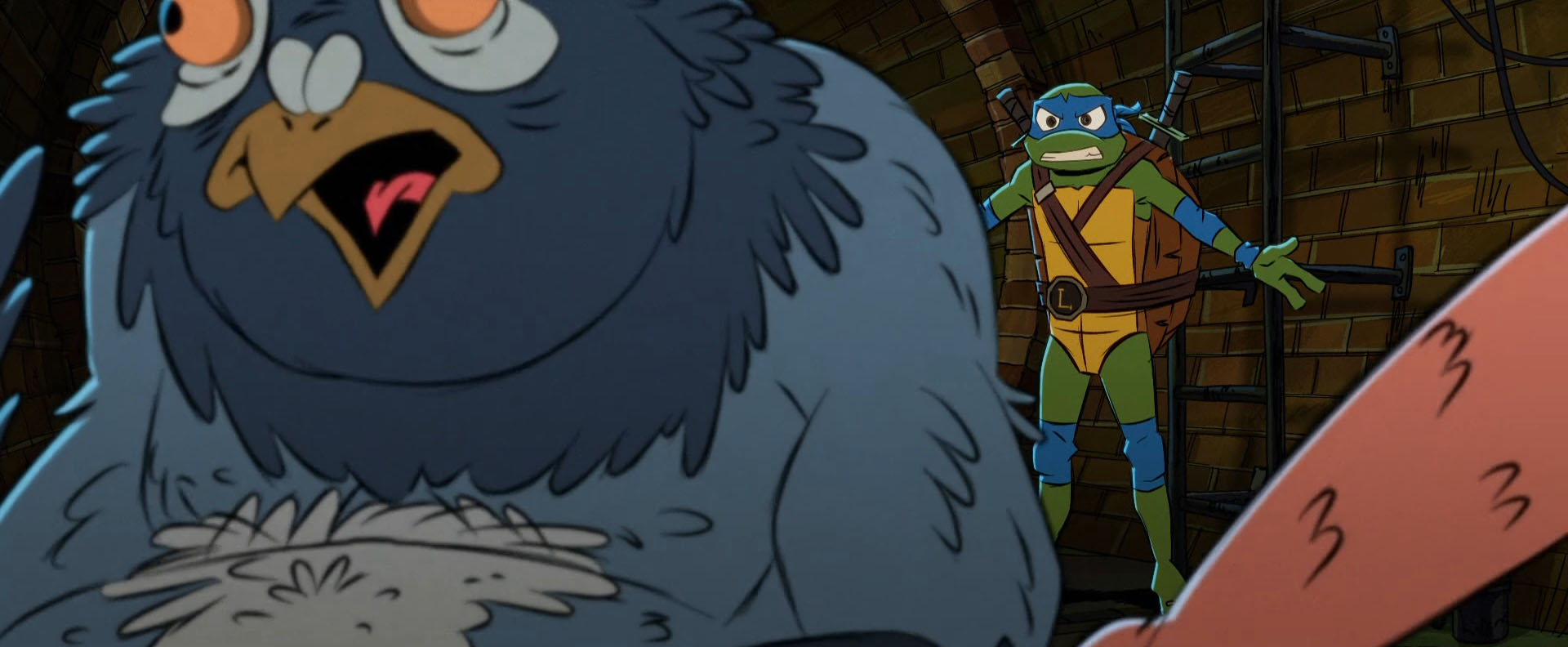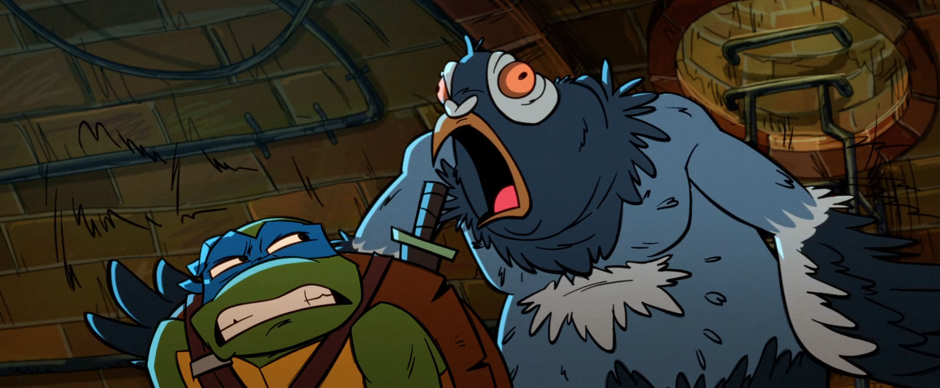 Là, le ninja découvrit Mustang Sally, un hippocampe mutant qui essayait de saboter le lieu pour inonder la ville. La tortue chercha à lui barrer la route mais au même moment arriva le détective Hauser et des militaires. L’homme avait une peur bleue des oiseaux, et voyant ce pigeon géant, voulut l’appréhender avec l’aide du matériel de l’Earth Protection Force. Leonardo essayait d’éviter tant bien que mal des fléchettes destinées à le neutraliser. Hauser toucha quant à lui Pigeon Pete à l’aide d’un filet électrifié. L’oiseau s’écrasa au sol. Leonardo vola à son secours et à sa grande surprise, vit le volatile lui parler. Le choc électrique avait libéré la parole de Pigeon Pete, qui pouvait enfin tenir un discours cohérent.