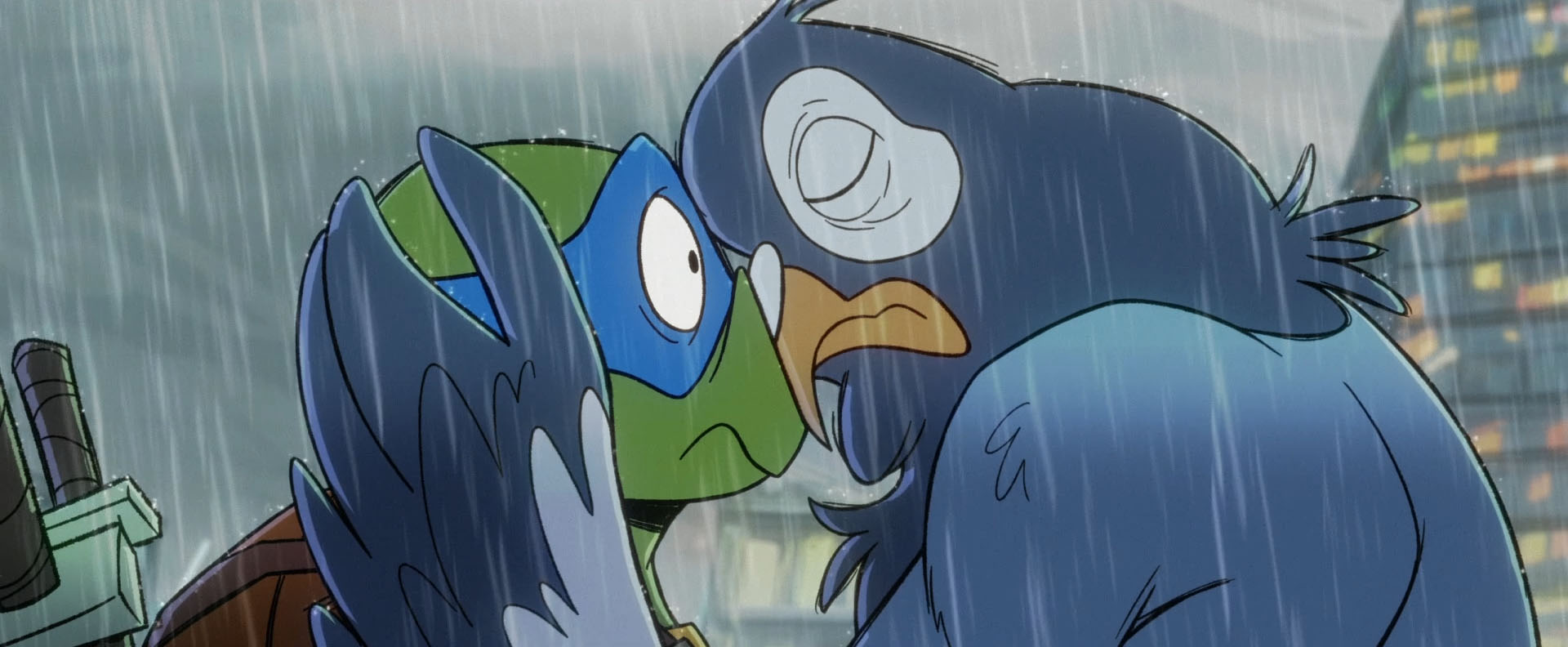 Les deux mutants se retrouvèrent sur le toit de la station. Pigeon Pete remercia Leonardo d’avoir tant pris soin de lui malgré les conditions difficiles. Au même moment, ils virent la station libérer une vague géante d’eau qui s’abattit sur le Muséum d’Histoire Naturelle. Le plan des Trois de l’East River s’accomplissait (Leonardo prend son envol, S1 E11).