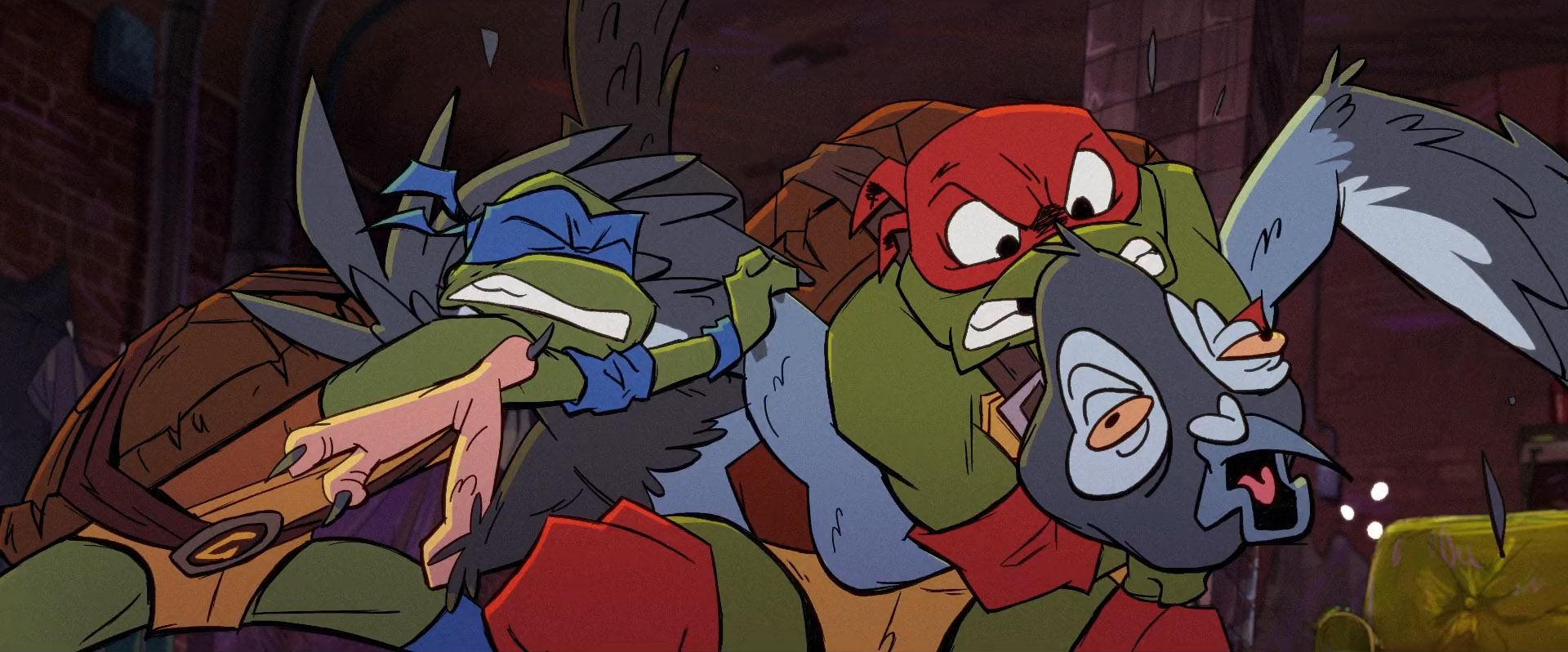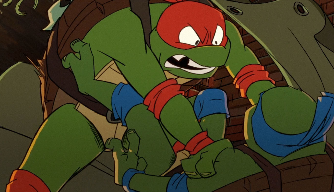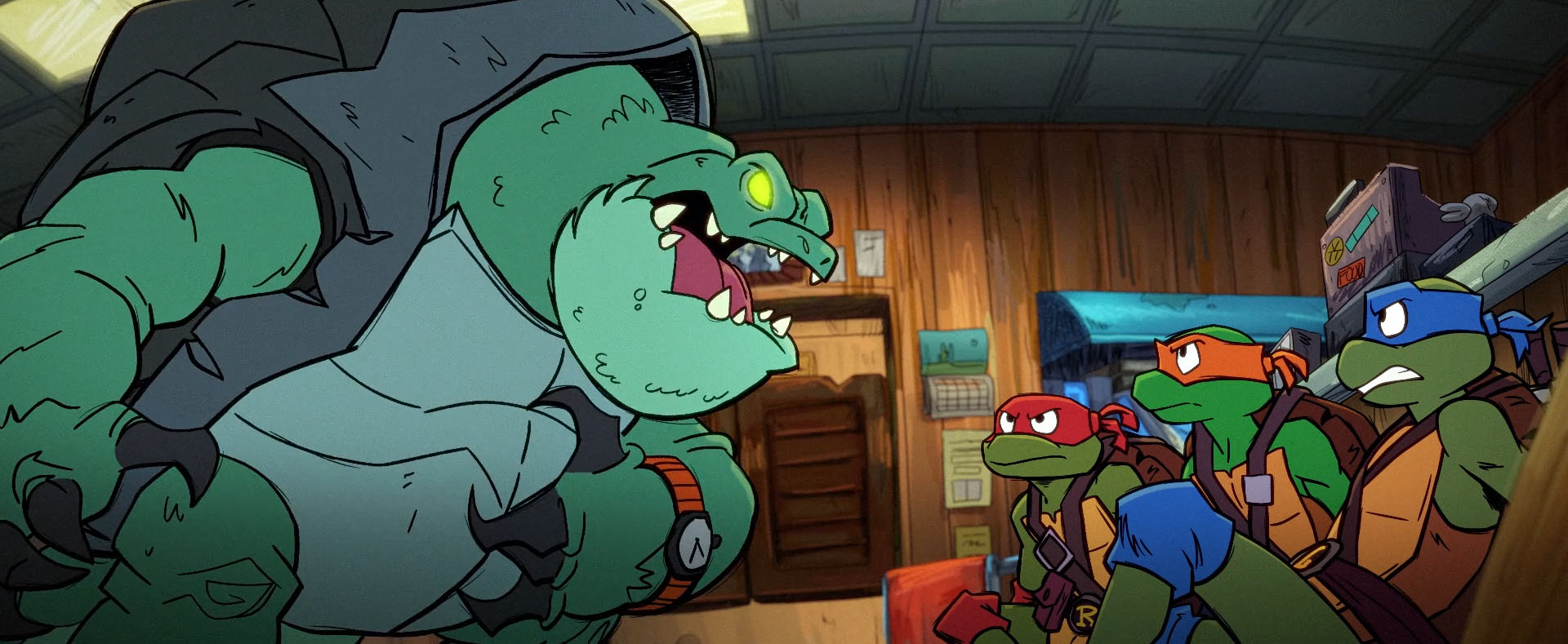 La tortue découvrait finalement le hangar où étaient construits les Mechazoids et y retrouvait Raphael. Ils firent tous deux face à Bishop et à un robot géant.