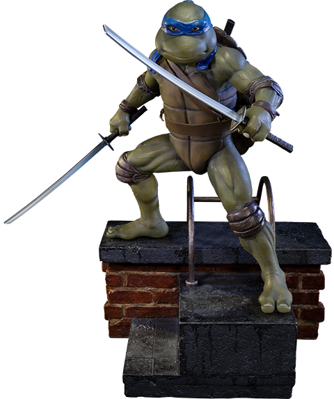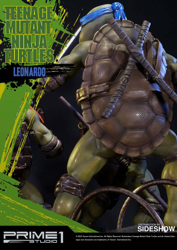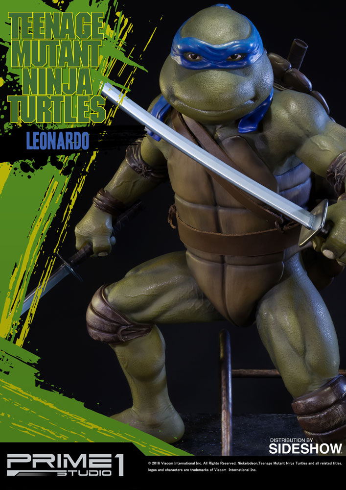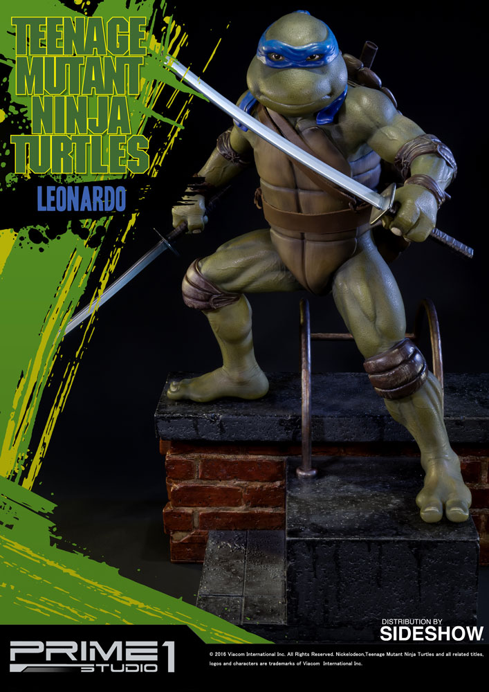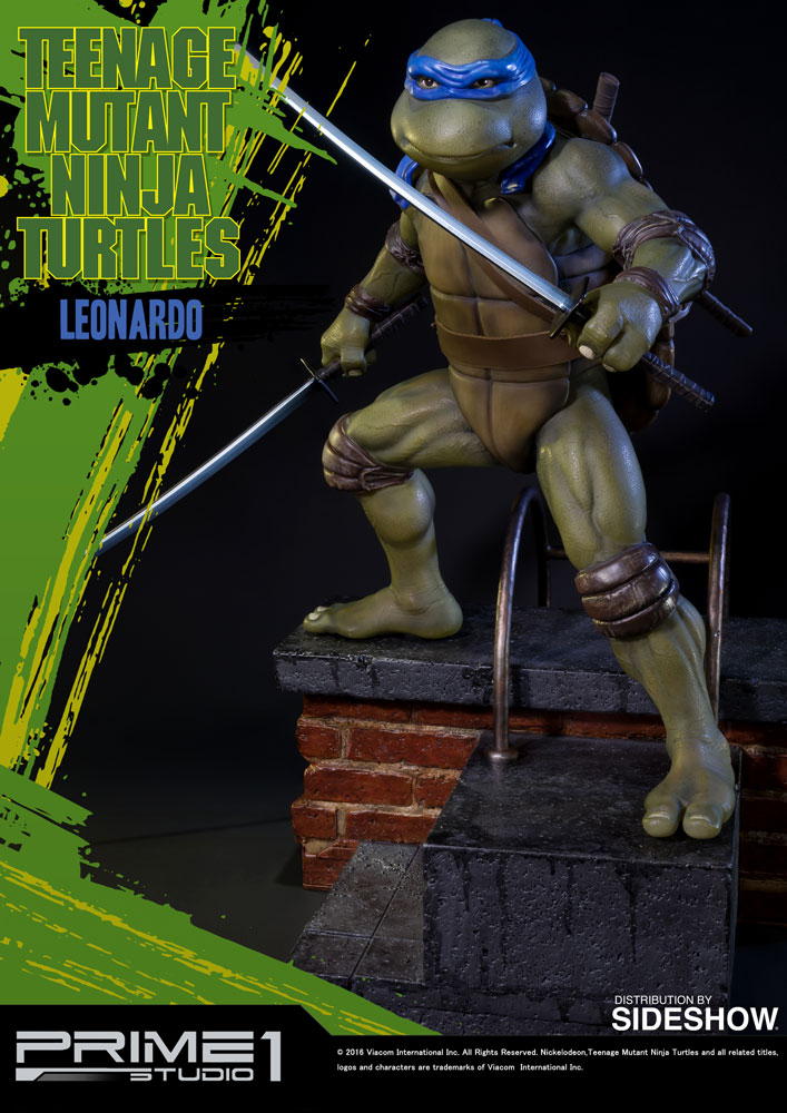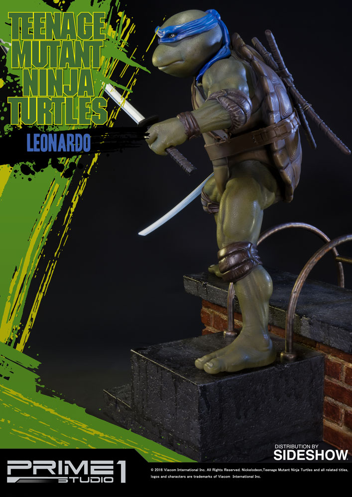 La statuette de Leonardo est l’une des quatre pièces créées par Prime 1 Studio à l’image des personnages du film Tortues Ninja de 1990. Réalisée en polystone transparent, elle mesure 52 cm de haut. Les socles des quatre pièces peuvent se connecter pour former un diorama.