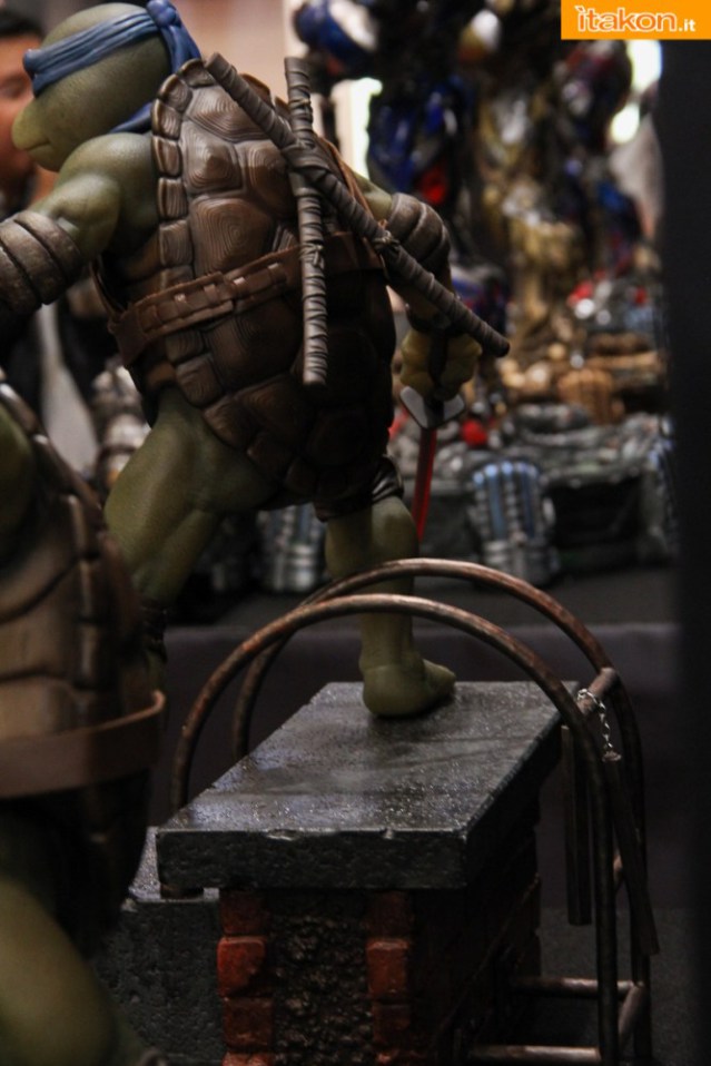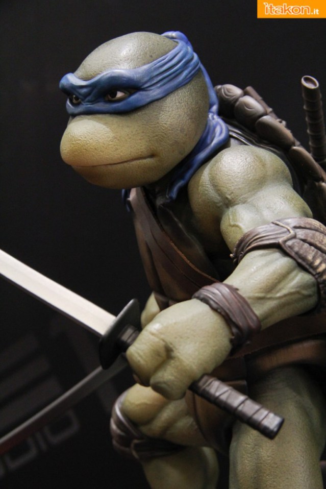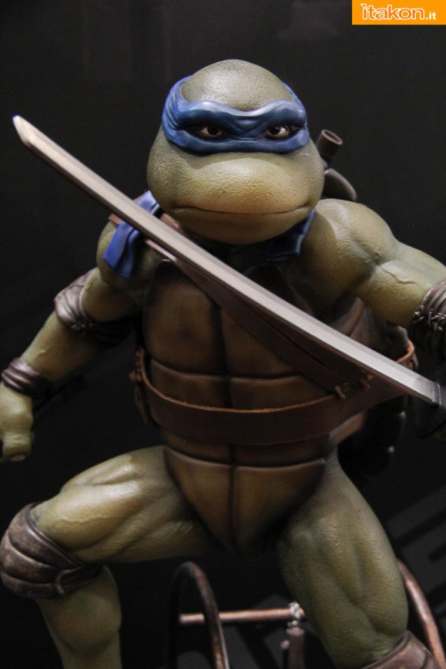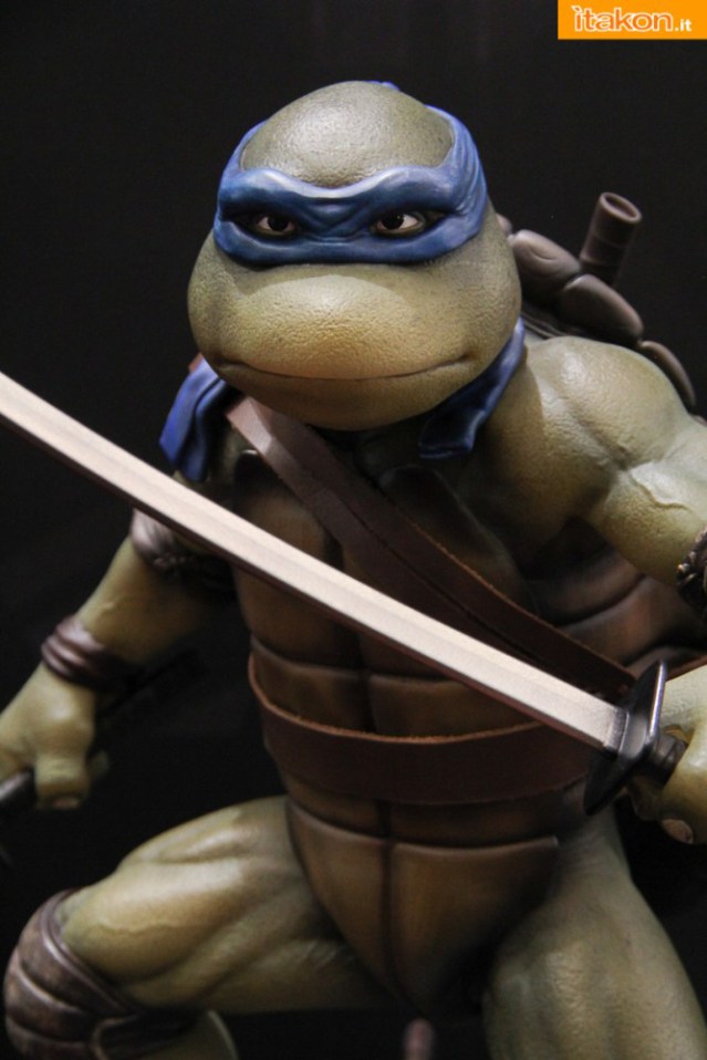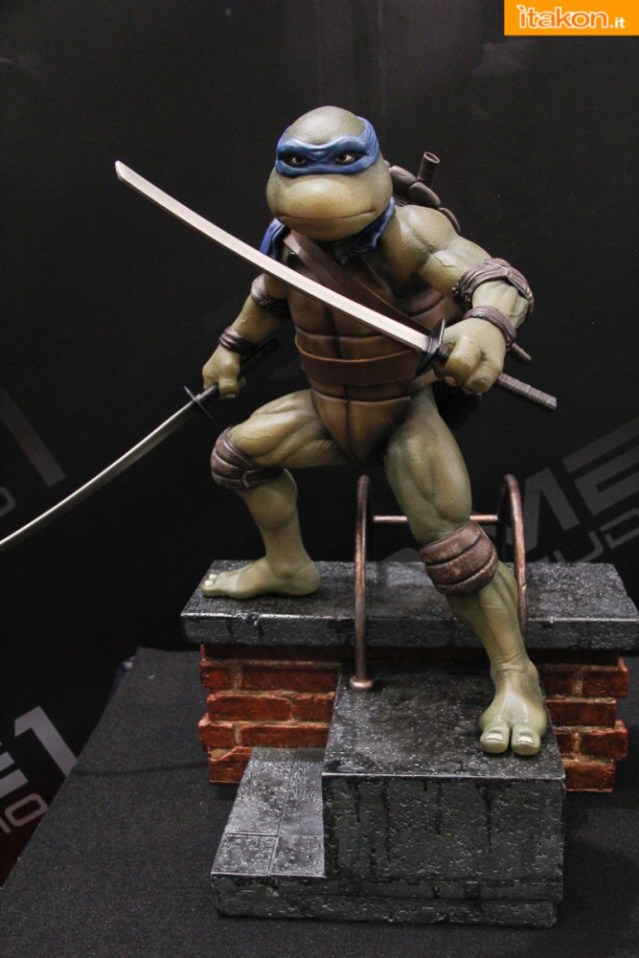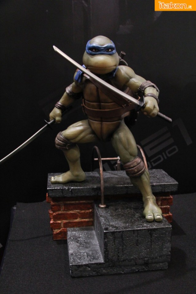 La statuette de Leonardo est l’une des quatre pièces créées par Prime 1 Studio à l’image des personnages du film Tortues Ninja de 1990. Réalisée en polystone transparent, elle mesure 52 cm de haut. Les socles des quatre pièces peuvent se connecter pour former un diorama.