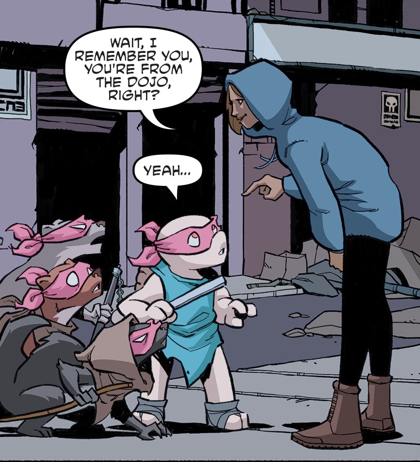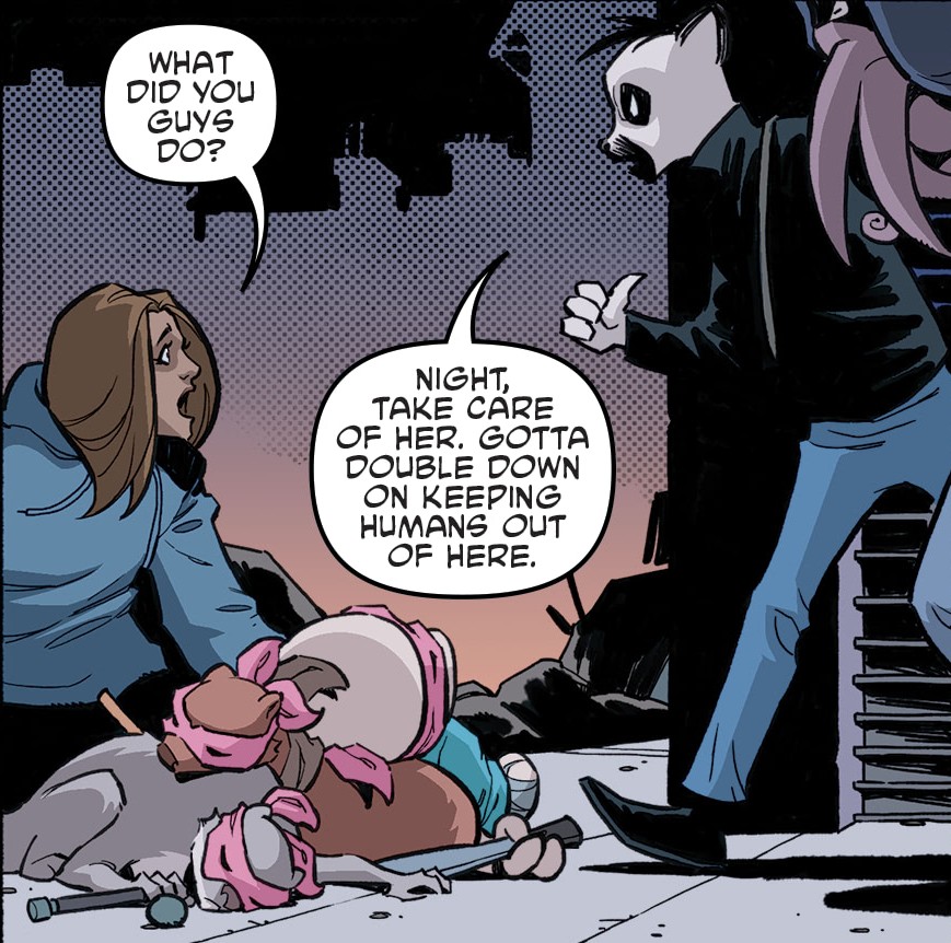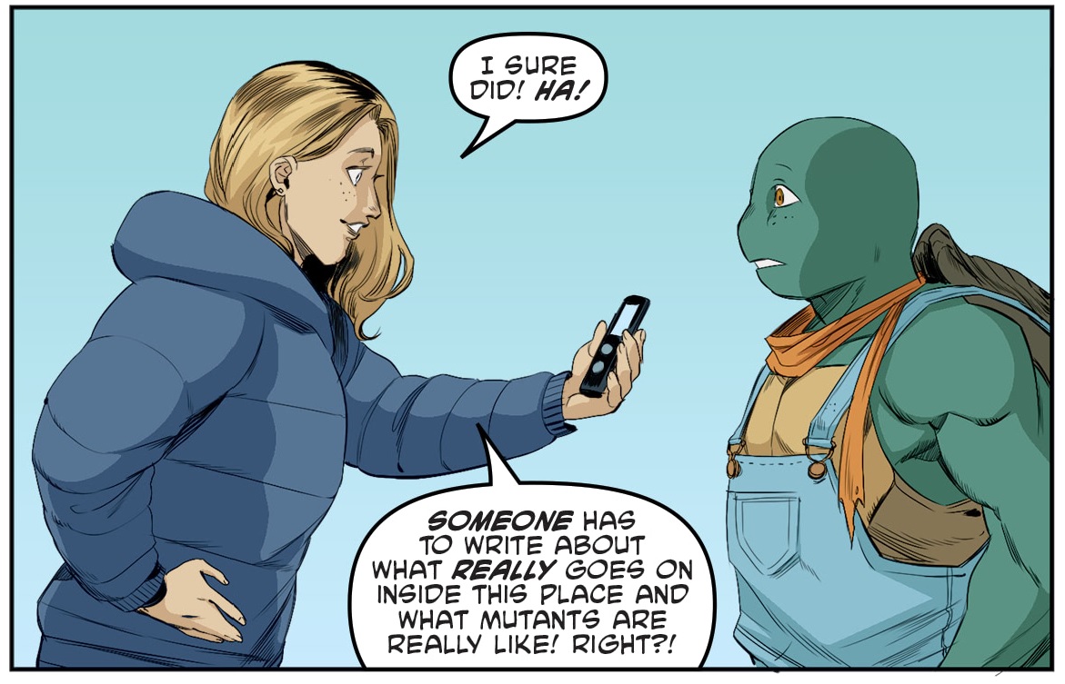 La jeune femme fut soignée. Avec l’éviction des Mutanimals, elle s’associa à April et Mona Lisa pour mettre en place un journal pour la ville (TMNT (Vol. 5) #122).
