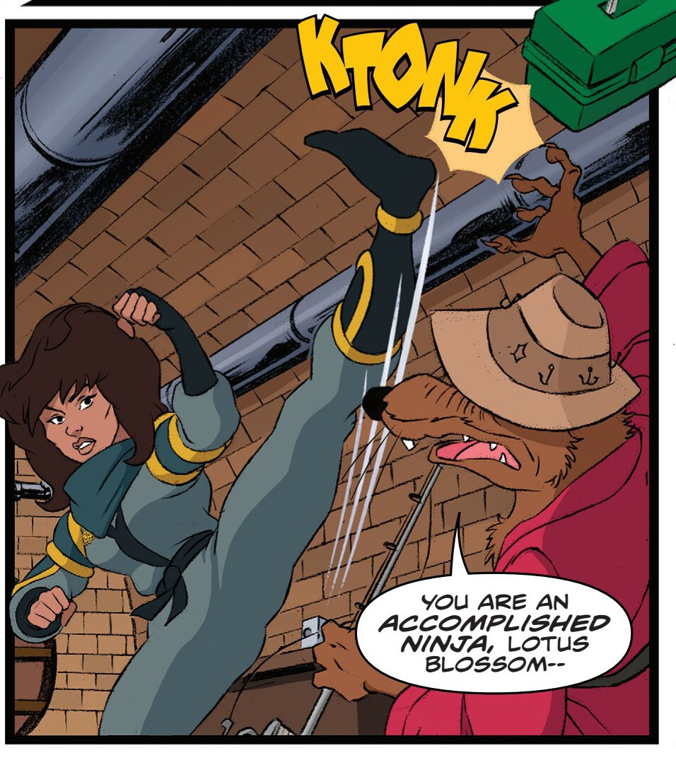 Lotus partit se battre contre les tortues mais Leonardo lui proposa plutôt de venir voir l’urne dans leur repaire. Elles la gardaient le temps que son propriétaire installe un système de surveillance. Splinter réalisait des recherches sur l’urne et lui assurait qu’elle ne pouvait pas être la descendante du clan de Chakahachi. La jeune femme ne se sentait pas à sa place dans ce siècle et regrettait d’être née 400 ans trop tard.