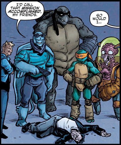 Lorsque Karai blessa grièvement la chunin de Splinter, les tortues découvrirent que la mafia avait trahi le Foot Clan pour se rallier à la jeune femme. Une trahison de plus, que le rat veilla à corriger. Il se rendit avec ses ninja d’élite dans le restaurant de Lupo, qui travaillait pour Puzorelli, et massacrèrent tous ses hommes. Lupo fut lui-même étranglé par Mongo, l’un des ninjas d’élite (TMNT (Vol. 5) #94).