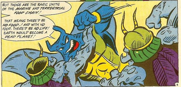 Ces créatures étaient extrêmement néfastes pour les planètes et étaient une arme de choix pour Maligna dans ses desseins de destruction des mondes. Lorsqu’ils dévoraient les forêts, ils supprimaient la capacité d’une planète non seulement de produire de l’oxygène, mais rejetaient à leur tour du dioxyde de carbone, entraînant un effet de serre, un réchauffement des planètes, et la destruction de toute espèce vivante, sur Terre et dans les eaux (Mighty Mutanimals Mini-series, part. 3).