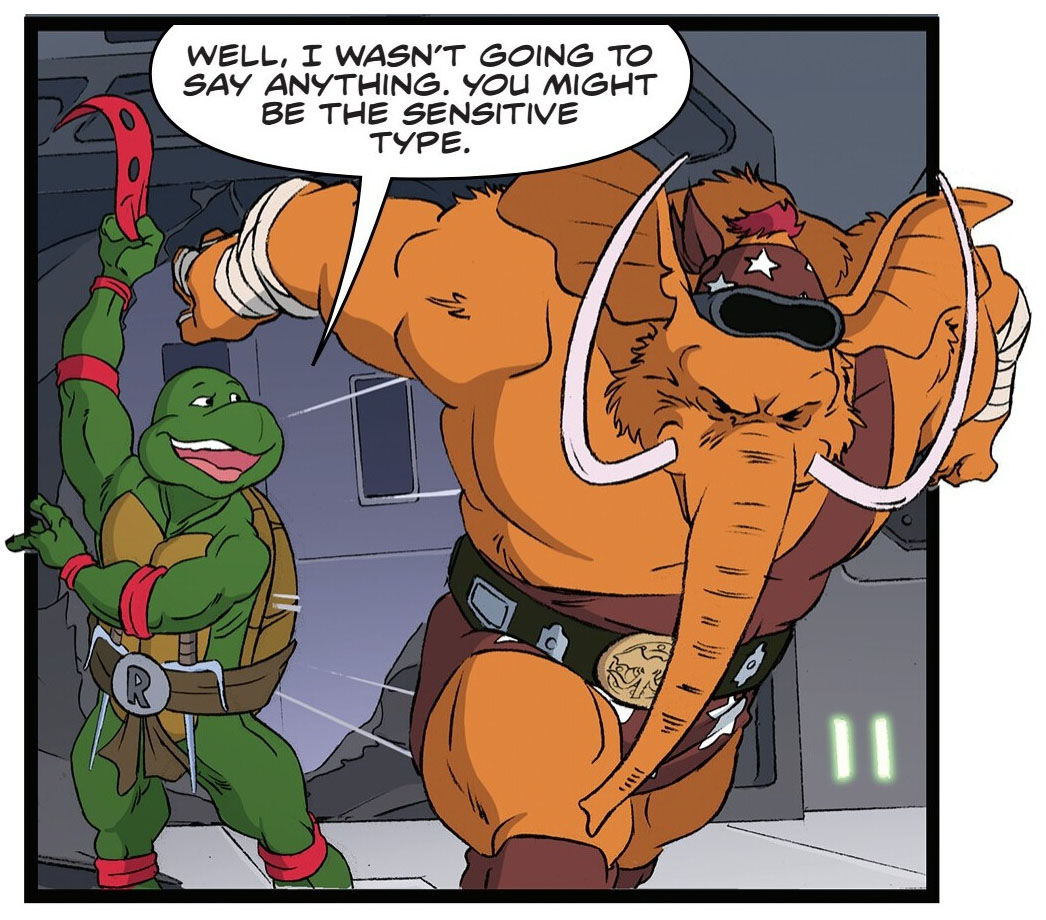 - Manmoth est inspiré du mammouth membre du Pantheon des comics principaux d’IDW Publishing, reprenant lui-même le mammouth mutant des TMNT Adventures.