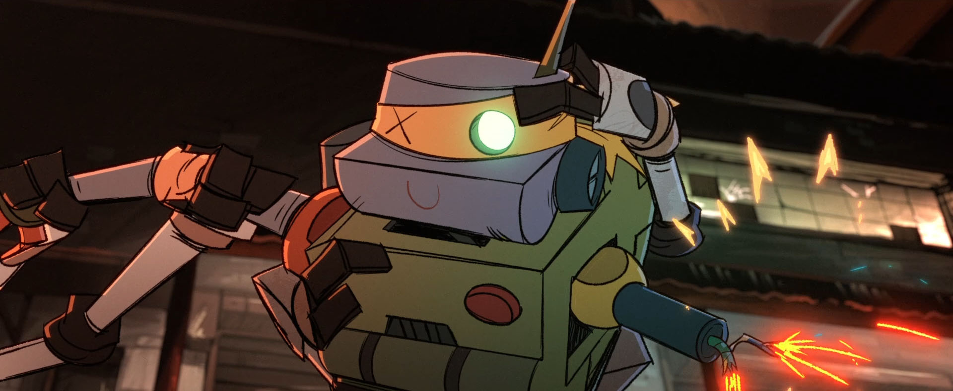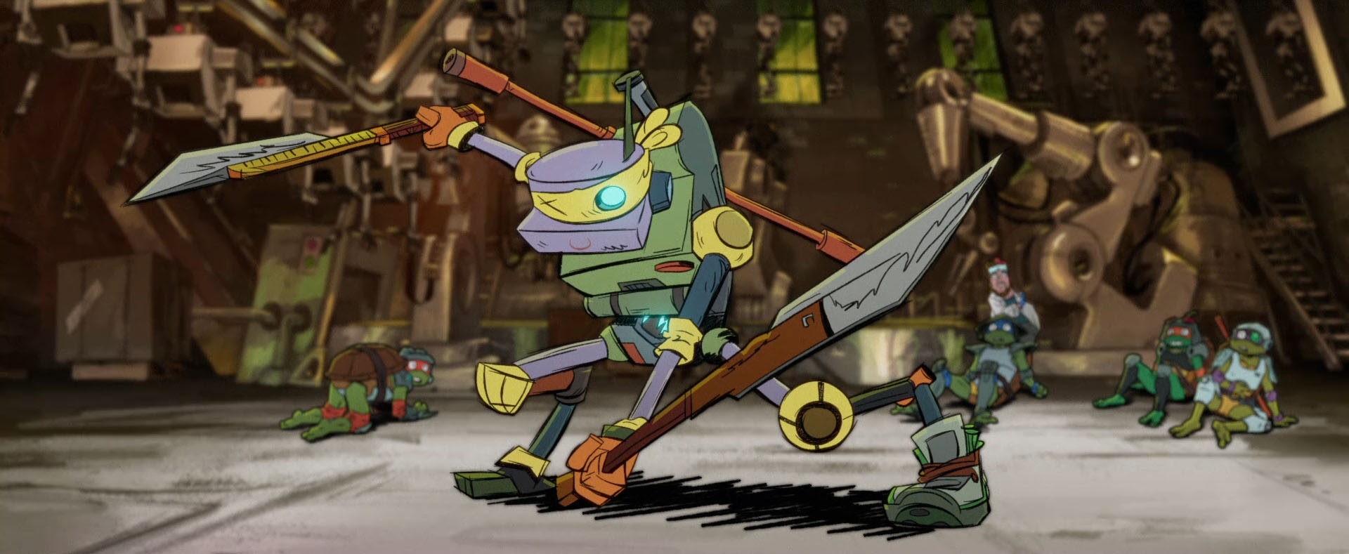 Donatello n’en avait pas terminé avec son petit robot. Il ne tenait plus à en faire une machine de combat mais un robot pratique. Seule la tête avait été conservée et montée sur un corps ressemblant à une araignée. Il devait être en mesure d’apporter des objets du quotidien et se rendre utile. Il avait inscrit sa création à un tournoi avec ses amis Ian et Irma.