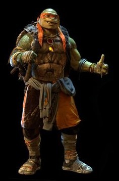 Comme ses frères et Splinter, Michelangelo avait reçu de très nombreuses injections d’un agent mutagène, destiné initialement à pouvoir guérir n’importe quelle maladie. Ce produit a petit à petit commencé à lui conférer une force étonnante. Une fois dans les égouts, Michelangelo et ses semblables se transformaient en mutants humanoïdes.