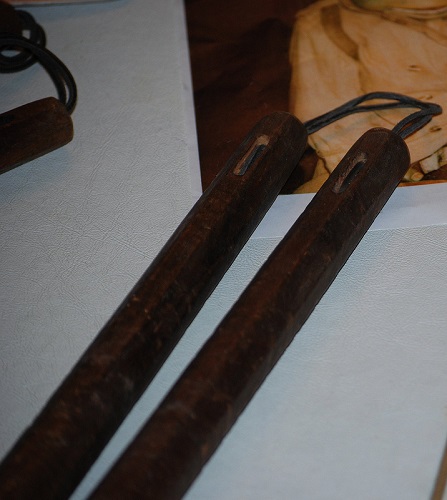 Armes : Paire de nunchakus.
