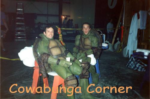 - On apprend dans le livre de Kenn Scott que chaque tortue avait un cascadeur d’origine hongkongaise. Ne parlant pas l’anglais, ils avaient un interprète du nom de Brandy, qui travaillait avec le coordinateur des cascades Pat Johnson. L’homme avait réalisé lui-même certaines cascades, incarnant par exemple Donatello sur son skateboard lors du combat dans les égouts en fin de film. Pour faciliter leur intégration, les acteurs asiatiques avaient reçus une américanisation de leur nom. Ou du moins ce qui pouvait se rapprocher de leur nom d’origine. Ainsi, celui qui prit le rôle de Michaelangelo fut nommé « Wil ».