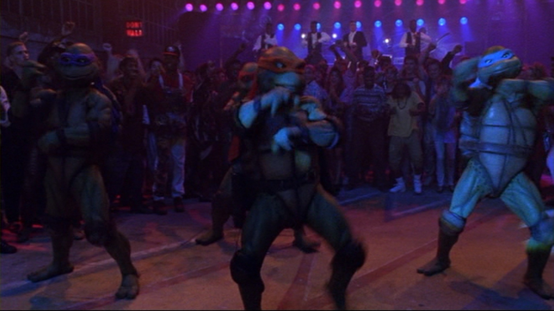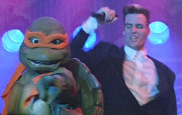 Au cours du combat final, Michaelangelo se montra très à l’aise dans la foule de la boîte de nuit, dansant sur scène et avec le public sur le rythme de Vanilla Ice.