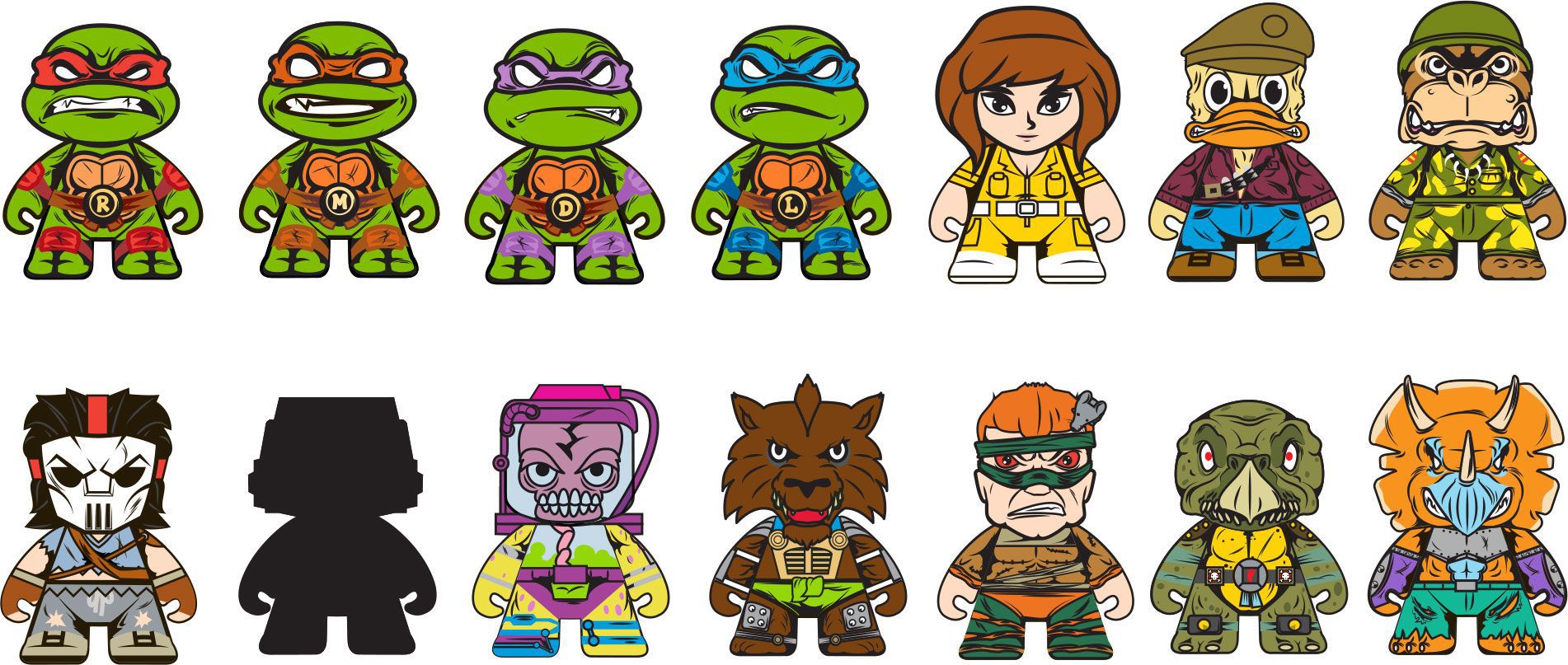 Ce sont des figurines d’environ 6,5 centimètres de haut. Elles sortirent au cours de l’année 2014 puis en 2016. Composée de 10 personnages, cette première gamme représente les personnages principaux de la série animée de 1988. La seconde série voulut en faire de même deux ans plus tard avec quatorze personnages, dont les très rares Tokka et Rahzar. A noter la présence d’une figurine « inconnue », Metalhead.