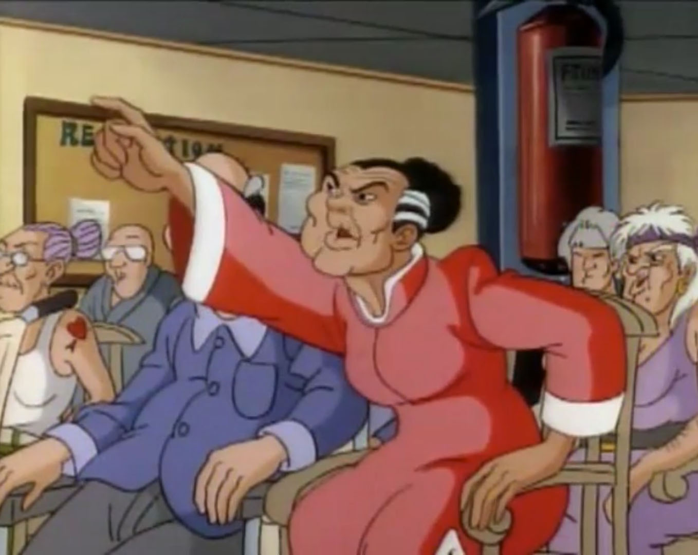 Tyrannique, elle coulait de vieux jours dans sa maison de retraite, ou plutôt une maison de détention. Un jour, elle vit son fils à la télévision. Il donnait un ultimatum à la Terre avant de la détruire. La vieille dame quitta le lieu en neutralisant les gardiens et retrouva son fils à New York. Elle l’humilia devant des politiciens venus négocier.