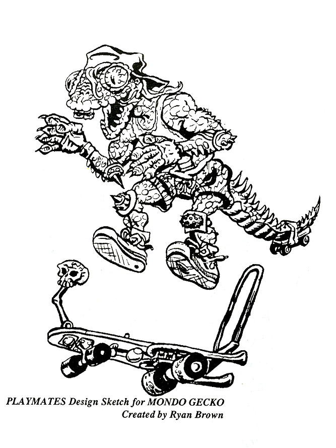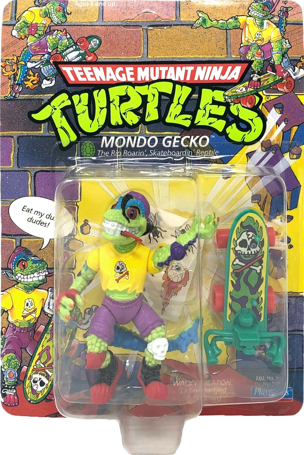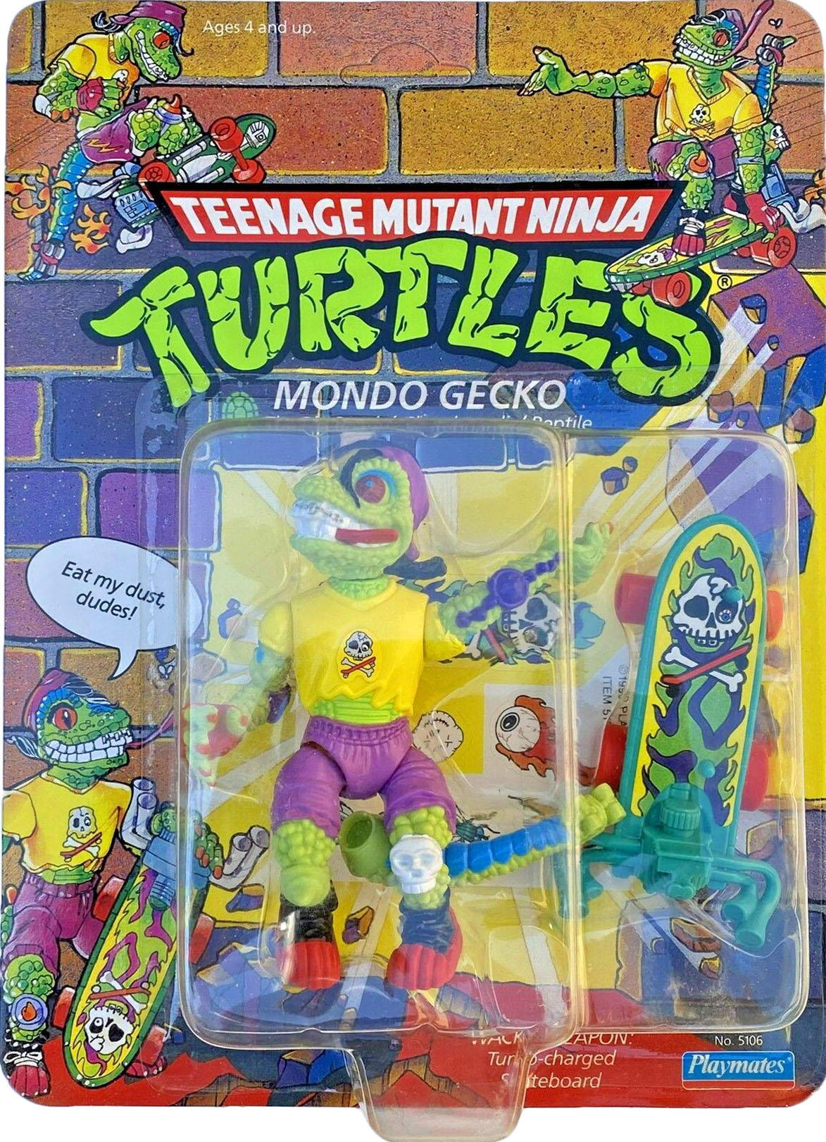 Le personnage de Mondo Gecko a été créé par l’artiste Ryan Brown, à l’origine de nombreux personnages très connus du monde des Tortues Ninja, comme Leatherhead ou encore Man Ray / Ray Fillet. Le lézard est apparu pour la première fois à travers cette figurine, au deuxième trimestre 1990, avant d’arriver dans les comics avec le TMNT A. #18.
