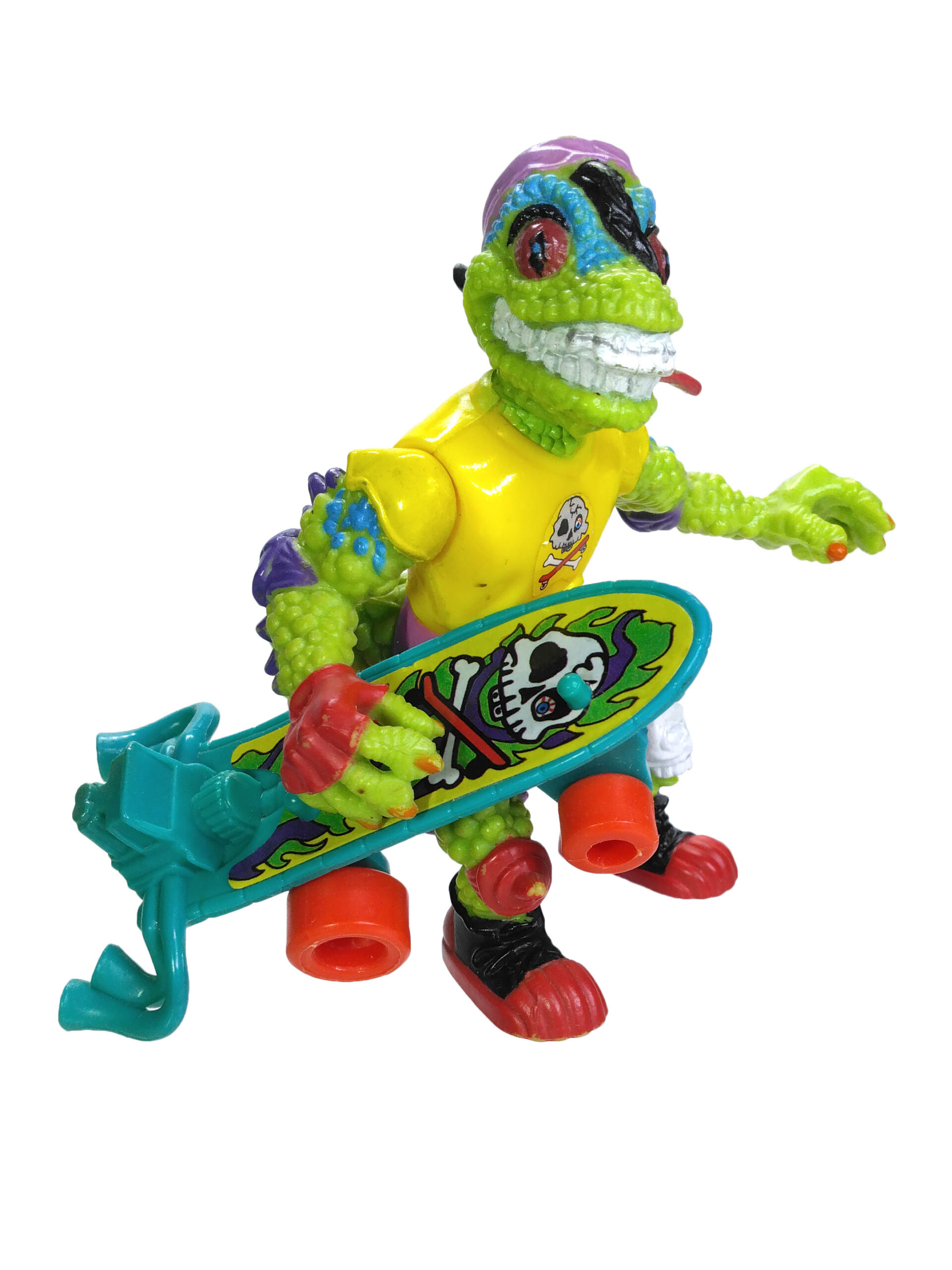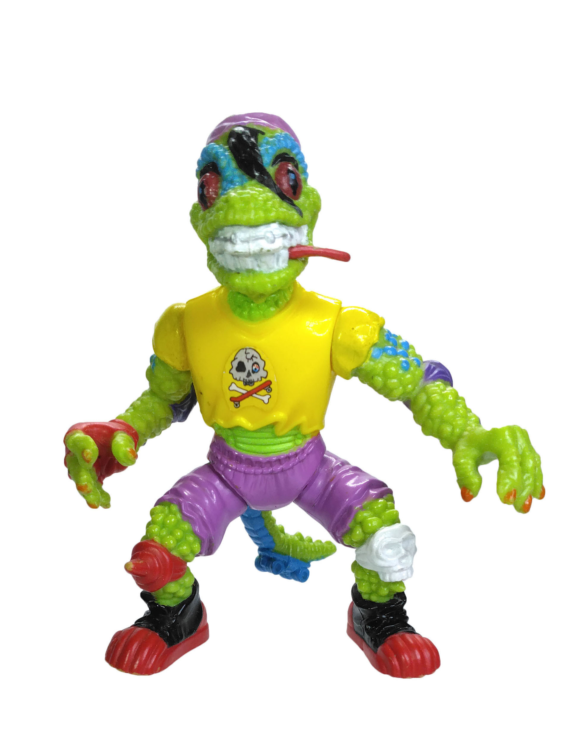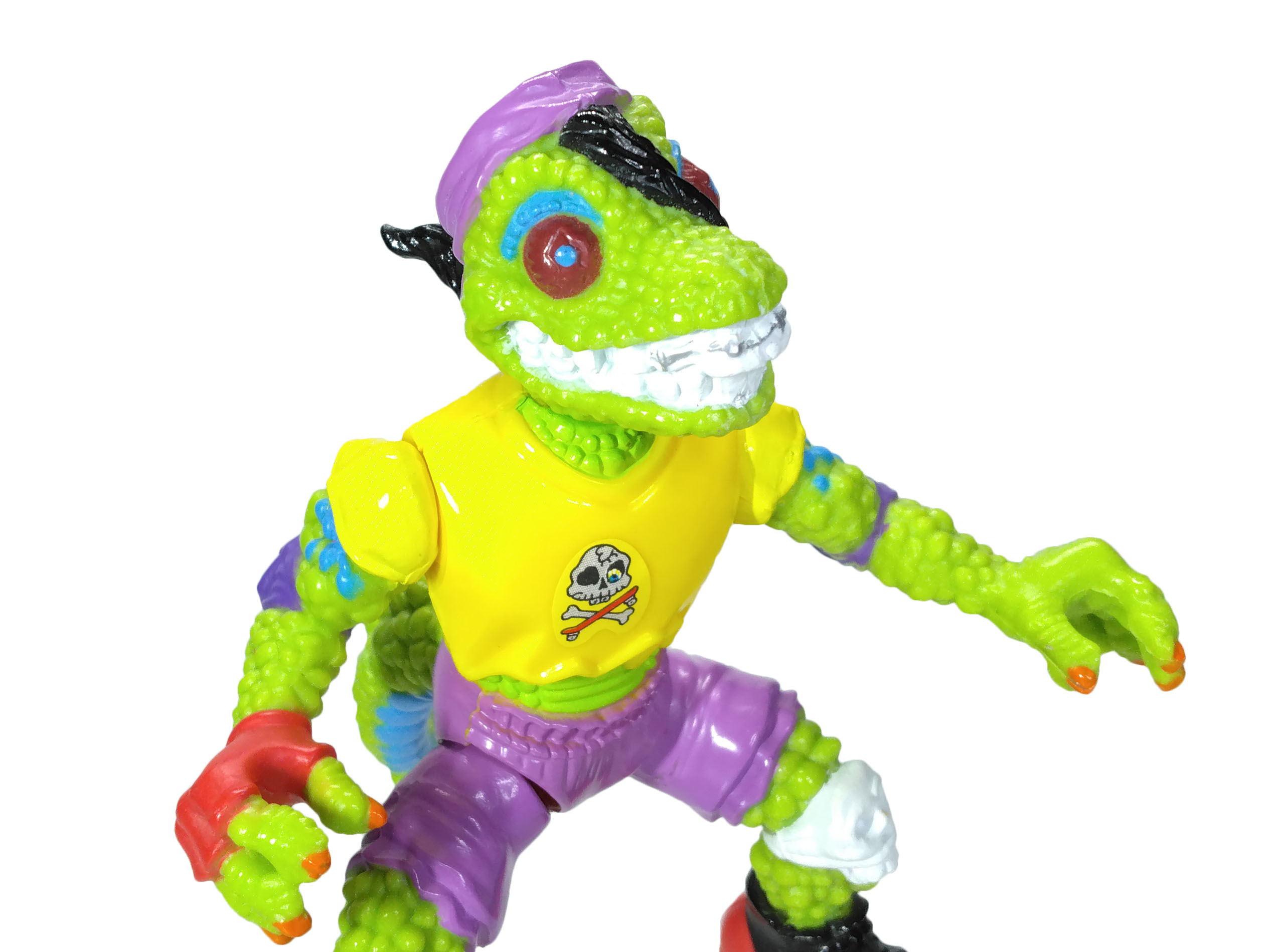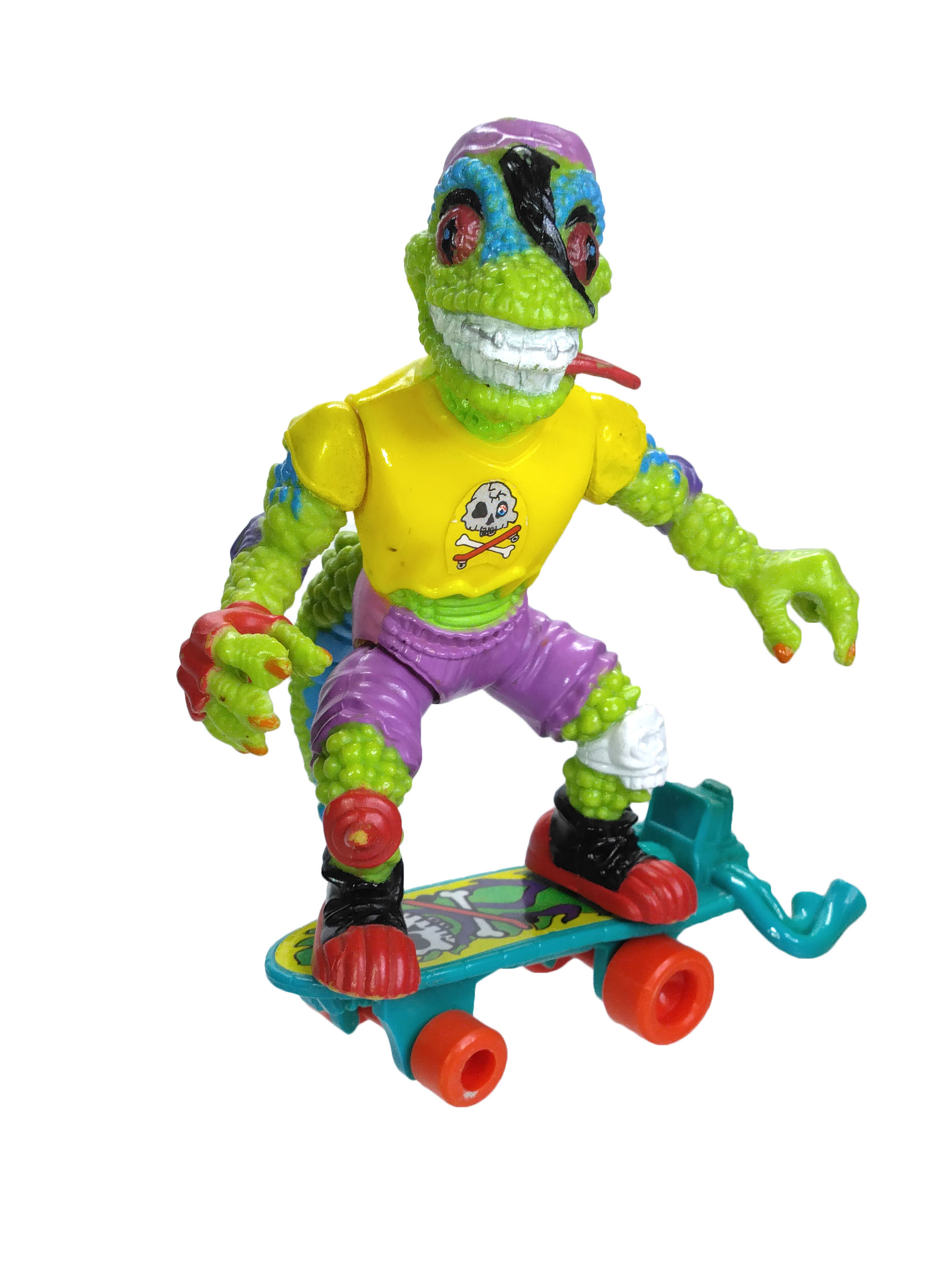 A loner. A lizard. A skatemaster. Mutated from a head-banging, thrash-metal, teenage guitarist, Mondo Gecko is the coolest lizard to surf the concrete jungle. Known to his cold-blooded boardin’ brethren as « The Mon, » Mondo Gecko likes to skate the sewers and grease the grind. This maximum maniac grooves on shining the curbside and puts fun and freedom ahead of everything else. He’s always stoked and lookin’ for a new adventure. So when the Turtles need some extra help, Mondo’s ready to skate, rattle and roll.