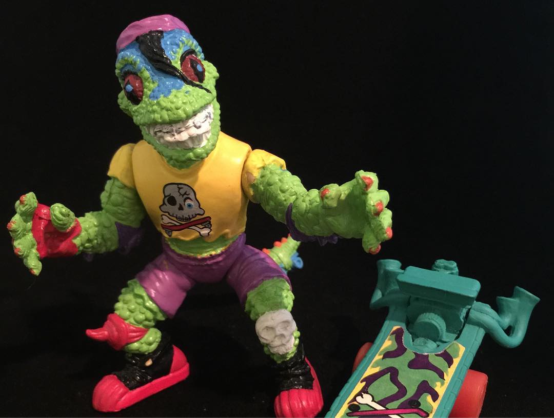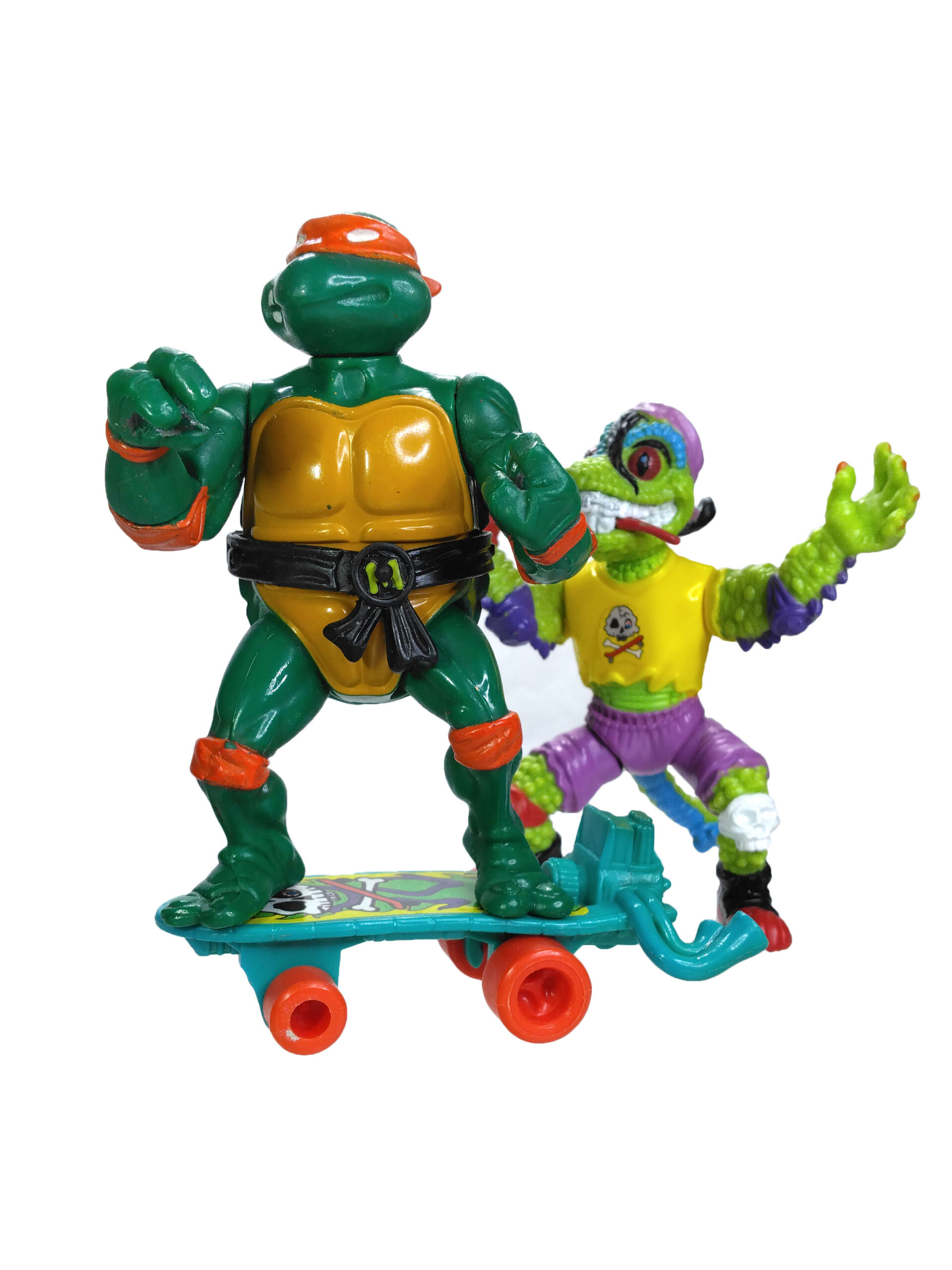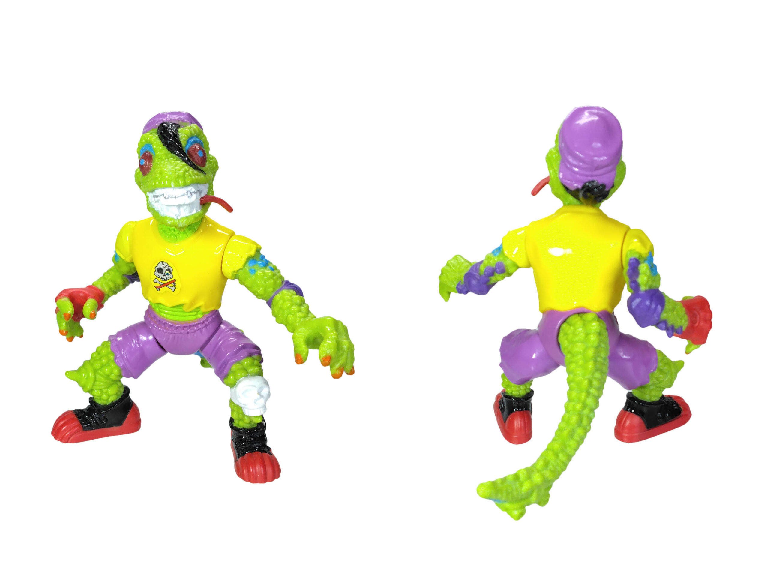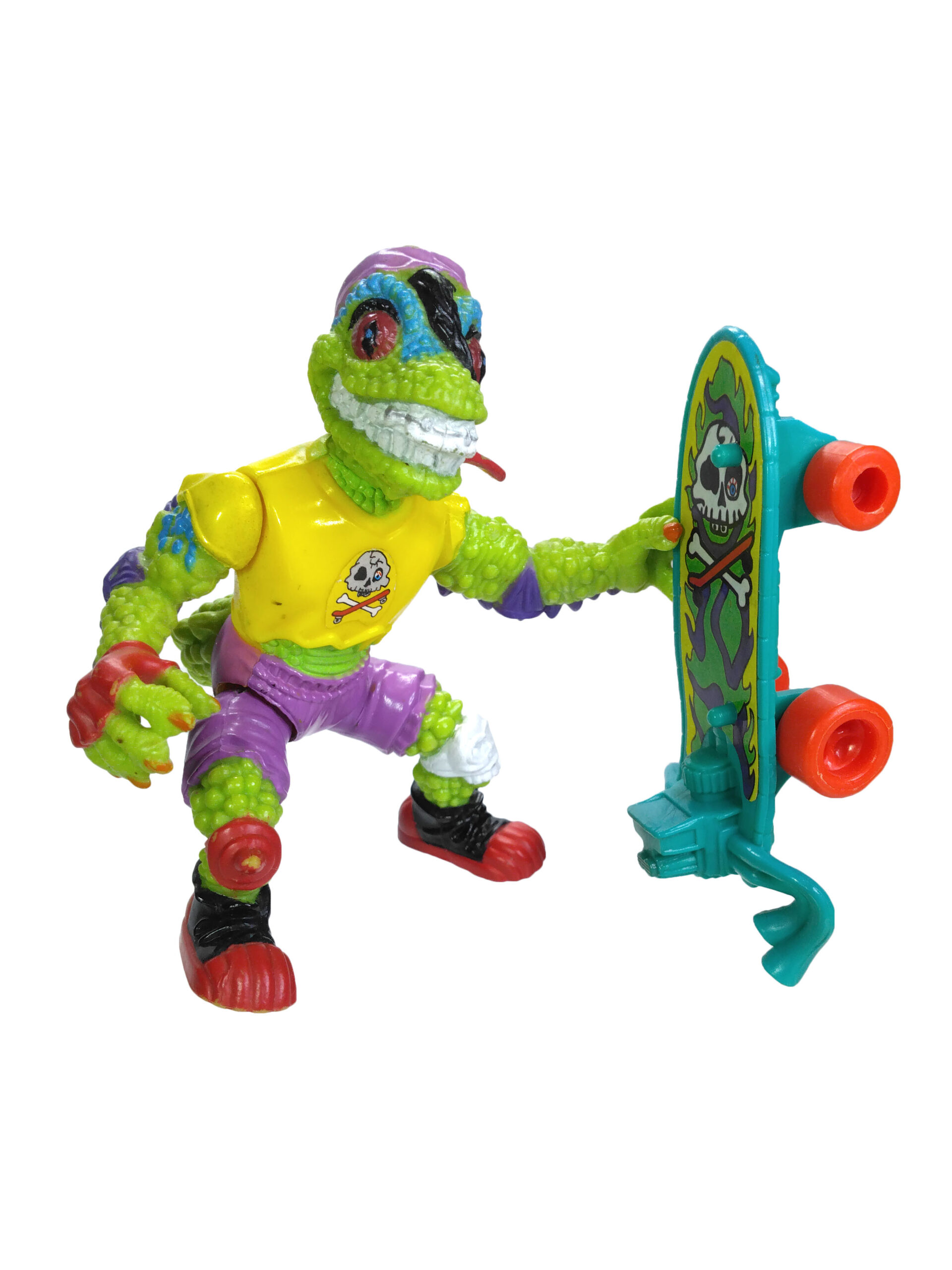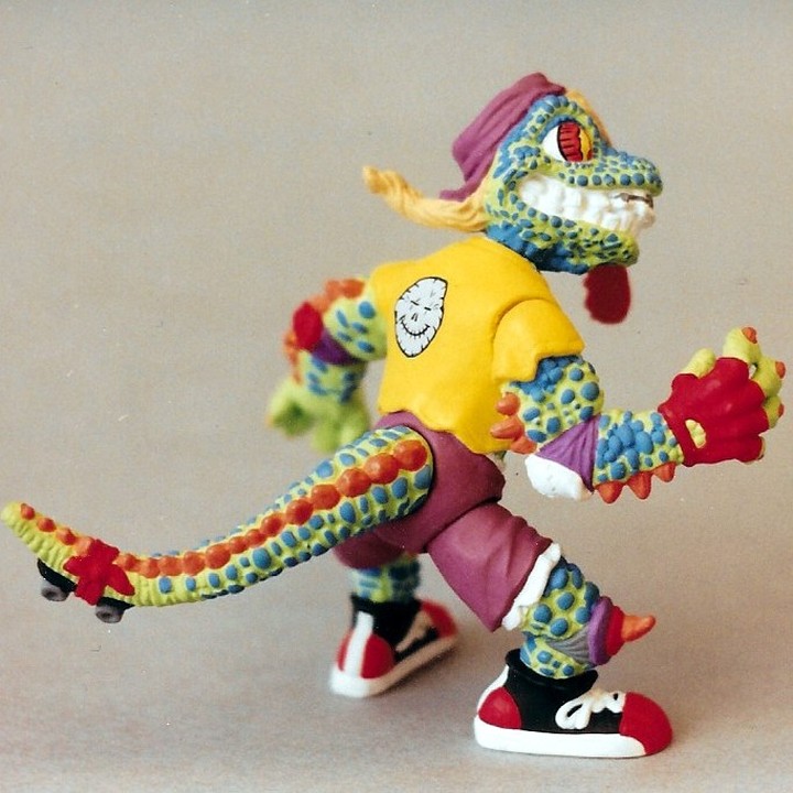 A loner. A lizard. A skatemaster. Mutated from a head-banging, thrash-metal, teenage guitarist, Mondo Gecko is the coolest lizard to surf the concrete jungle. Known to his cold-blooded boardin’ brethren as « The Mon, » Mondo Gecko likes to skate the sewers and grease the grind. This maximum maniac grooves on shining the curbside and puts fun and freedom ahead of everything else. He’s always stoked and lookin’ for a new adventure. So when the Turtles need some extra help, Mondo’s ready to skate, rattle and roll.