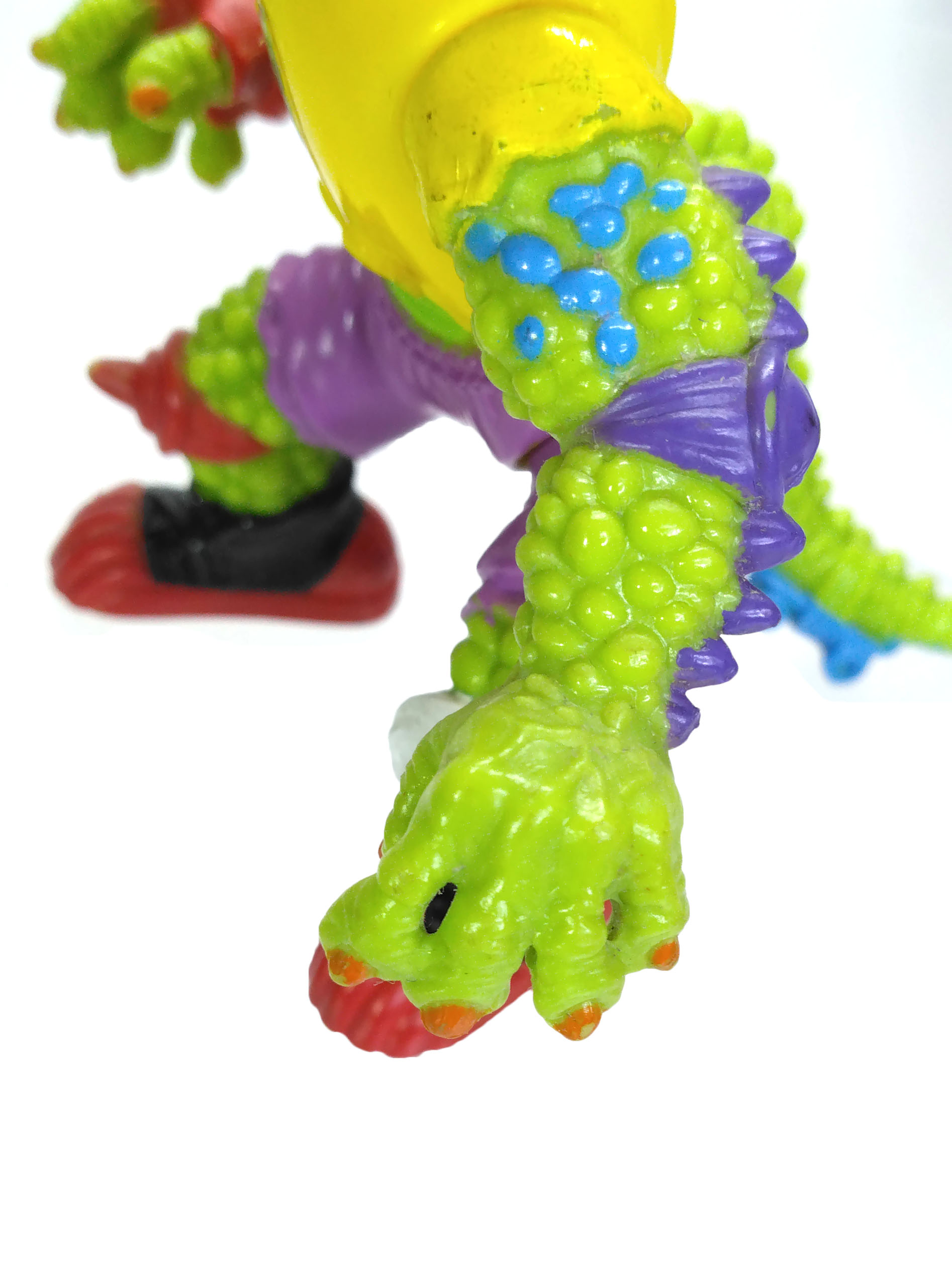 Les figures suivantes nous montrent le modèle hardcopy utilisé pour les photographies de catalogues et présente lors du Toy Fair de New York, début 1990. Les couleurs sont bien plus sobres, et proches de la version finale. Dans le catalogue de Playmates Toys de cette année, la langue de Gecko est absente. Il ne serait pas impossible qu’elle ait été initialement pensée comme amovible. En réalité, il s’agit d’une pièce de plastique solidement collée entre les dents. Plus facile à mouler pour conserver les détails.