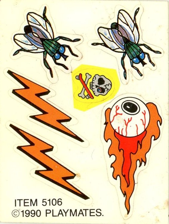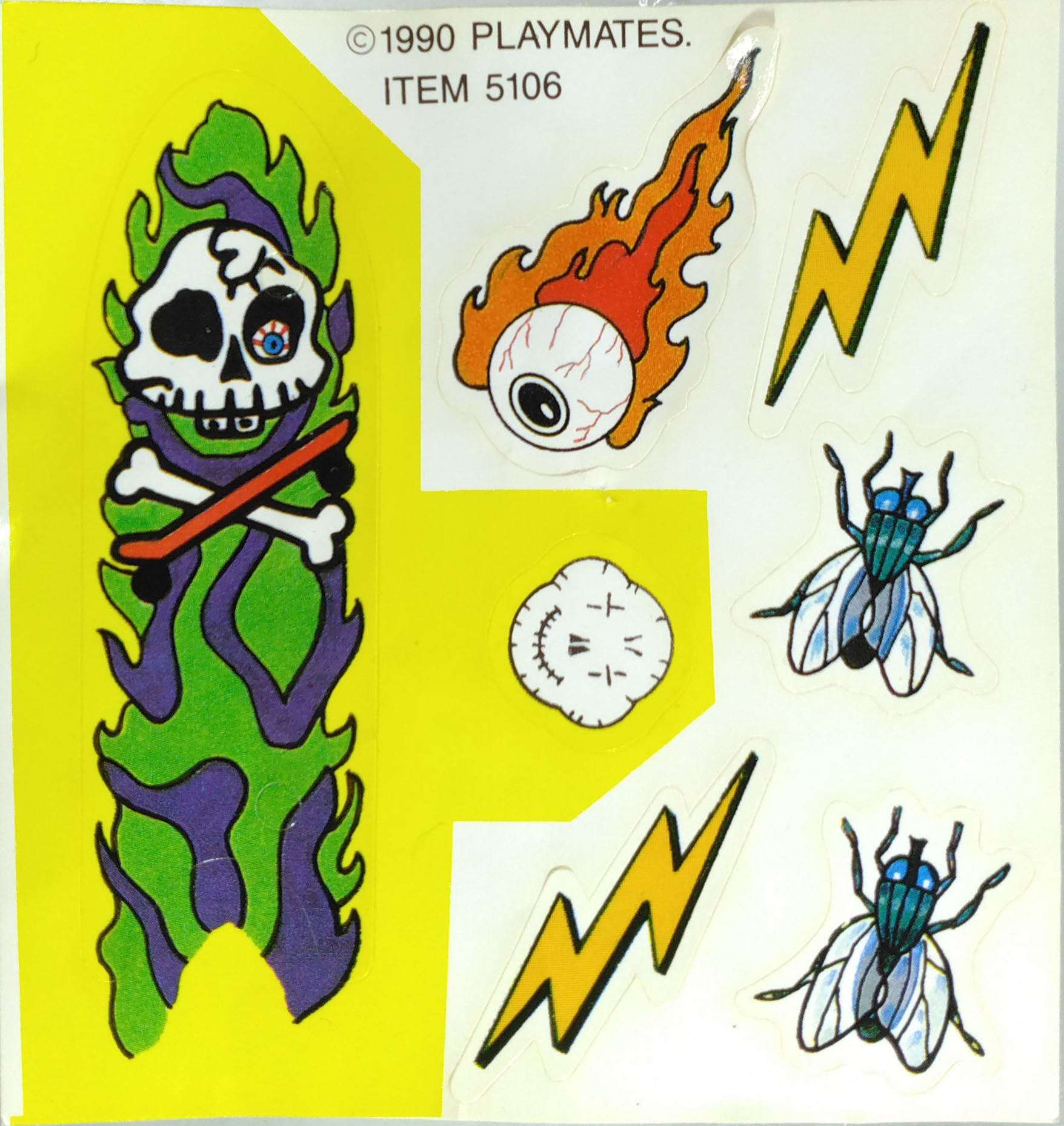 La planche la plus courante propose une tête de mort à coller sur la poitrine, deux éclairs, deux mouches et un œil enflammé. Ces dernières figures sont peu utilisées par les enfants car elles ne correspondent pas à ce qui était visible sur les illustrations du blister ou des publicités. Elle accompagnait les rééditions de la figurine.