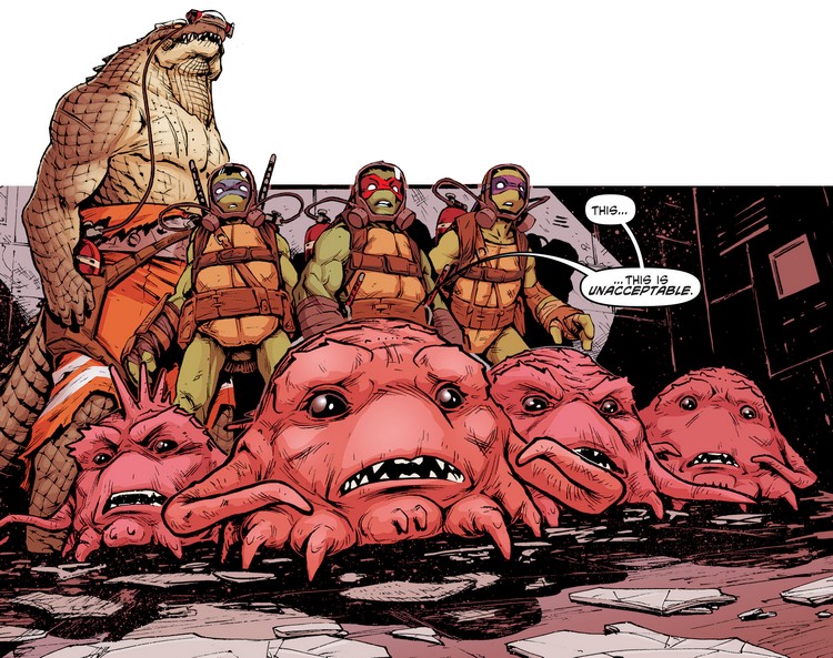 Lorsque Leatherhead attaqua de nouveau les utroms, il fut chargé avec le lieutenant Kleve d’évacuer le Technodrome avec ses semblables tandis que les tortues essayaient de neutraliser l’alligator (TMNT #58).