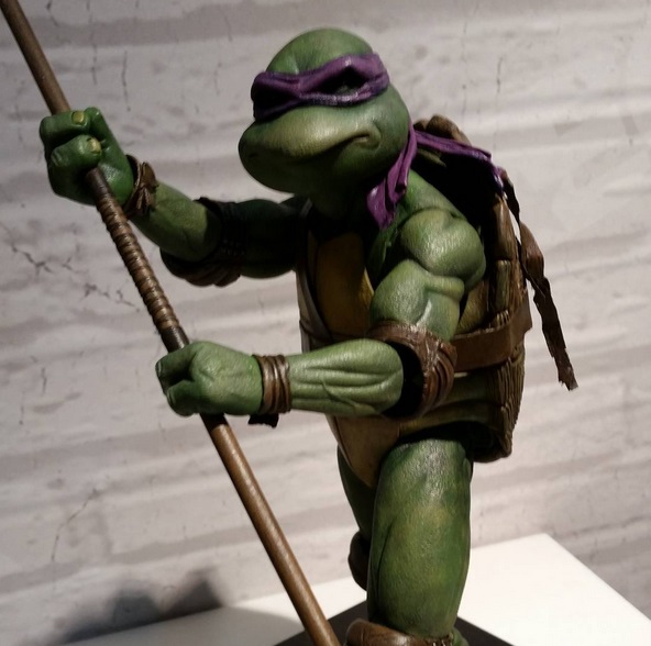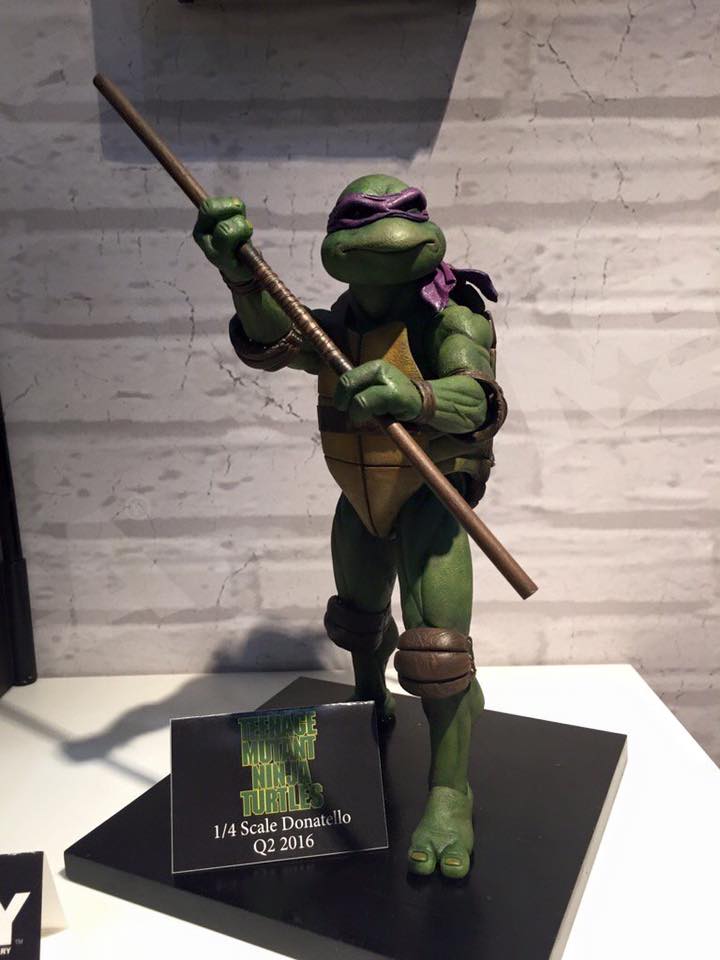 La date de sortie de cette figurine a été longtemps soumise à des retards. En février 2016, elle était annoncée pour juin ou juillet de la même année. Par la suite, NECA préféra reculer la date à plusieurs reprises. Les quatre tortues ont été présentées au cours du San Diego Comic Con 2016. Après des annonces non-officielles pour octobre puis novembre 2016, ce fut le 12 décembre que Donatello vit le jour. NECA s’est assuré de pouvoir garantir l’arrivée de la tortue sous le sapin pour tous ses clients, à condition que la figurine soit achetée directement chez eux.