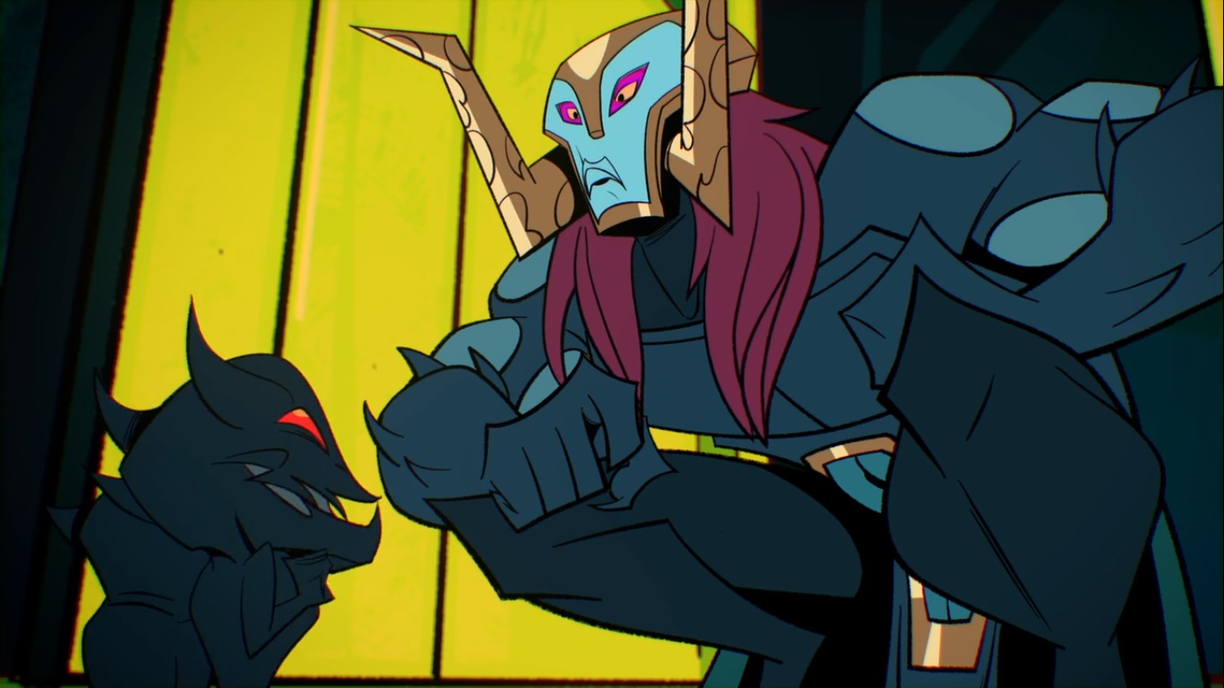 Par la suite, Huginn et Muninn informèrent Draxum que Big Mama avait capturé une grande partie de ses oozequitoes pour créer des mutants qui se battraient dans son Battle Nexus (SOS moustiques, S1 E12). S’ils étaient de fidèles serviteurs, cela n’empêcha pas le yokai de se débarrasser d’eux après avoir revêtu l’armure de Shredder (Le grand final, S1 E46).