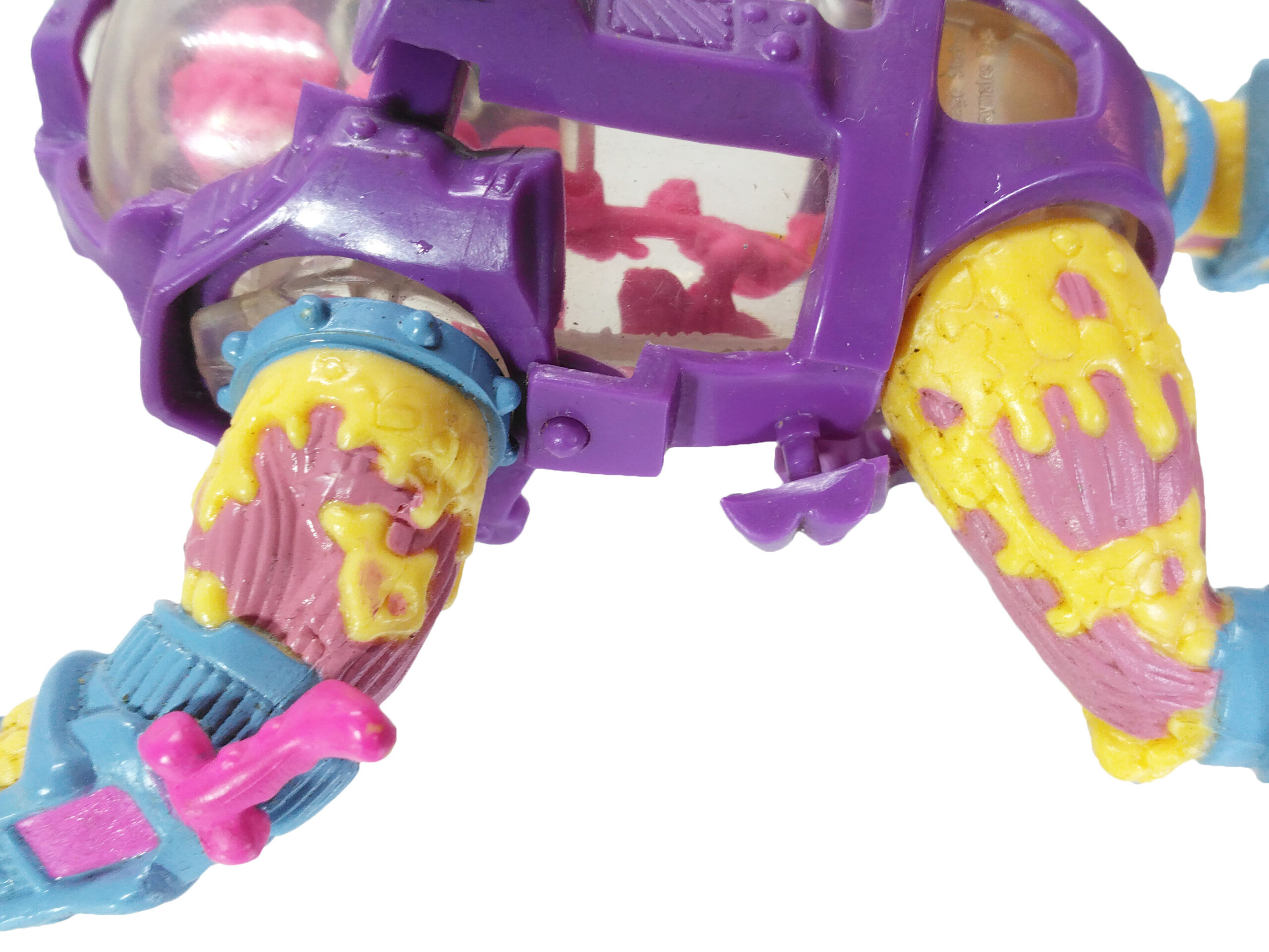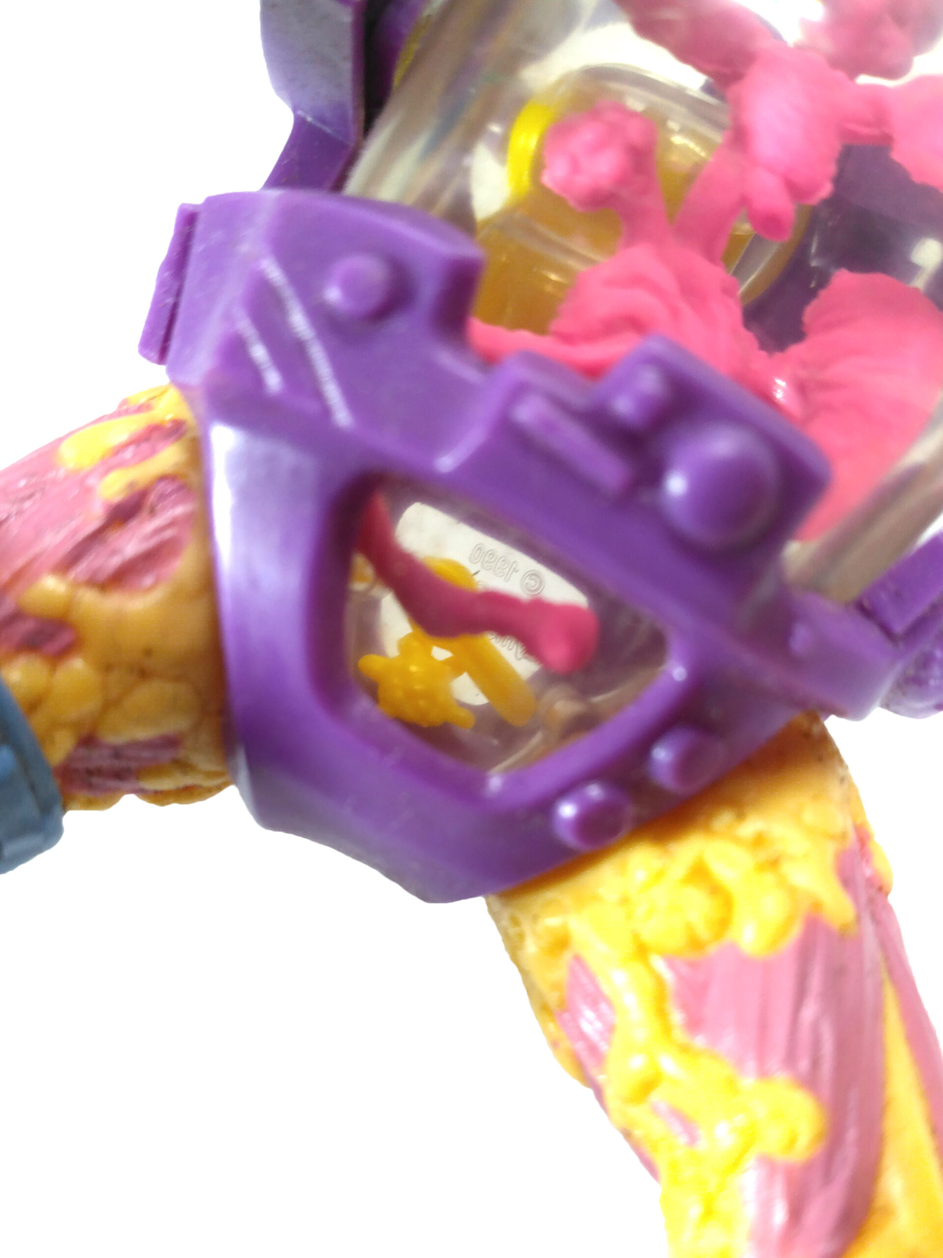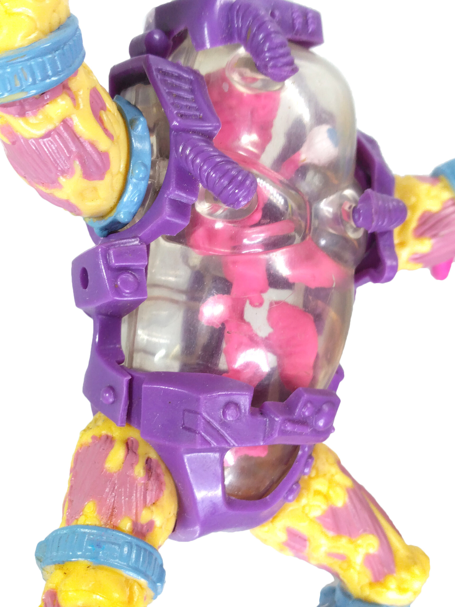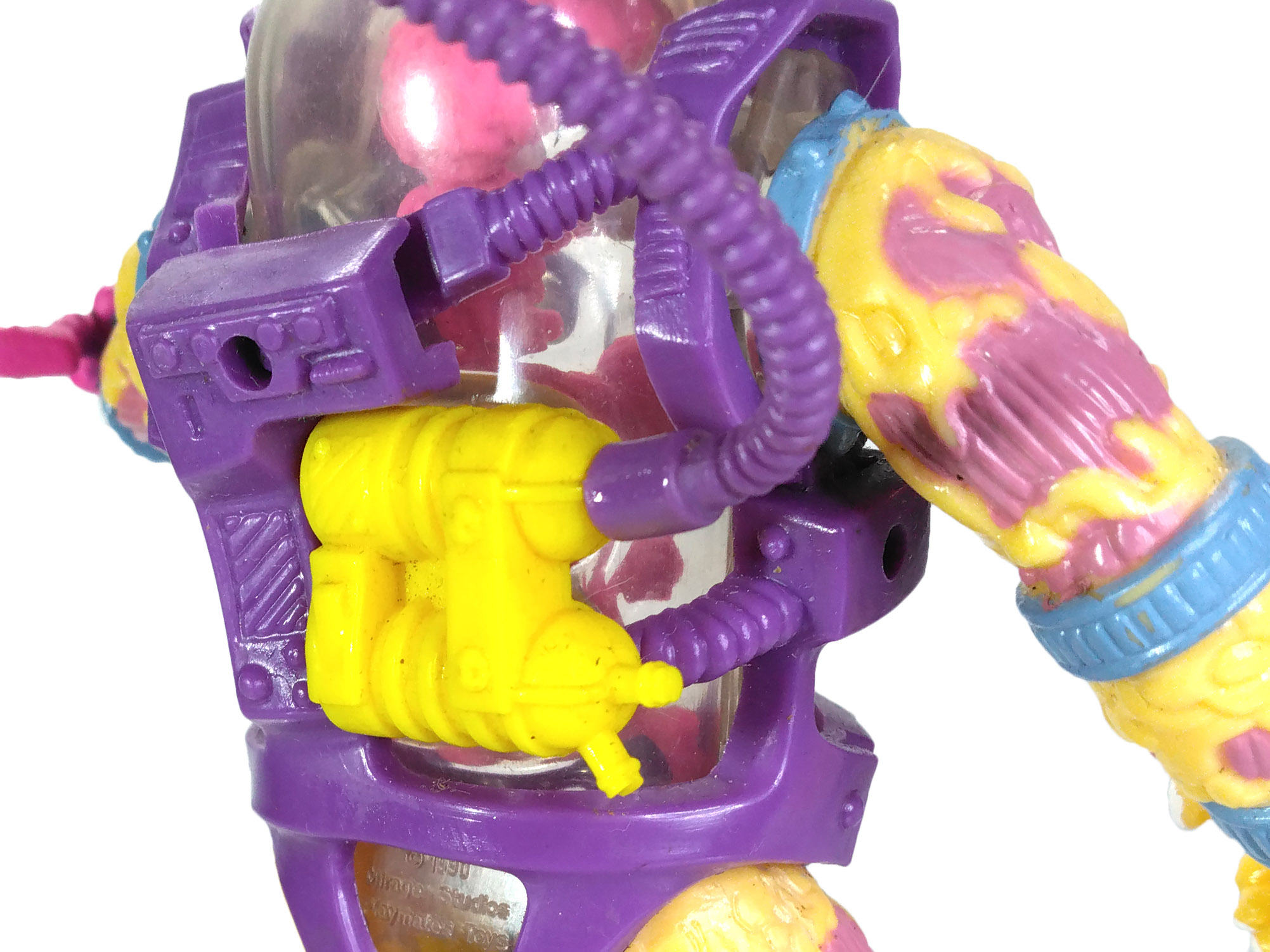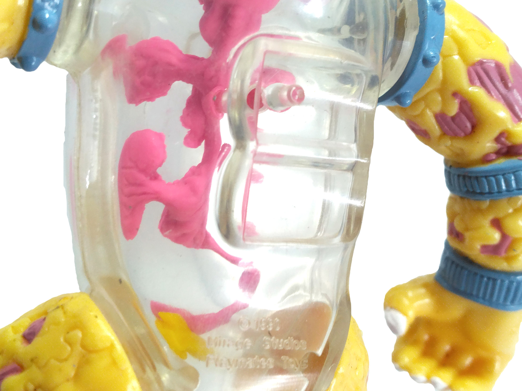 Cette figurine est extrêmement fragile par sa nature. L’idée de Playmates Toys était de pouvoir remplir son réservoir de mutagène. Attention toutefois, car le plastique transparent est moins résistant que le plastique classique qui compose les figurines. Il a tendance à ternir voire devenir totalement opaque au soleil.