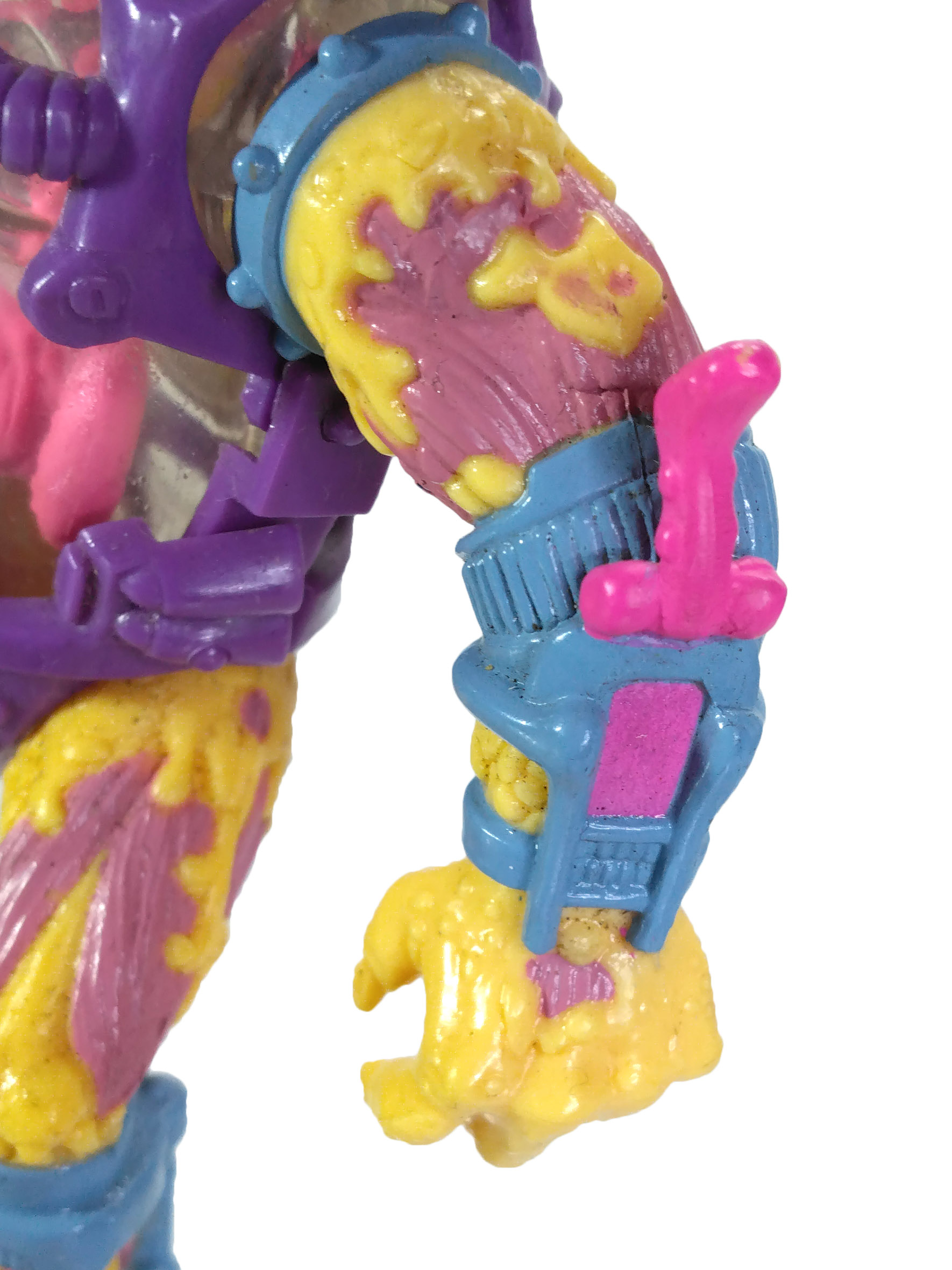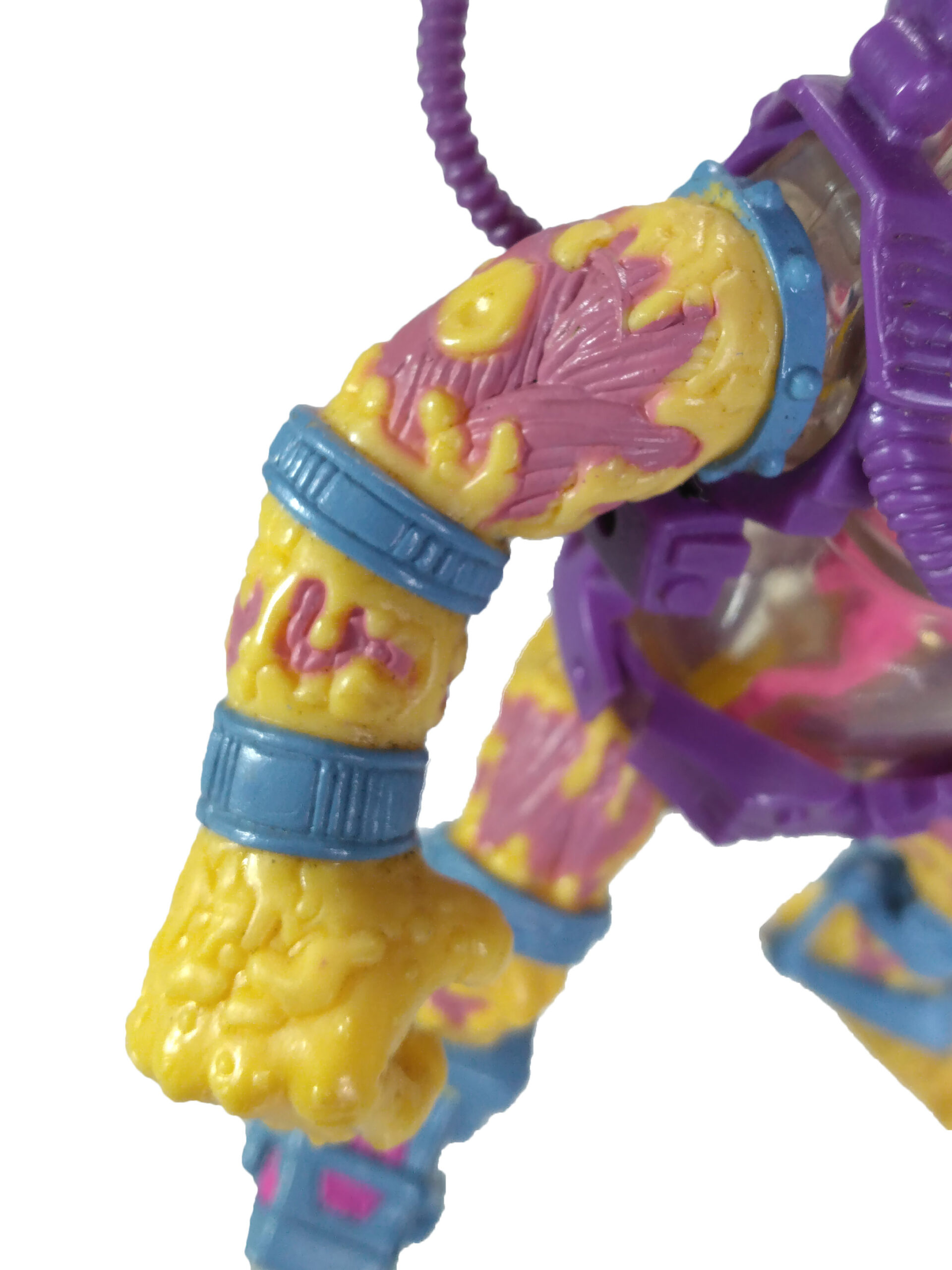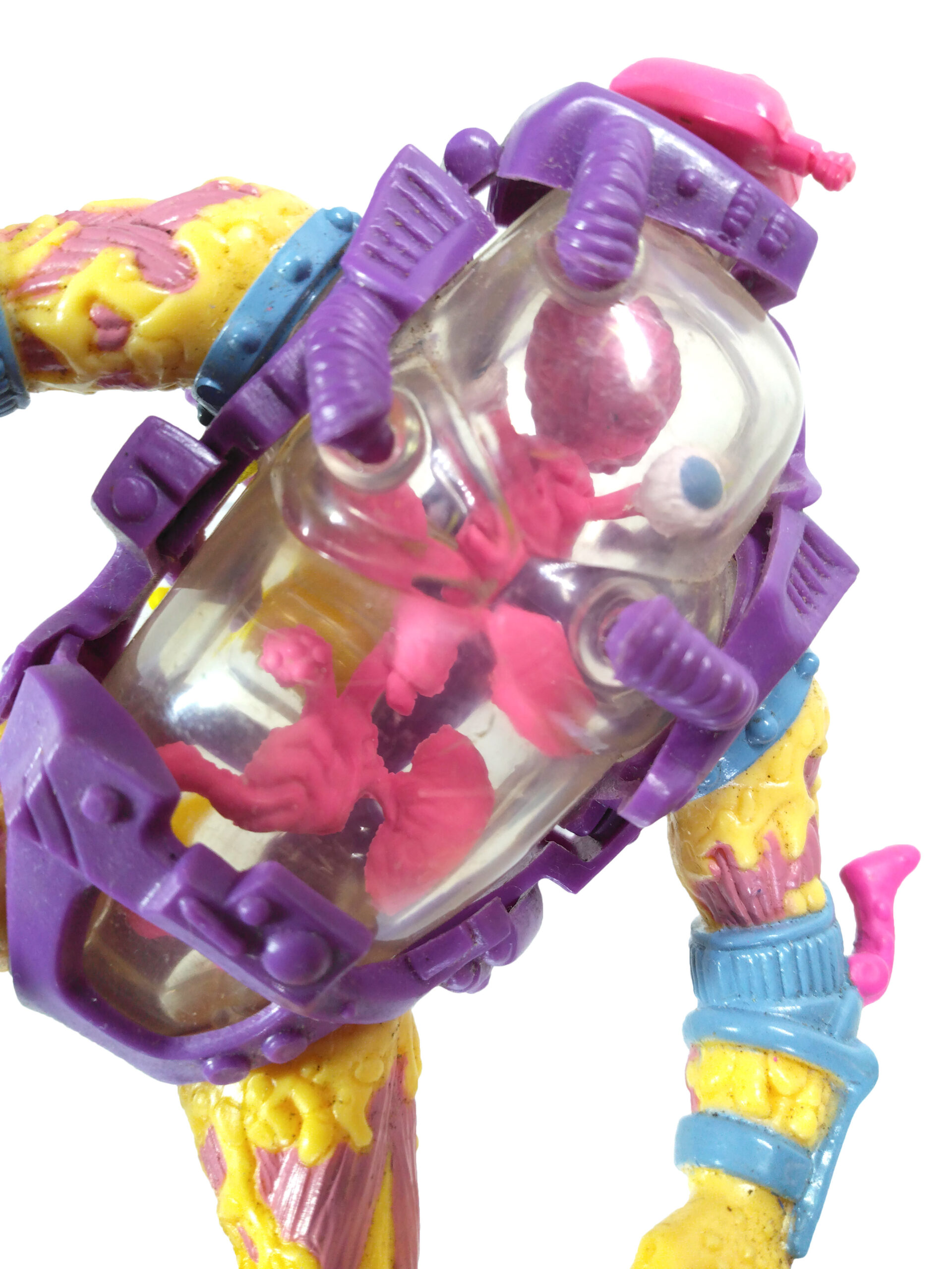 Son bocal en plastique permet de voir un corps en décomposition. Ses membres suintent la putréfaction. Ses accessoires, assez minimes mais nombreux, rajoutent un plus au caractère peu ragoutant de ce personnage très rare dans l’univers étendu des Tortues Ninja.