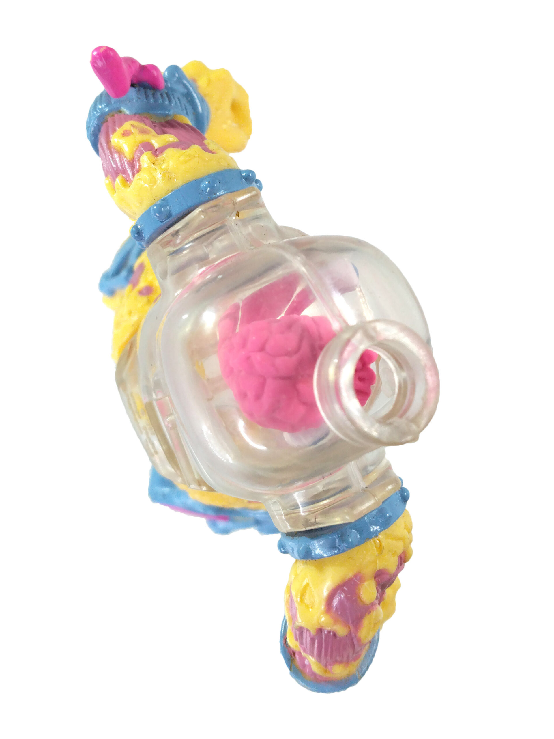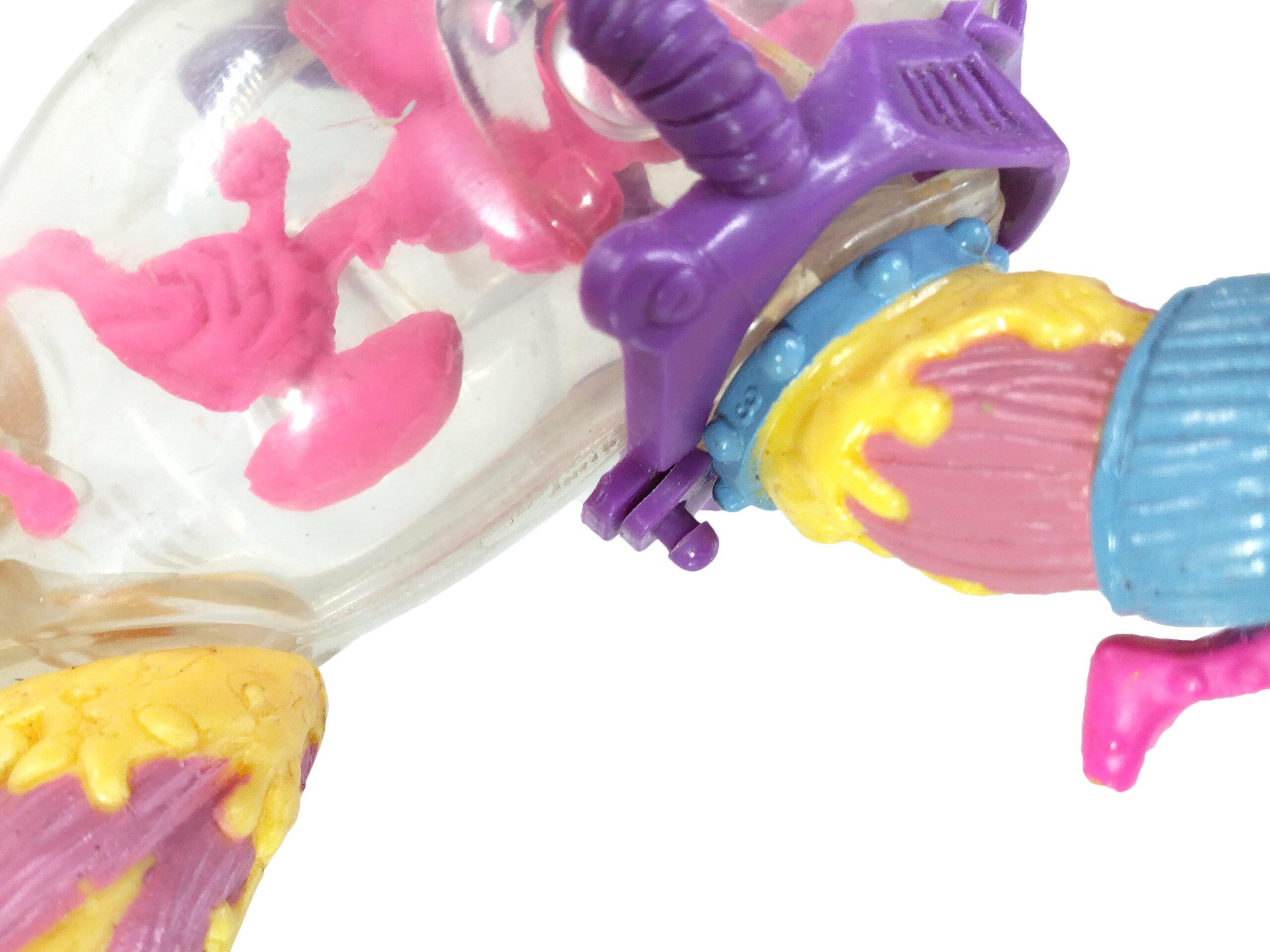 Toutefois, sa conception très singulière rend ce personnage fragile, surtout avec le temps. Bien entendu, Playmates était concentré sur l’instant présent et n’aurait sans doute jamais parié que plusieurs décennies plus tard, cette figurine serait encore dans les collections. Le bocal en plastique transparent est très fragile, ce qui tend à le rendre opaque avec le temps ou le casser à l’articulation.