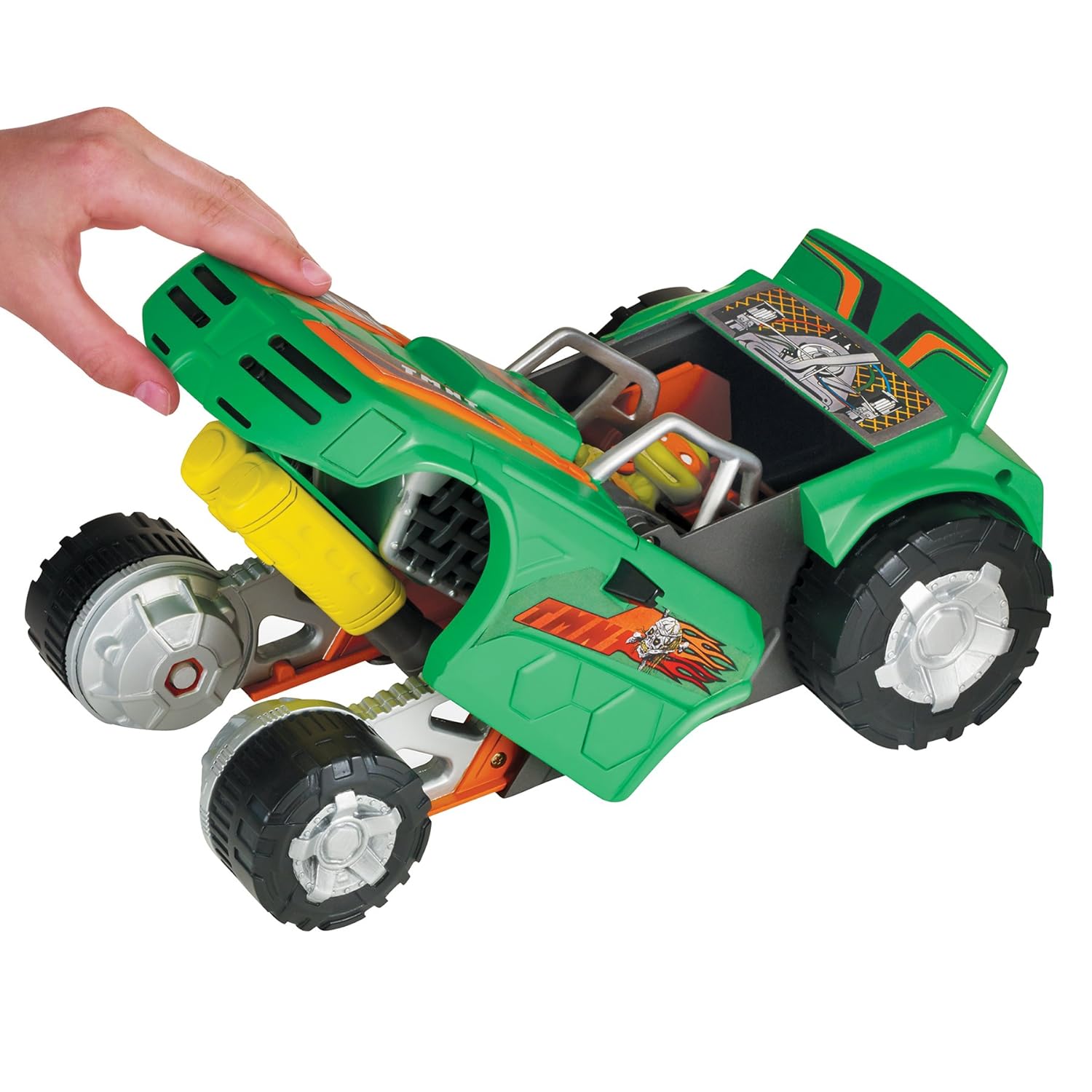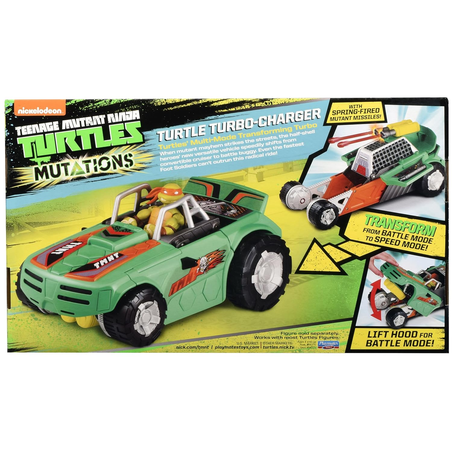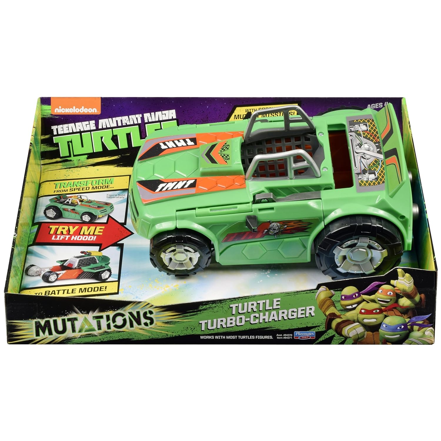 Poursuivant sa gamme Mutations, Playmates Toys a proposé à la fin de l’été 2015 un véhicule à la transformation extrêmement basique ; une voiture décapotable dont il suffit de rabattre l’avant pour faire une protection et laisser apparentes les roues.