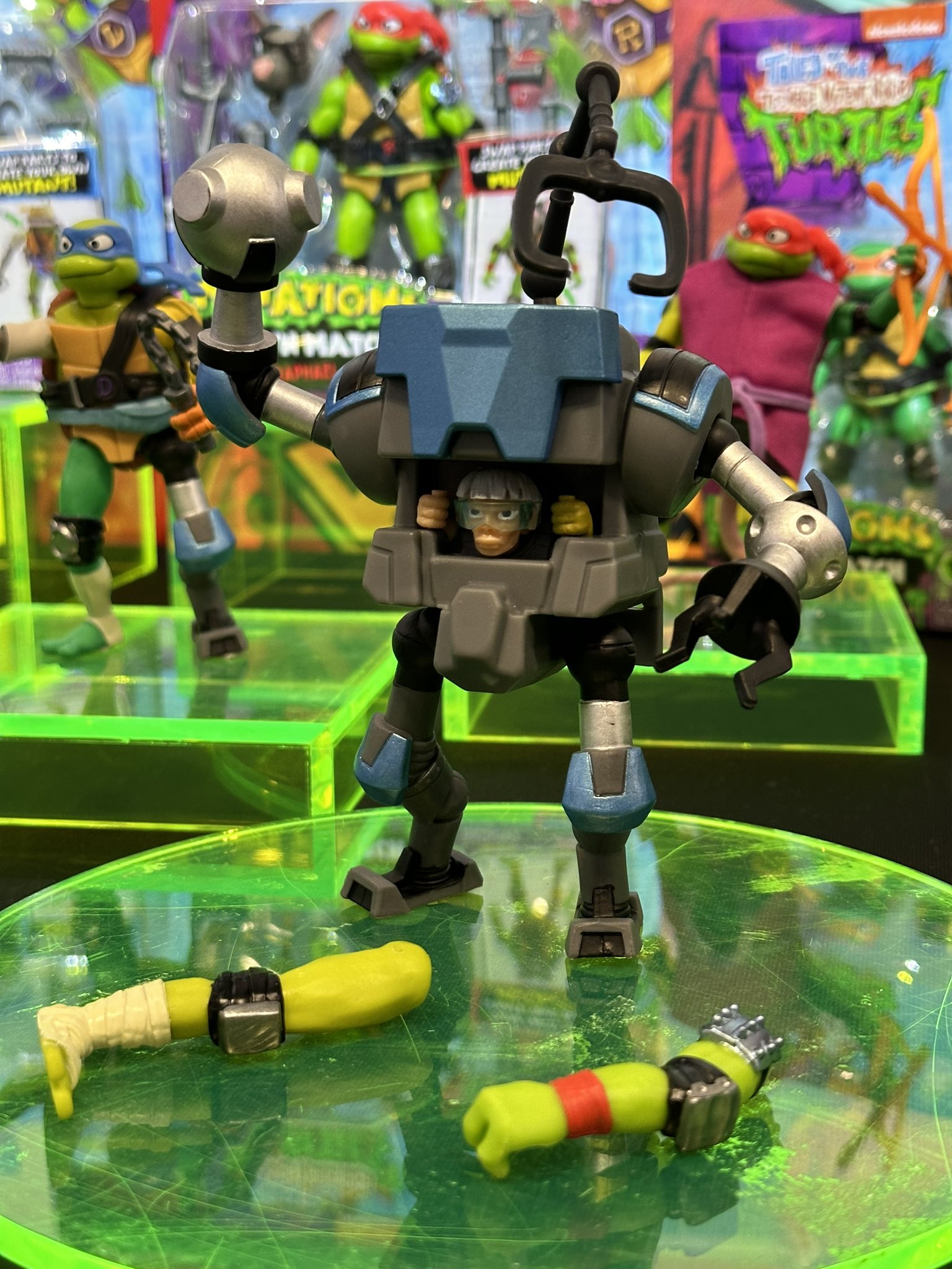 Les figurines de la gamme Mix ‘N Match ont été dévoilées en exclusivité par le site comicbook.com le 13 mars 2024. Ces figurines ont permis de dévoiler l’apparence de certains personnages et de proposer de nouveaux visuels pour les tortues, encore très peu familières des fans. Deux jours plus tard, ces personnages étaient présentés au Spring Fling de The Toy Insider, à New York.