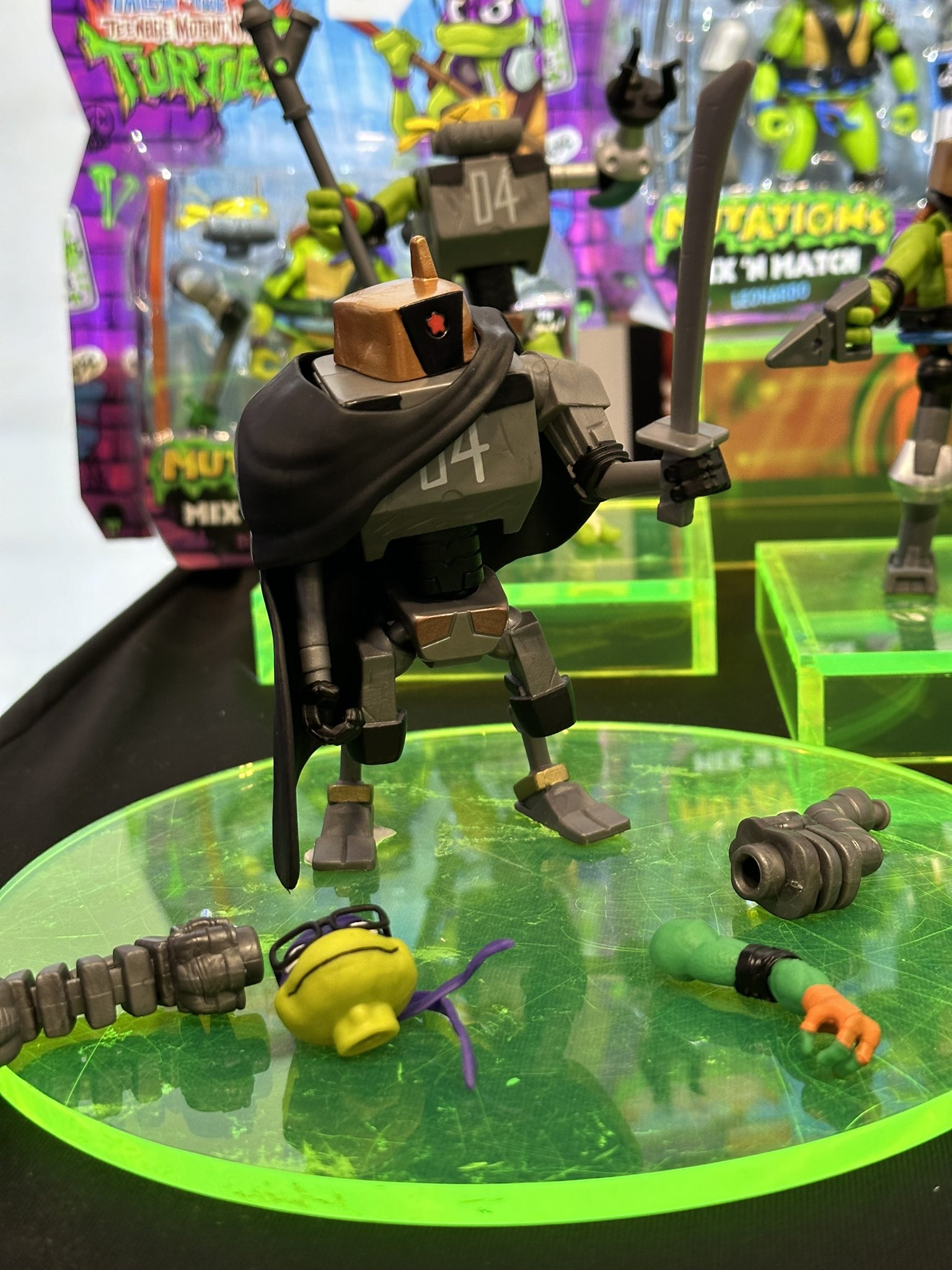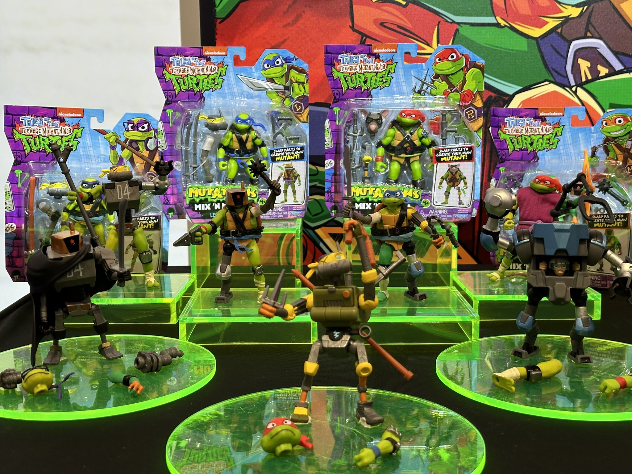 Les figurines de la gamme Mix ‘N Match ont été dévoilées en exclusivité par le site comicbook.com le 13 mars 2024. Ces figurines ont permis de dévoiler l’apparence de certains personnages et de proposer de nouveaux visuels pour les tortues, encore très peu familières des fans. Deux jours plus tard, ces personnages étaient présentés au Spring Fling de The Toy Insider, à New York.