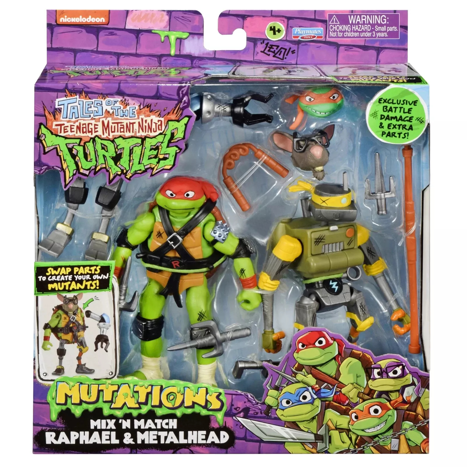 Parallèlement à la sortie des figurines Mix & Match classiques, Playmates a également proposé des doubles packs. Raphael et Metalhead sont strictement identiques aux figurines sorties individuellement. La peinture diffère en revanche, proposant les personnages dans un style Battle damaged avec des traits rappelant les blessures de guerre.