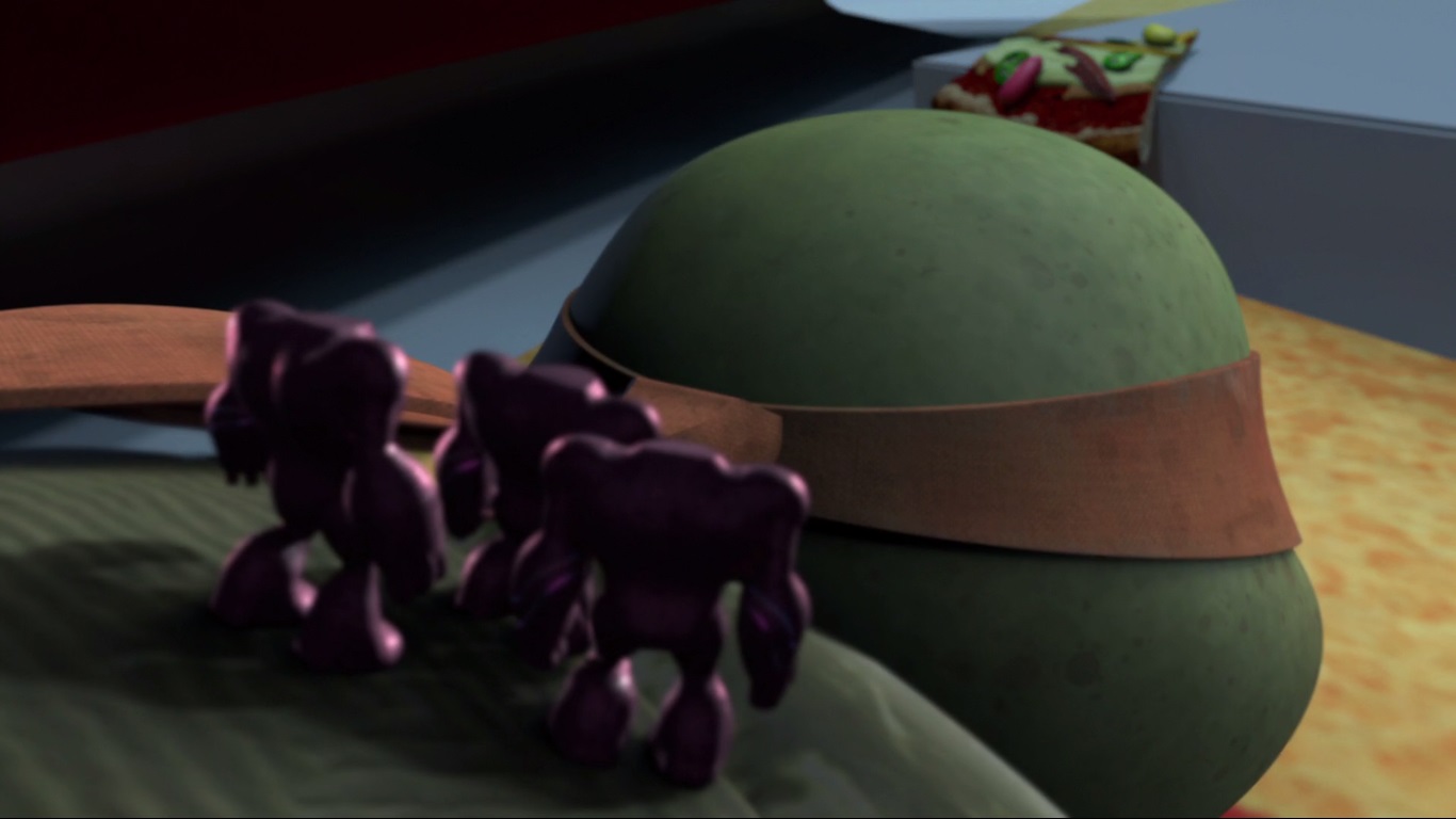 Trois neutrinos furent engagés par Vrax Belebome pour intégrer l’inconscient de Michelangelo et lui soutirer des informations sur le générateur de trou noir. Leur frère infecté, les autres tortues entrèrent dans l’esprit de Michelangelo pour en faire partir les envahisseurs. Une fois sortis de la tortue, cette dernière les écrasa entre ses mains (Voyage au centre de l’esprit de Mikey, S4 E6).