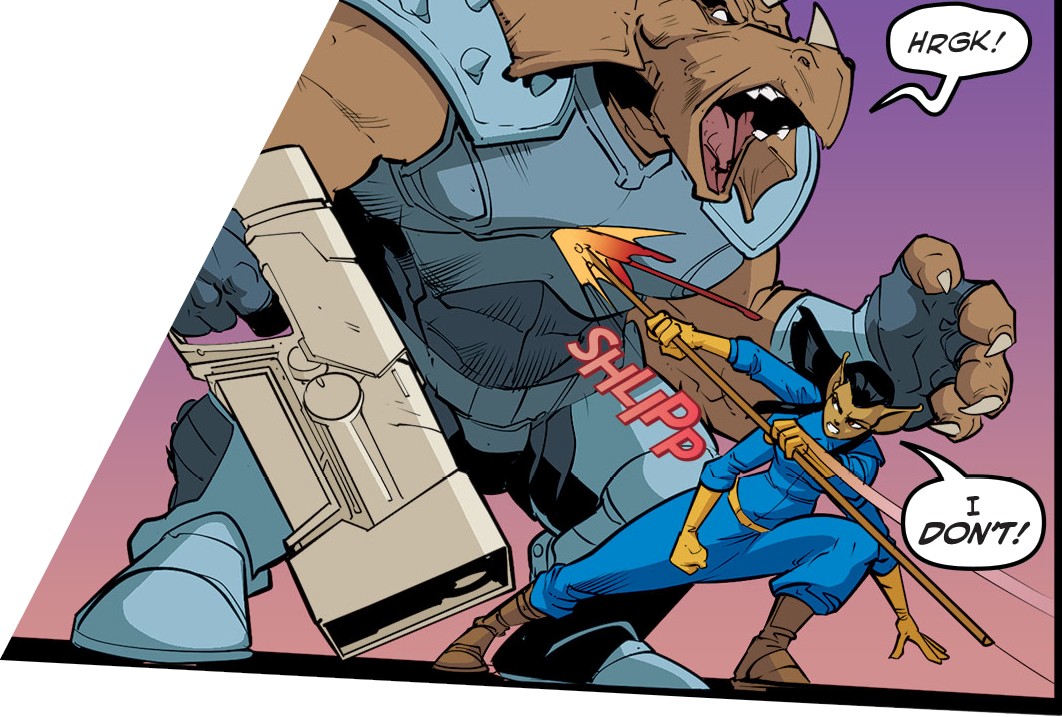Ils retrouvèrent la trace de Zixx sur un astéroïde, mais une fois encore le contrebandier se servit de ses hologrammes pour disparaître. Michelangelo se servit des capacités remarquables du grybyx pour retrouver l’homme. Le grybyx devint une créature gigantesque et féroce. De son flair, il mit la main sur le contrebandier. Il s’avérait qu’il avait été engagé par une organisation de protection des animaux, qui s’opposait à l’utilisation des grybyx dans des combats. Il devait les apporter sur un astéroïde havre de paix. Son action toucha la princesse Trib, qui paya à la Nova Posse ce que lui devait Stump afin de permettre à Zixx de terminer sa mission. En guise de remerciement, il remit un des grybyx à Kala avant de partir (The Armageddon Game #3).