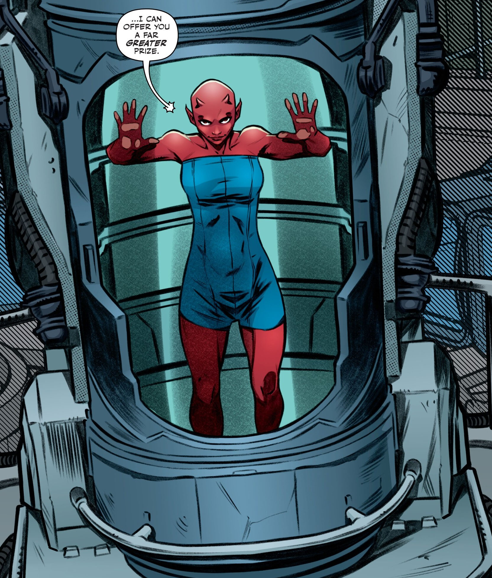 Après avoir vu s’échapper trois monstrueux mutants des souterrains, Jennika partit avec Ivan enquêter et découvrit les manigances de Zodi, puis de Null (Jennika II #3).